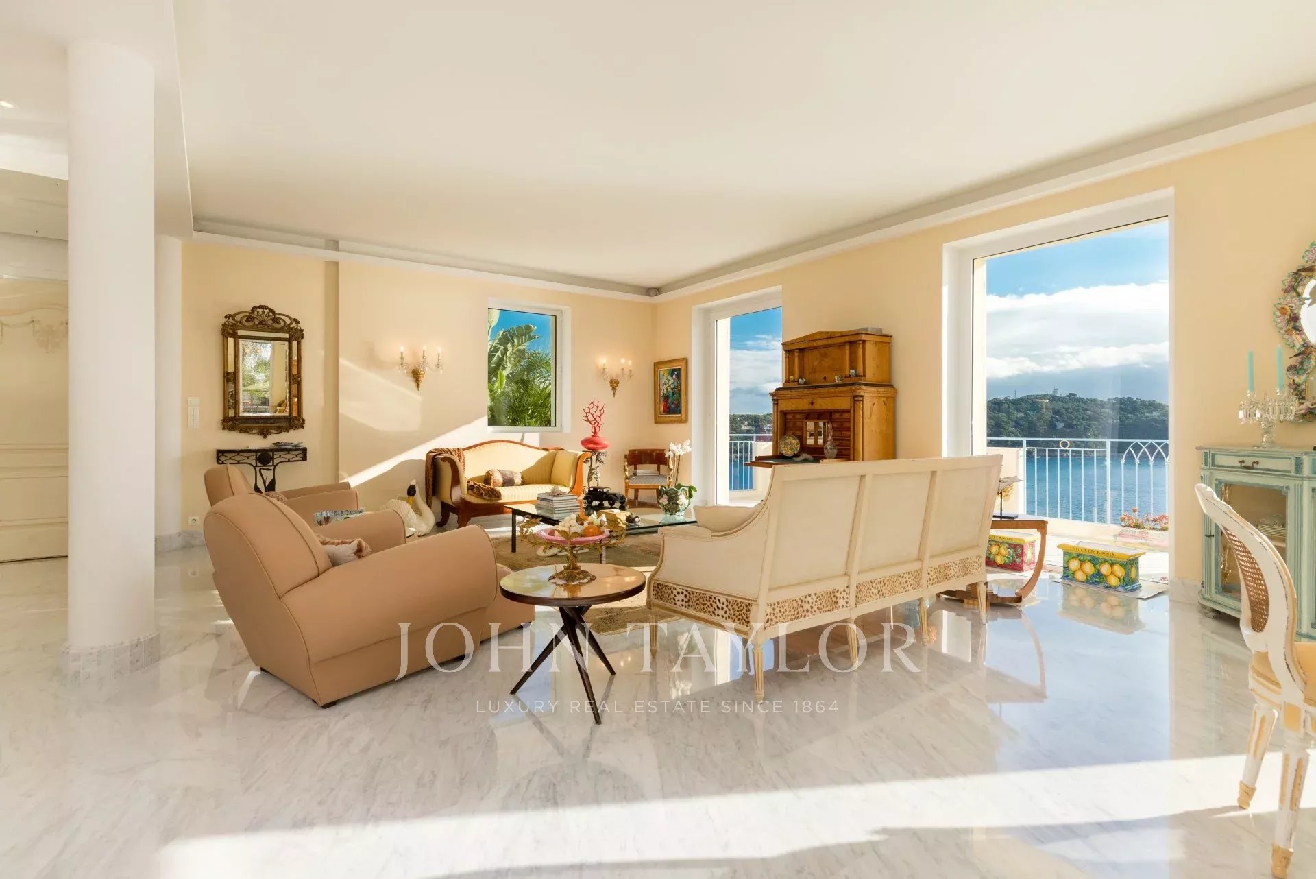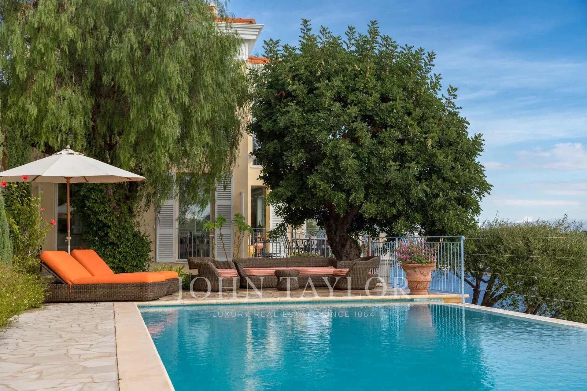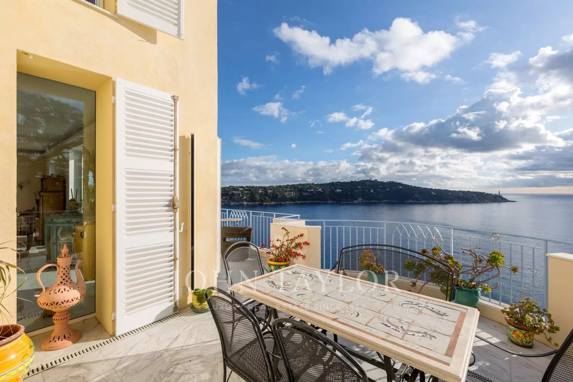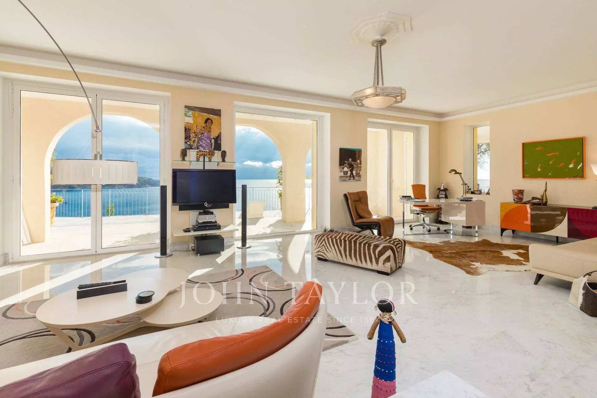 Dieses außergewöhnliche Anwesen im Stil der "Belle Epoque", das direkt am Wasser liegt, bietet einen atemberaubenden Blick von den Bergen bis zum Leuchtturm von St Jean Cap Ferrat und auf die Reede von Villefranche.