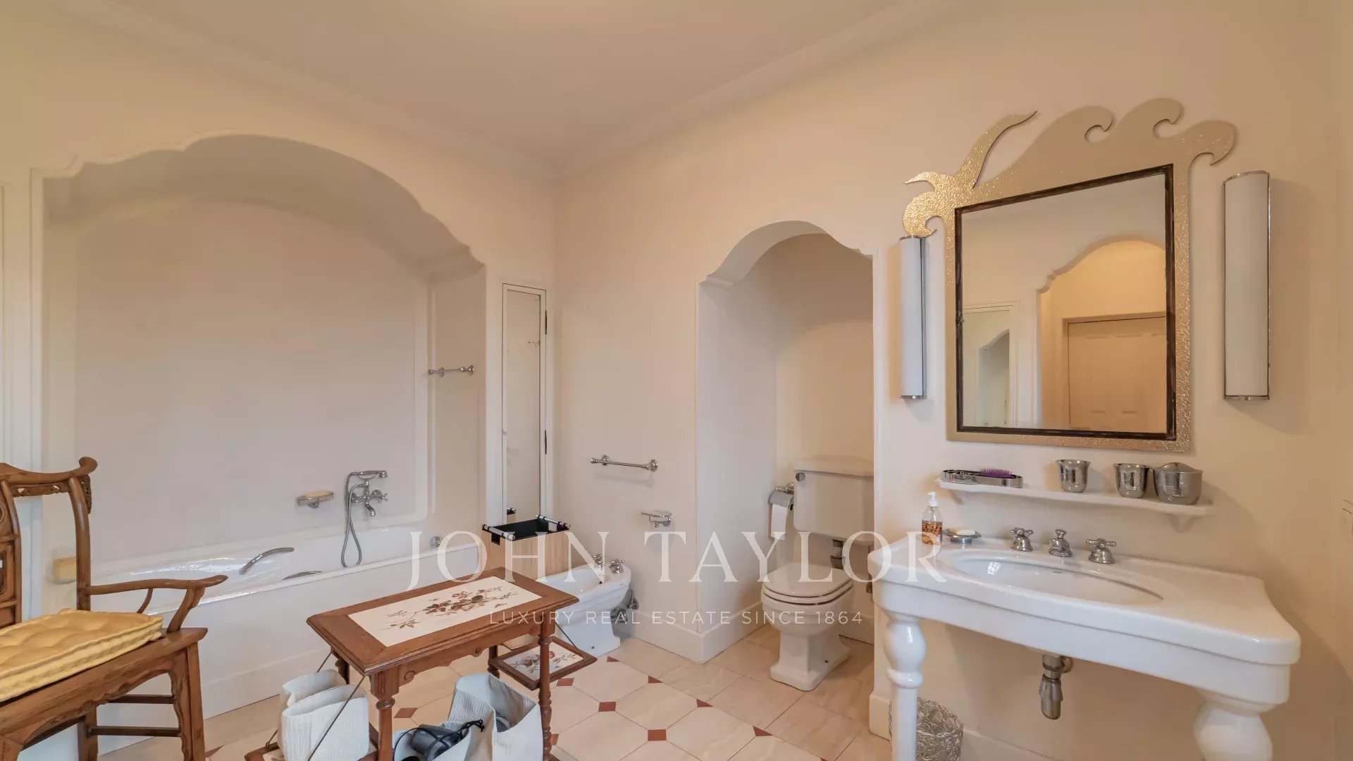 5 Schlafzimmer und 5 Bäder sowie ein komplettes Personalapartment. Ein weiteres Schlafzimmer befindet sich in einem Türmchen am Ende des Gartens.