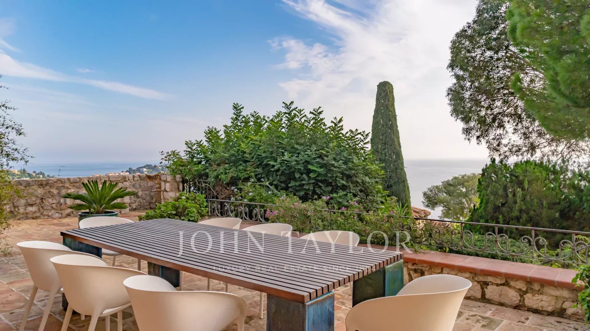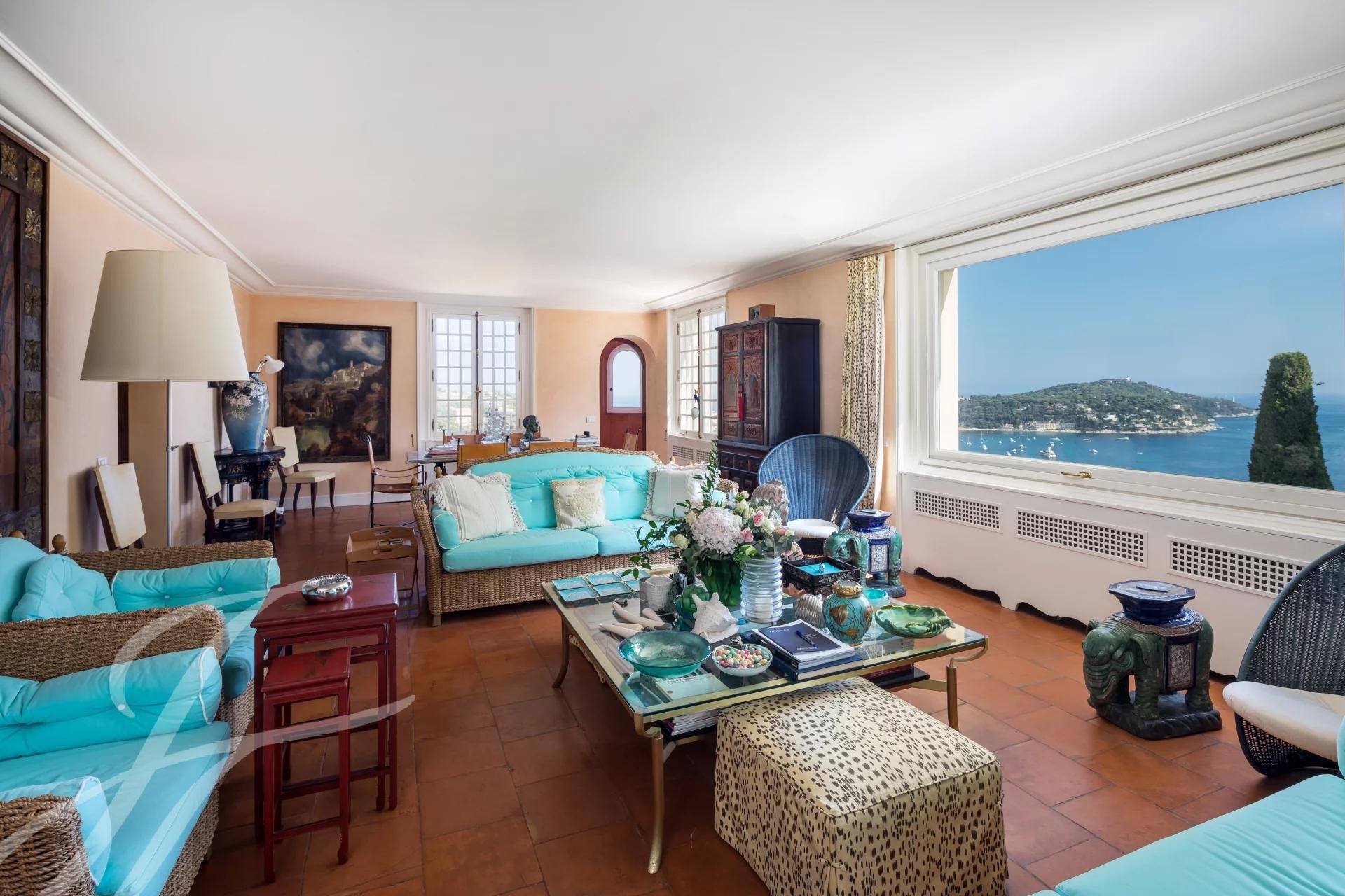 Das Wohn- und Esszimmer und eine große Terrasse mit dem Sommer-Esszimmer bieten einen schönen Blick auf den Garten, das Meer und die Altstadt.