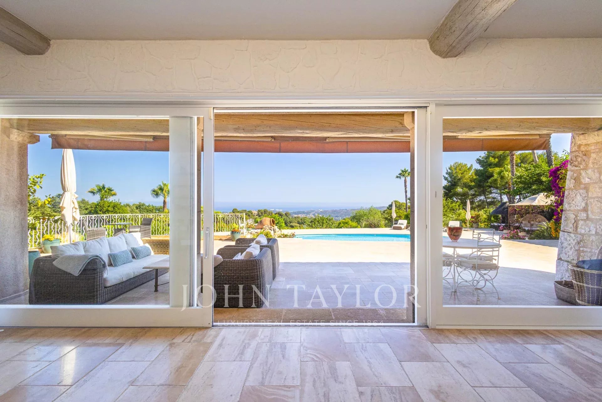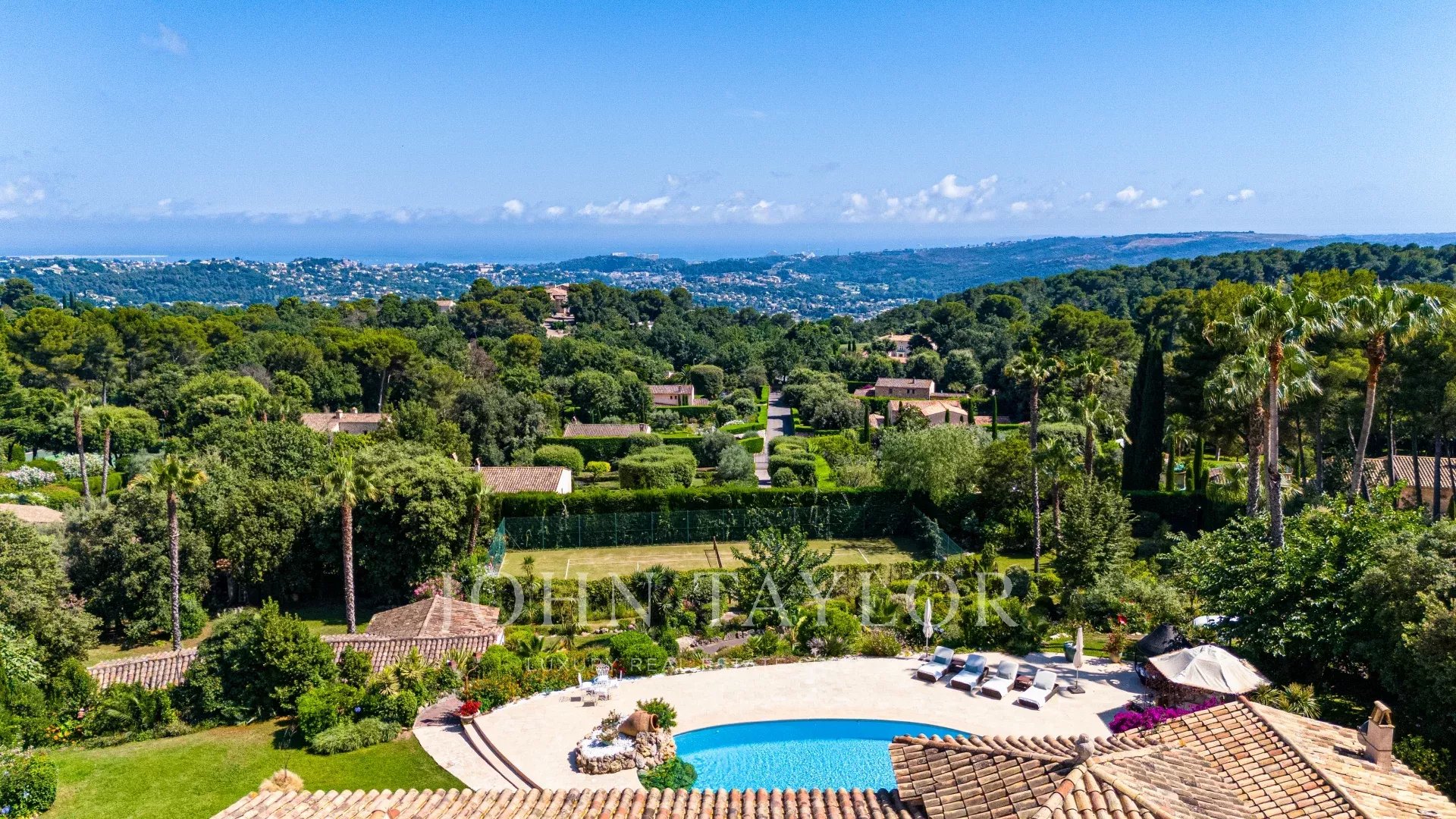Auf den beliebten Anhöhen von La Colle-sur-Loup, nur einen Katzensprung von Saint-Paul de Vence entfernt, bietet diese prächtige provenzalische Villa mit über 700 m² einen atemberaubenden Panorama-Meerblick.