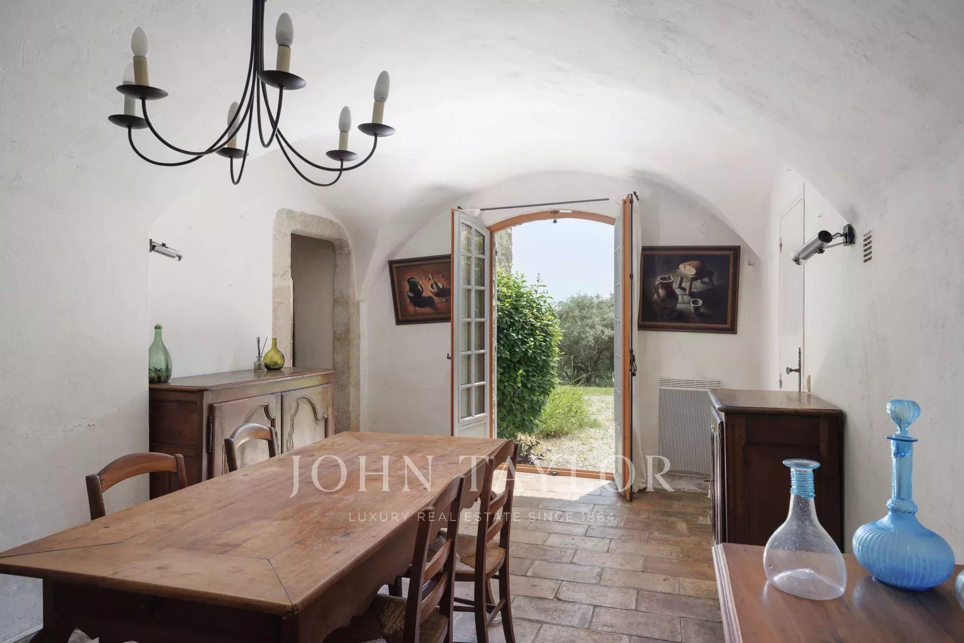 Der über 2,2 Hektar große Außenbereich offenbart eine authentische Landschaft mit wunderschönen Restanques aus Stein, Überbleibseln einer althergebrachten Handwerkskunst, und außergewöhnlichen Olivenhainen, in denen sich hundertjährige und tausendjährige Bäume vermischen. Der Pool fügt sich auf natürliche Weise in diese friedliche und grüne Umgebung ein.