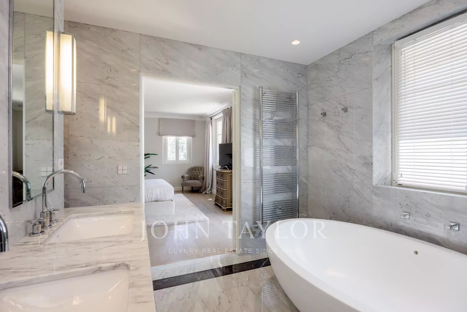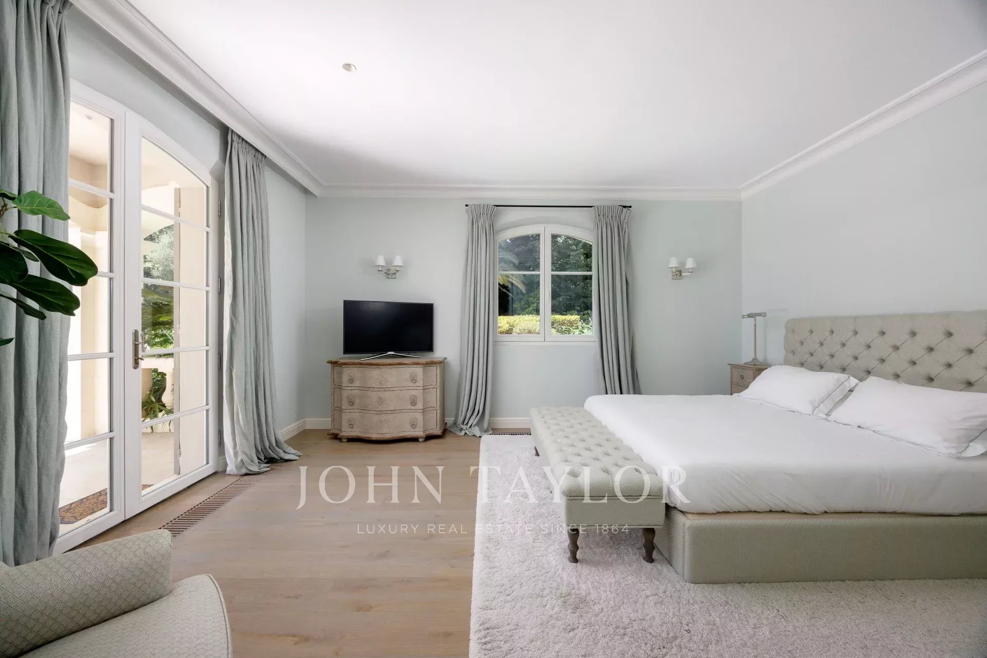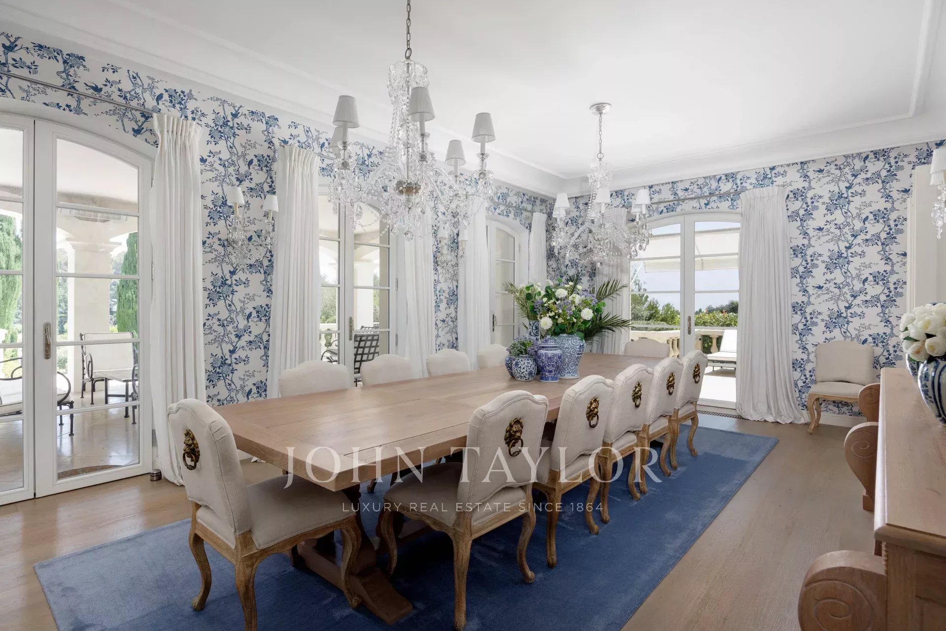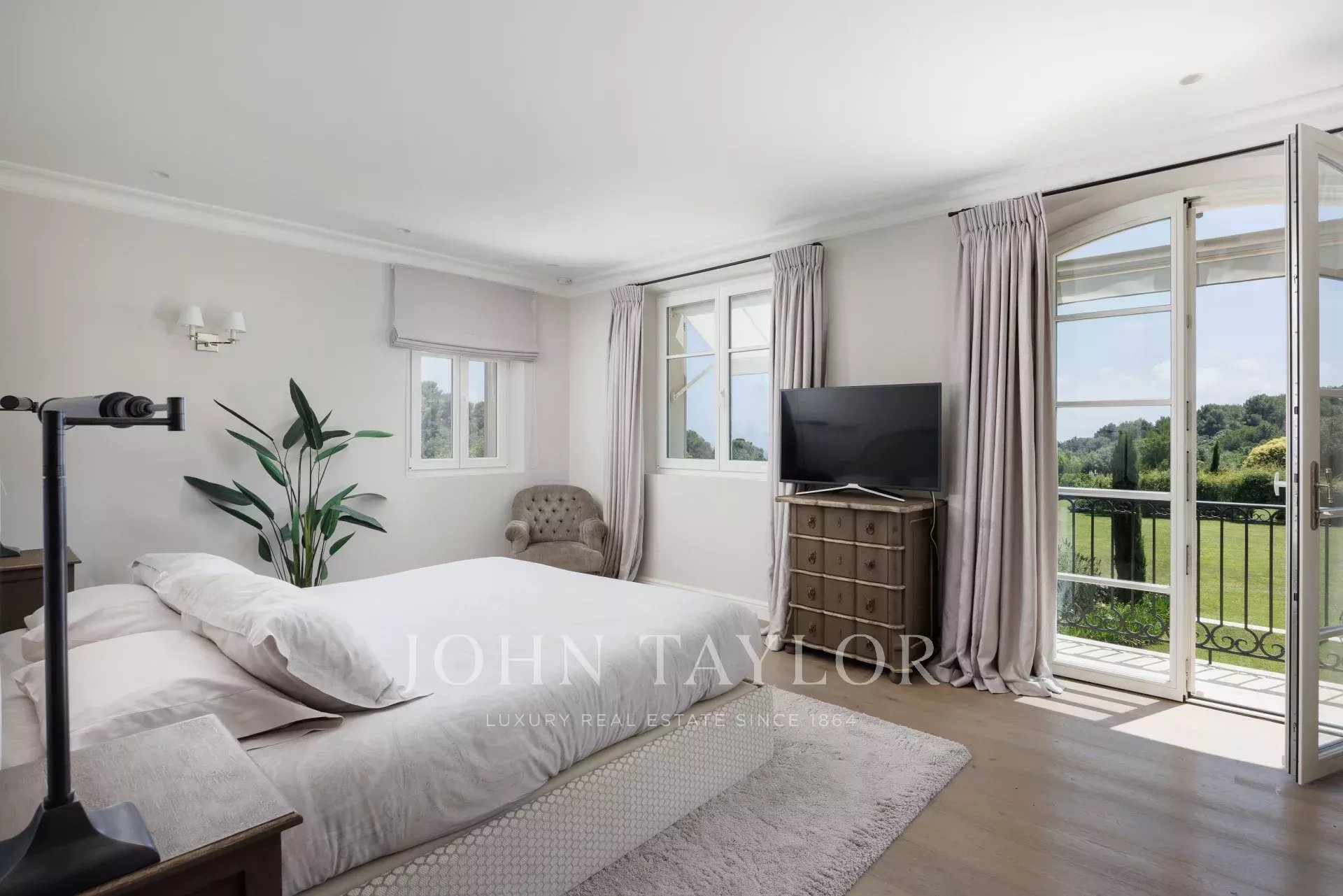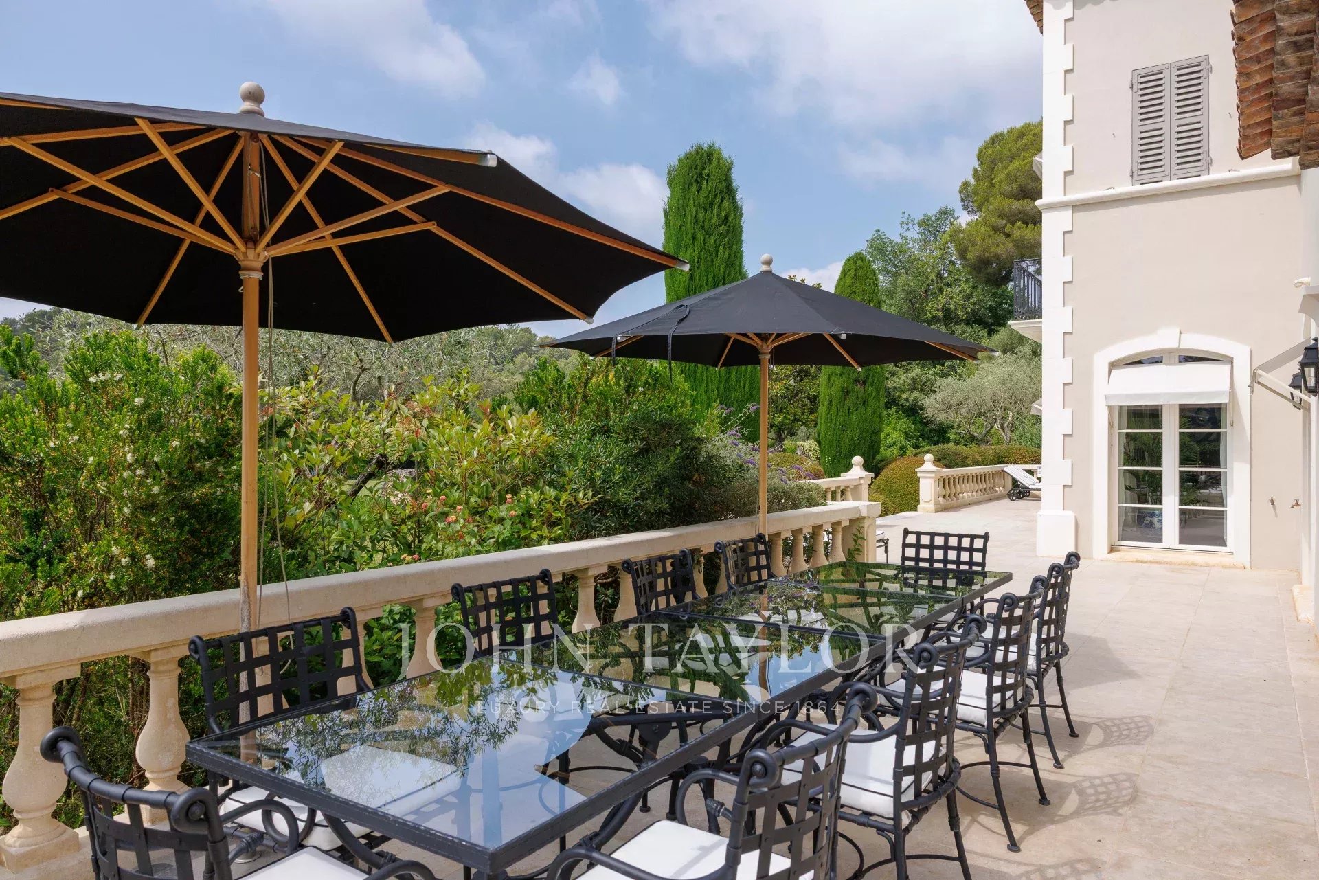 Dieses elegante Anwesen mit einem ebenen Garten von über 3,5 Hektar, Ruhe und einem herrlichen Blick auf das Meer wurde 2016 komplett renoviert und von Ralph Lauren mit seinem schicken und raffinierten Stil luxuriös ausgestattet. Das Anwesen befindet sich in einem Wohngebiet, das leicht zu erreichen ist und nur wenige Minuten vom Dorf entfernt liegt.