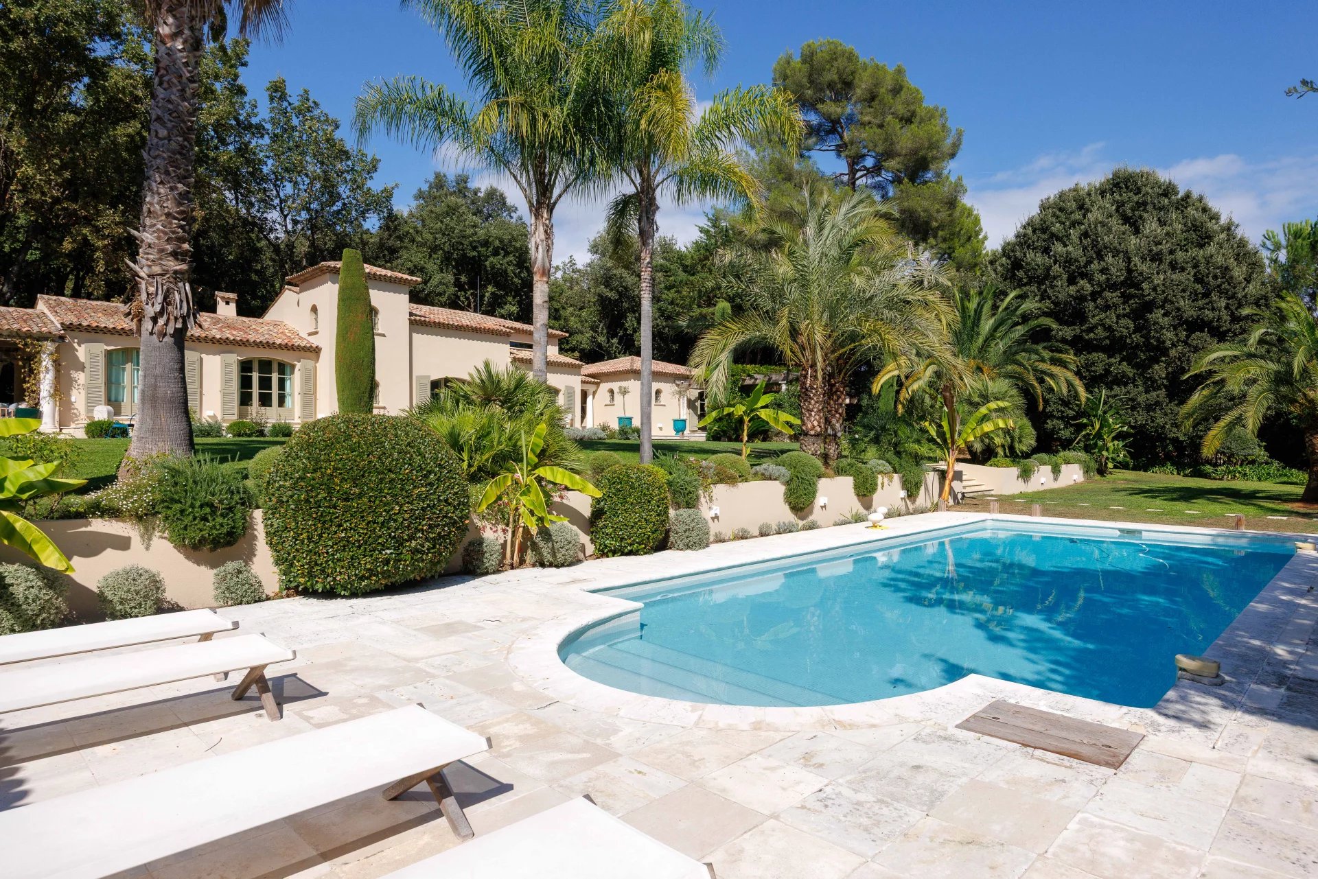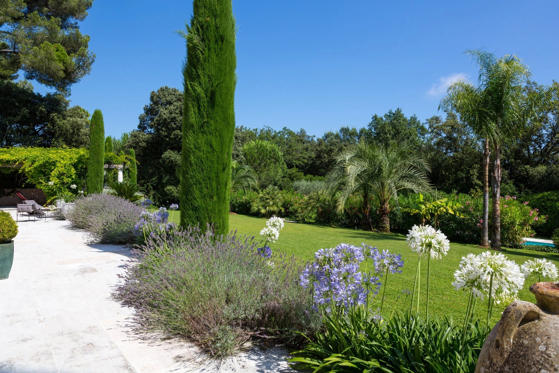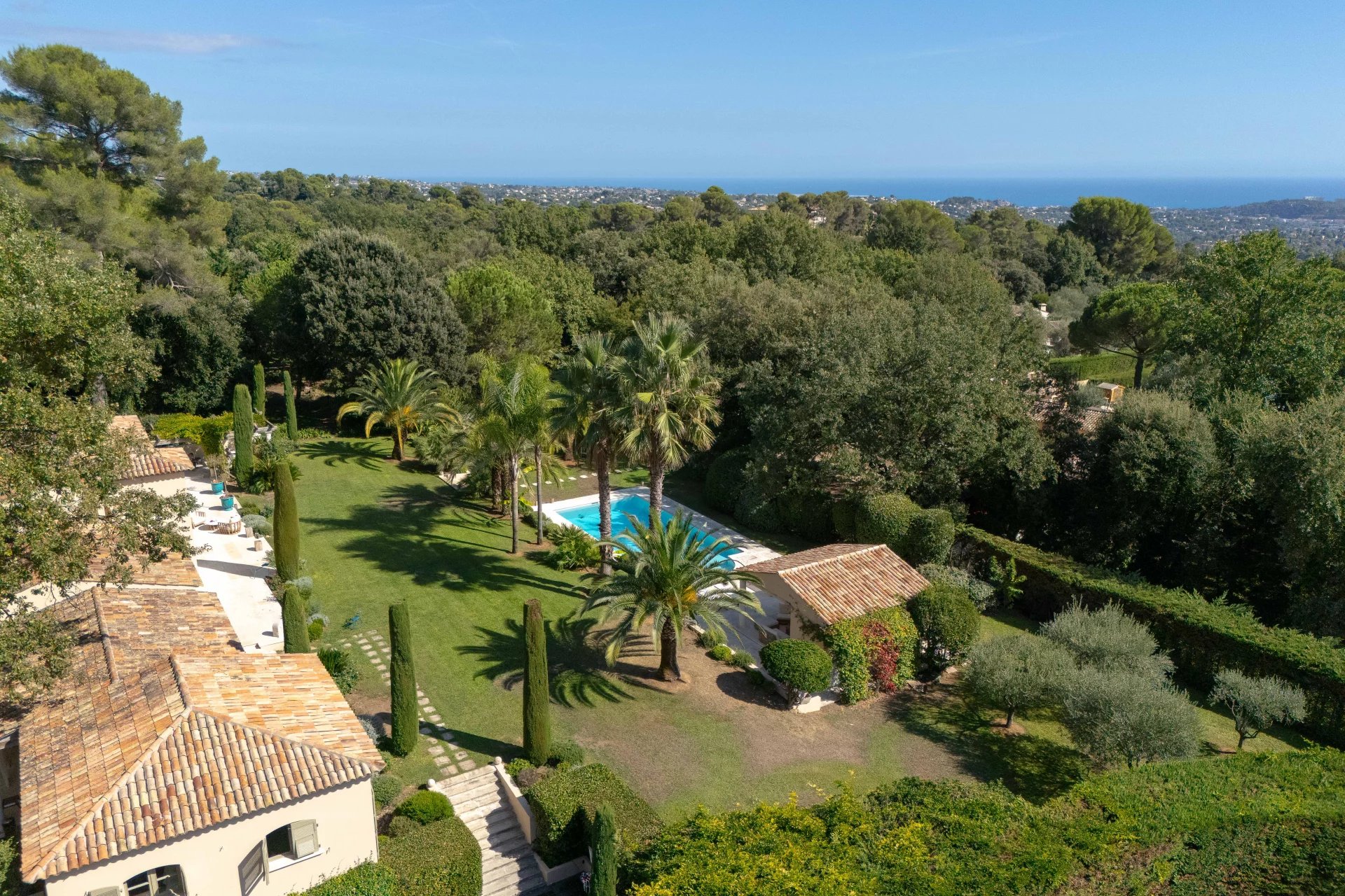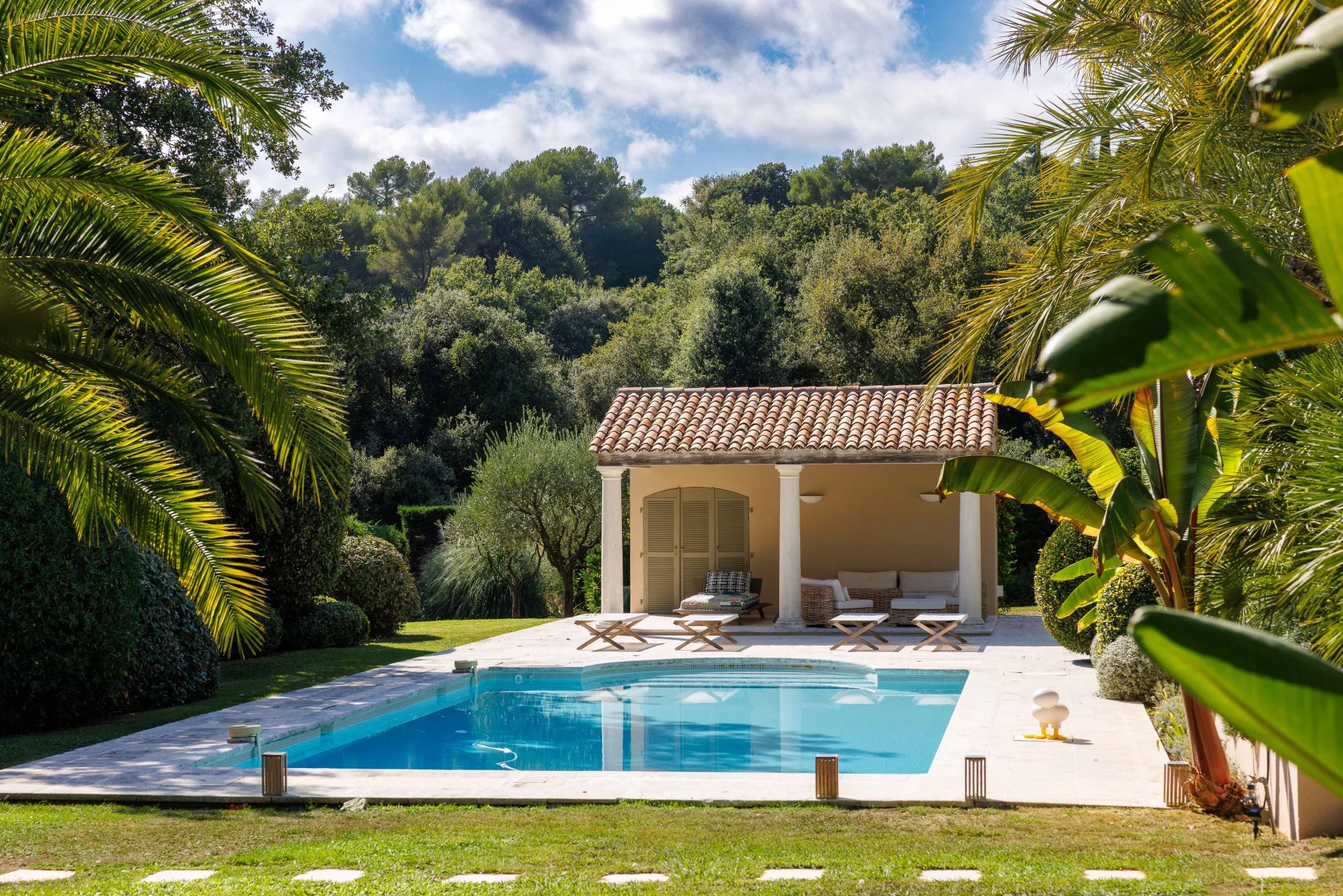 In einer ultra-residentiellen Umgebung am Ende einer Sackgasse in absolut ruhiger Lage, nur wenige Minuten von den charmanten Dörfern La Colle-sur-Loup und Saint-Paul de Vence mit all ihren Annehmlichkeiten entfernt, liegt dieses wunderschöne, 287 m² große Anwesen, das vollständig renoviert wurde und durch seine Eleganz und seinen Komfort besticht. Es ist überwiegend ebenerdig und erstreckt sich über mehr als 5.400 m² flachen Landschaftsgartens, der mit einem beheizten Pool und einem Poolhaus ausgestattet ist und von einer idealen Südlage profitiert.