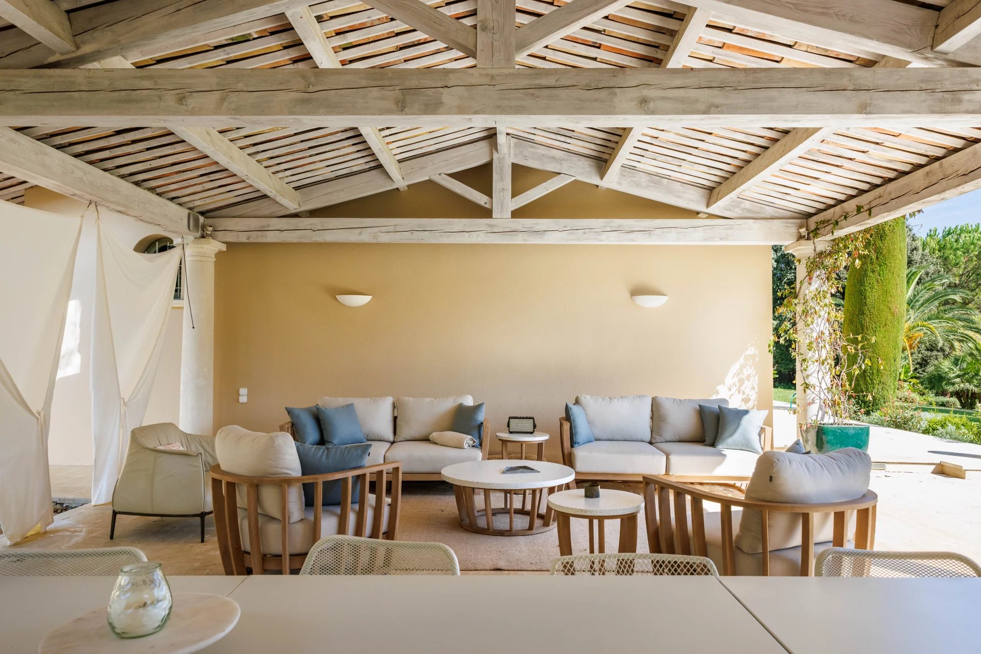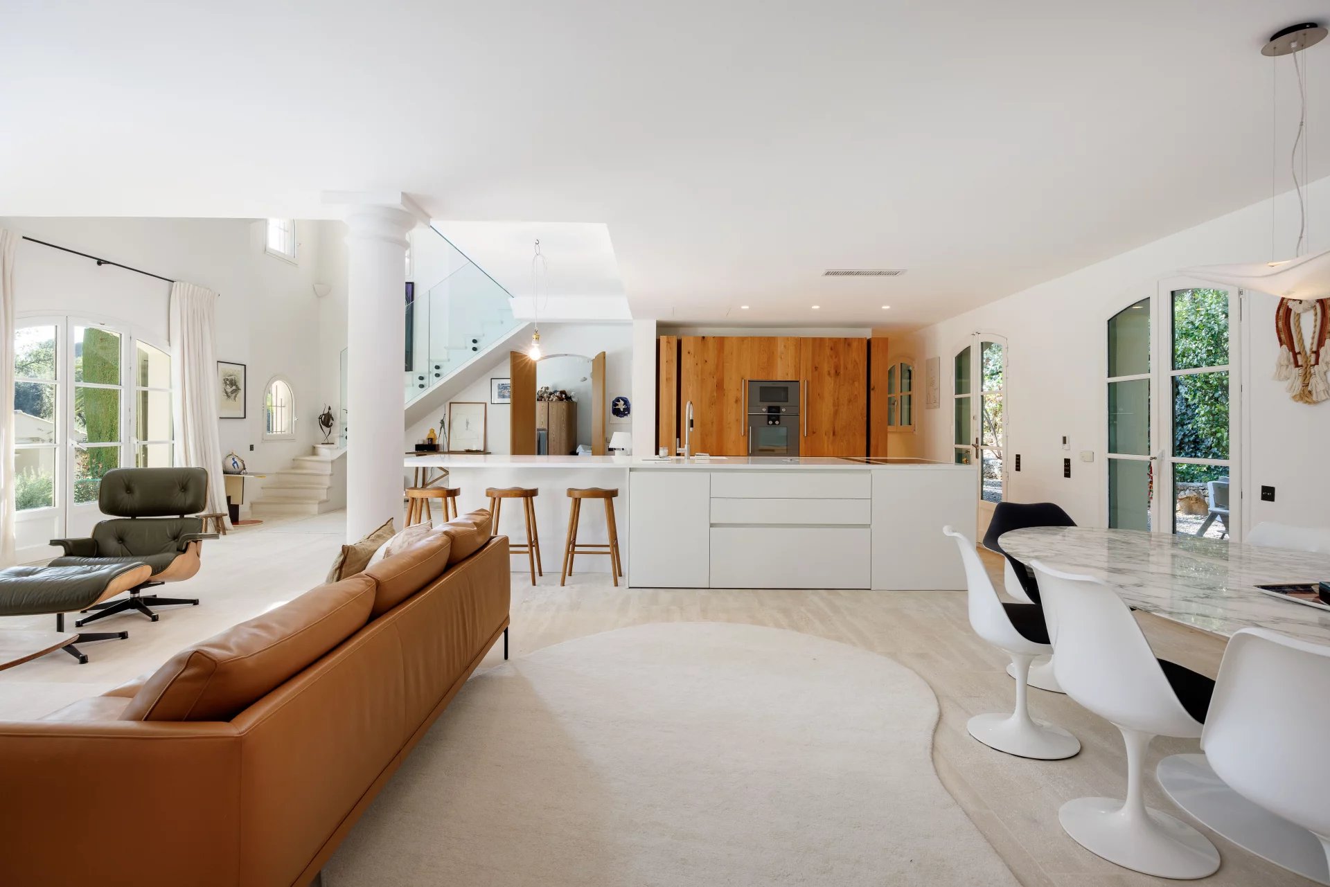 Im Inneren besticht der zeitgenössische Stil durch geräumige und helle Zimmer, die alle zum Garten hin offen sind und sich in perfektem Zustand befinden.