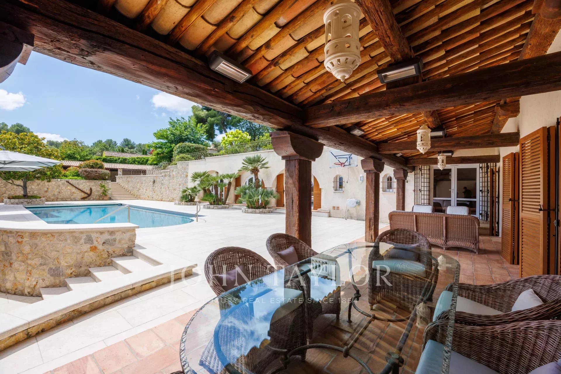 Nur wenige Minuten vom charmanten Dorf La Colle-sur-Loup entfernt, genießt es absolute Ruhe und eine ideale Südlage in einem wunderschönen Landschaftspark von ca. 6.575 m². Dieser umfasst einen beheizten Spiegelpool, große Rasenflächen, Steinterrassen sowie einen weitläufigen Waldbereich.