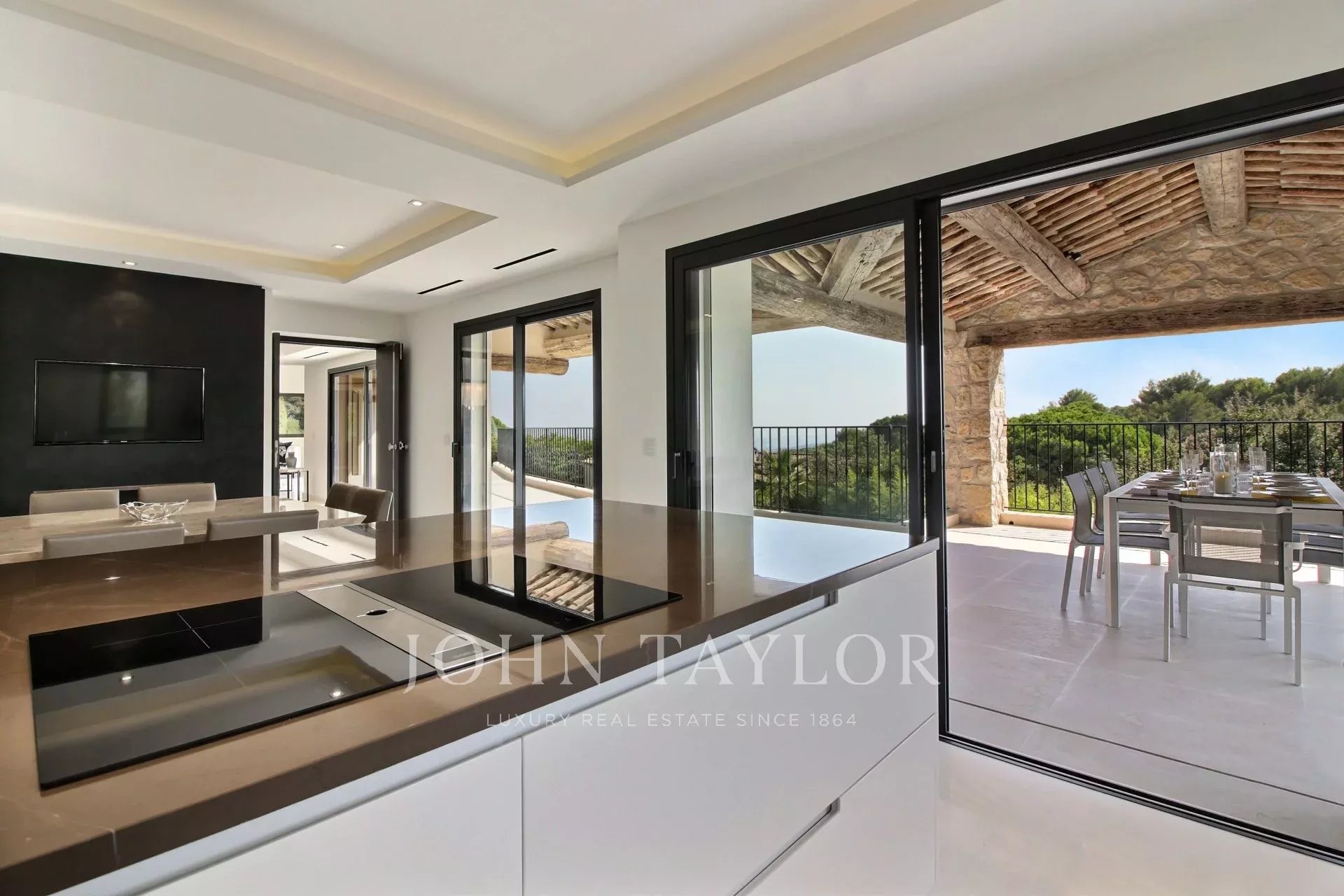 Komplett renoviert mit einer bestimmten Vorliebe für Raffinesse und Eleganz, ist diese wunderschöne Immobilie von ca. 450 m² die perfekte Kombination aus provenzalischem Charme und modernen Innenlinien. Dieses Luxusobjekt, südwestlich ausgerichtet, erstreckt sich über einen gestalteten Garten von 2.500 m² mit mediterranen Pflanzen und bietet einen atemberaubenden Panoramablick, genießt das strahlende Licht der Côte d’Azur mit seinem beheizten Spiegel-Pool, einem Poolhaus, einer Sommerküche, einem geschützten Lounge-Bereich, einer Dusche und einem Bouleplatz.