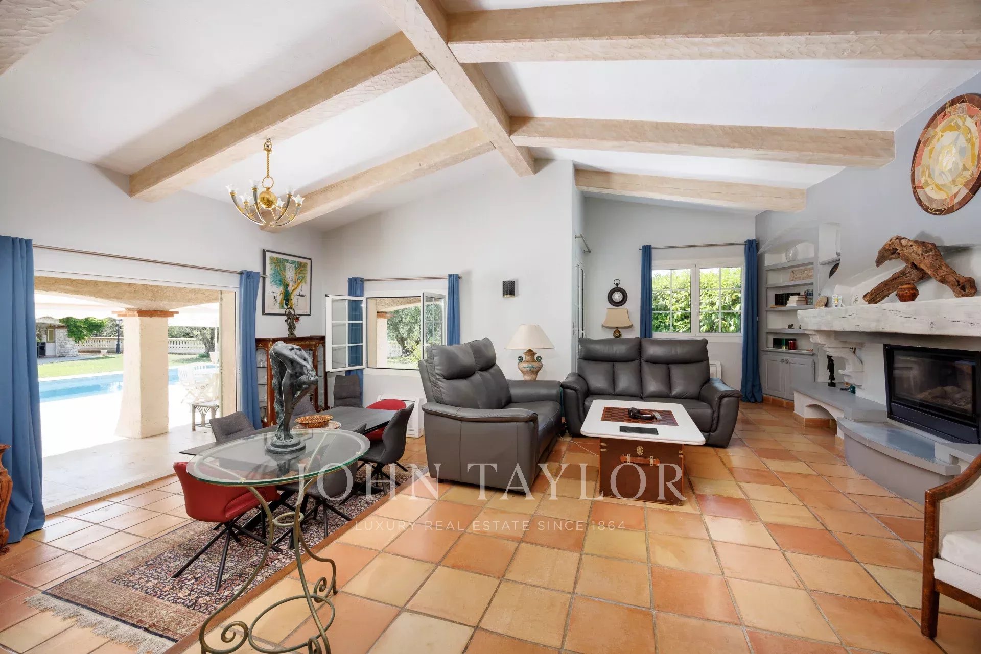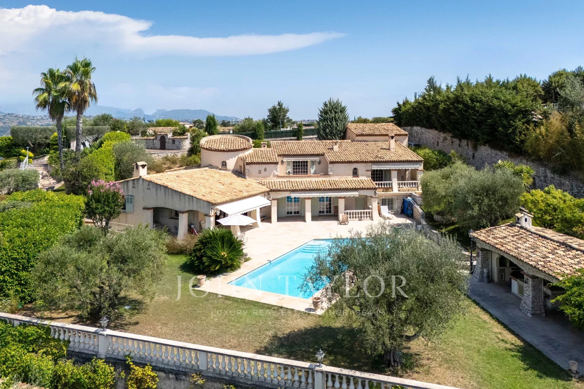 Im Außenbereich lädt der mediterrane Garten mit einem Dutzend Olivenbäumen zum Entspannen ein. Der Salzwasserpool mit pH-Regler und sein voll ausgestattetes Poolhaus versprechen schöne Sommertage. Zahlreiche Pluspunkte bereichern das Anwesen: Doppelgarage, mehrere Parkplätze, elektrisches Tor, Bouleplatz, Keller, Werkstatt, Gartenhaus und automatische Bewässerung. Das Ensemble befindet sich in der Nähe von Annehmlichkeiten und nur 15 Minuten vom internationalen Flughafen Nizza entfernt.