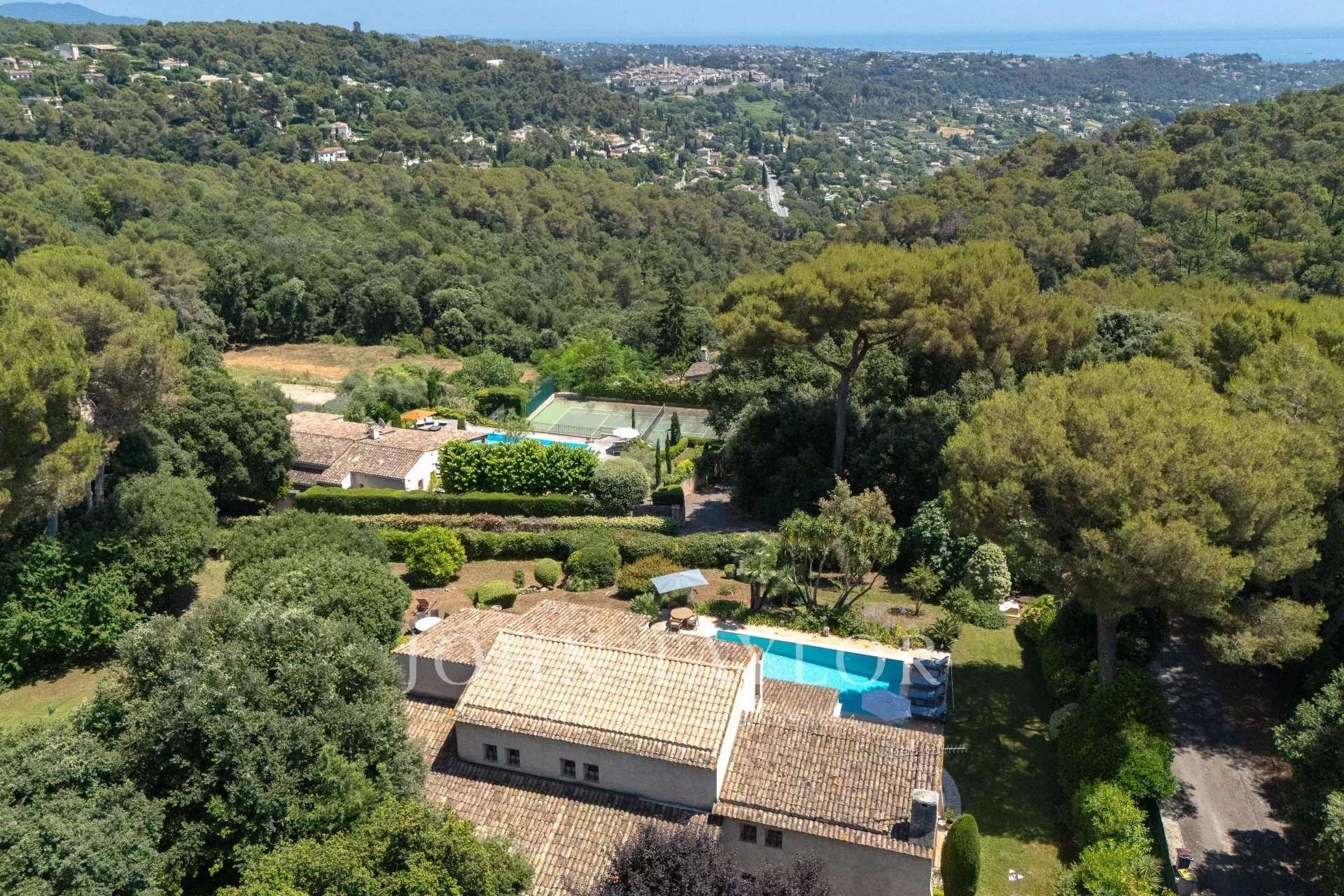 In einer der begehrtesten Gegenden unserer schönen Region, in der Ruhe der Wohnhöhen, bietet dieses Familienanwesen von ca. 235 m² einen außergewöhnlichen Rahmen auf einem landschaftlich gestalteten Grundstück von 2.850 m² mit Pool. Es genießt einen atemberaubenden Blick über das symbolträchtige Dorf Saint-Paul de Vence bis hin zum Meer sowie den ganzen Tag über eine optimale Sonneneinstrahlung.