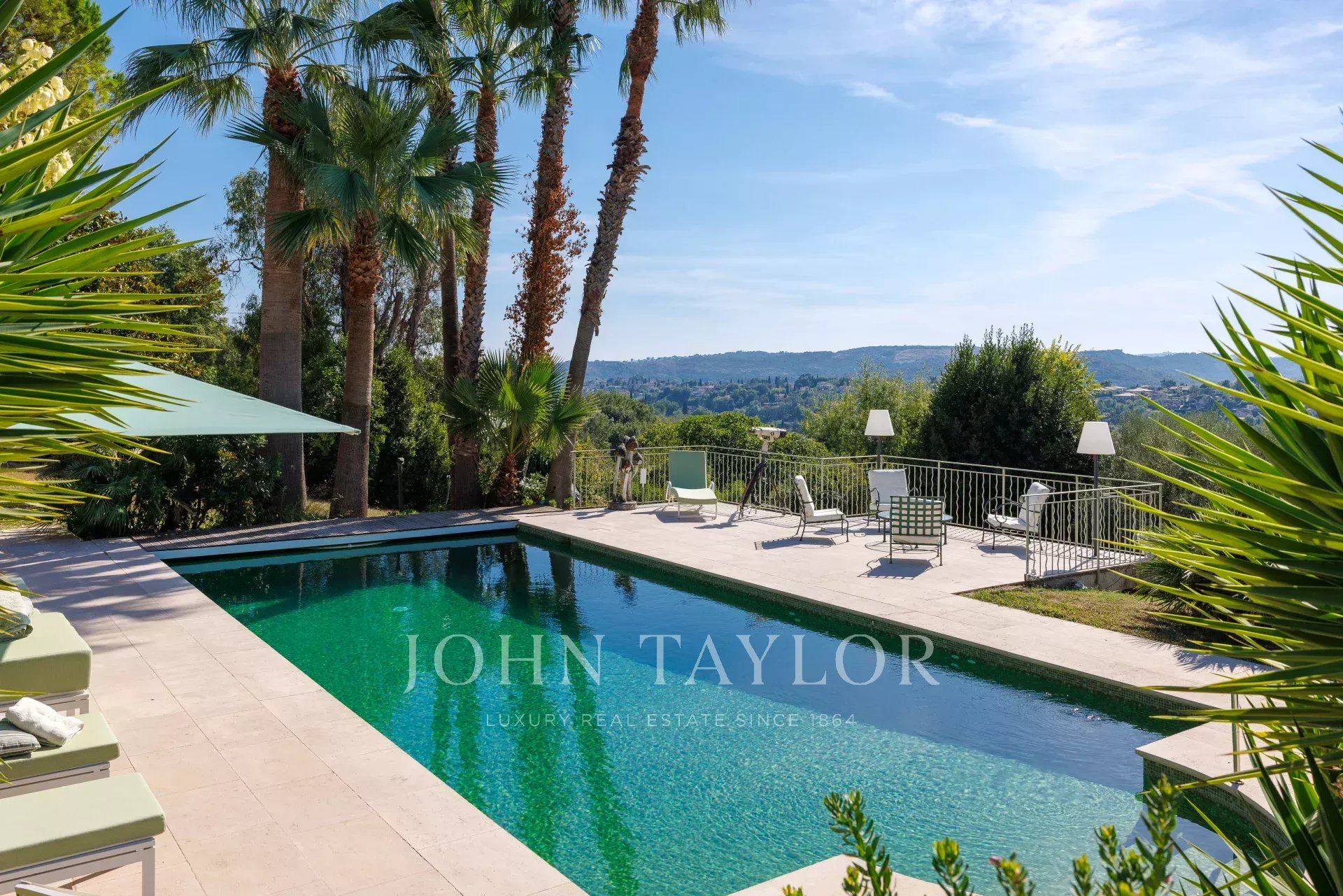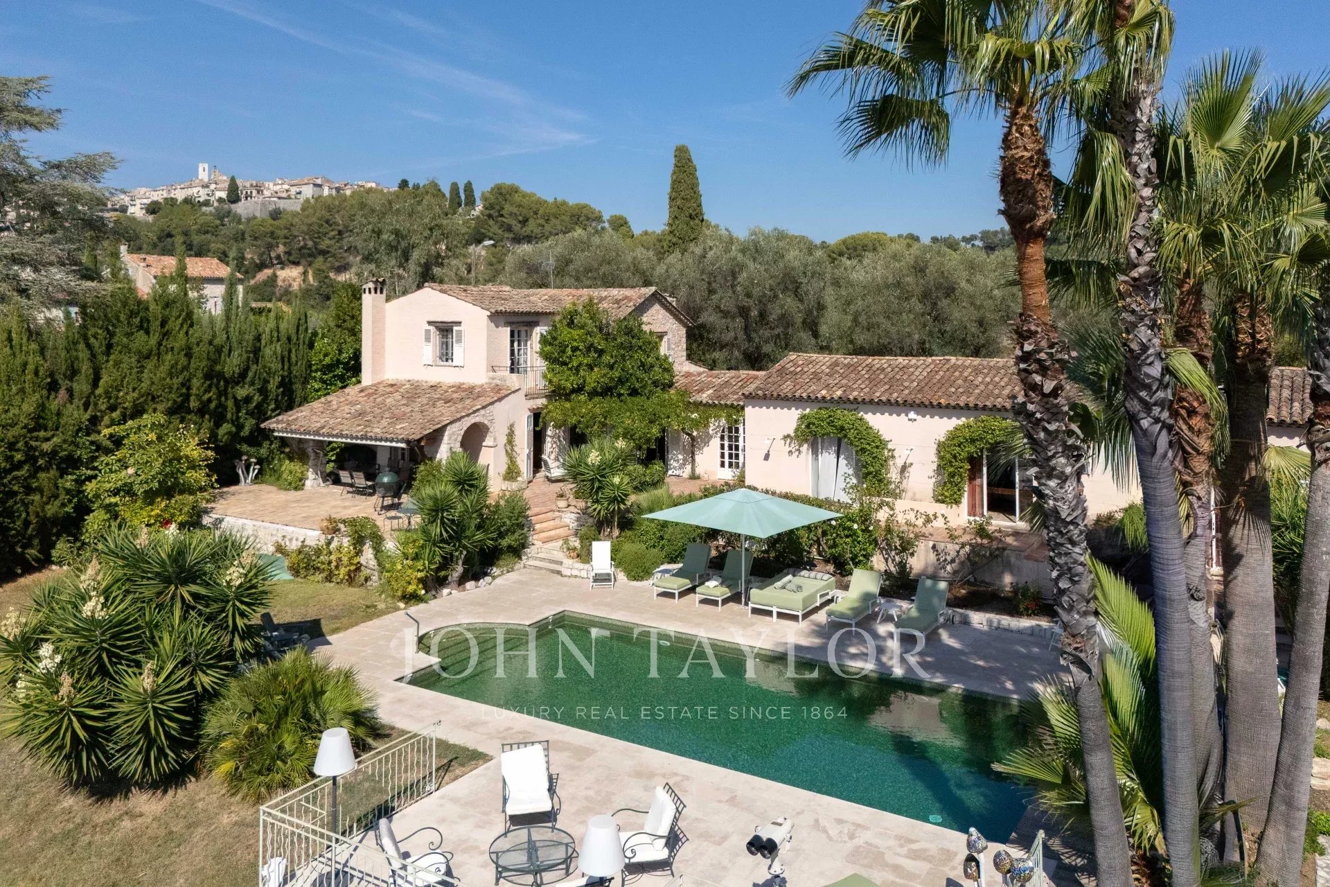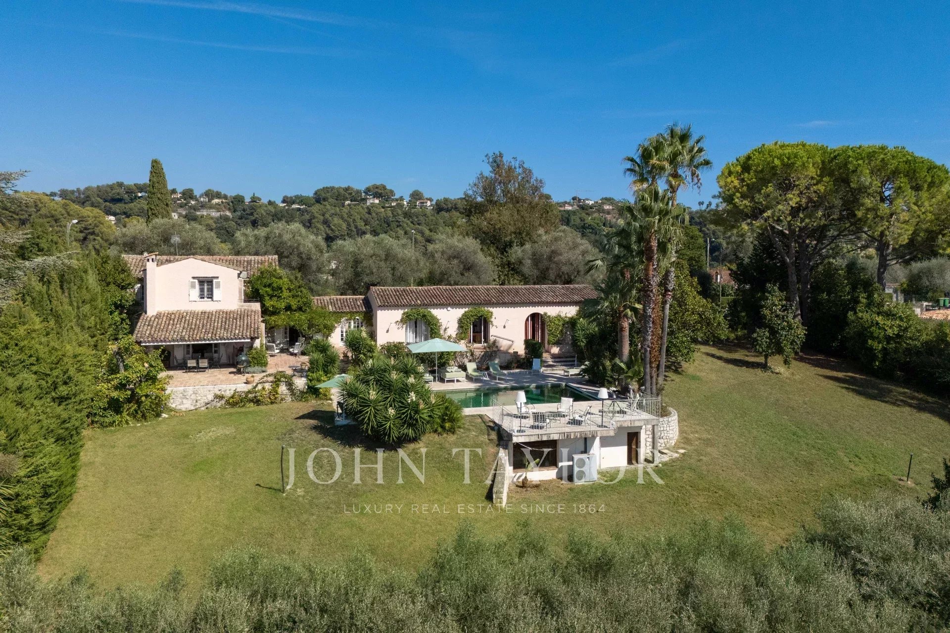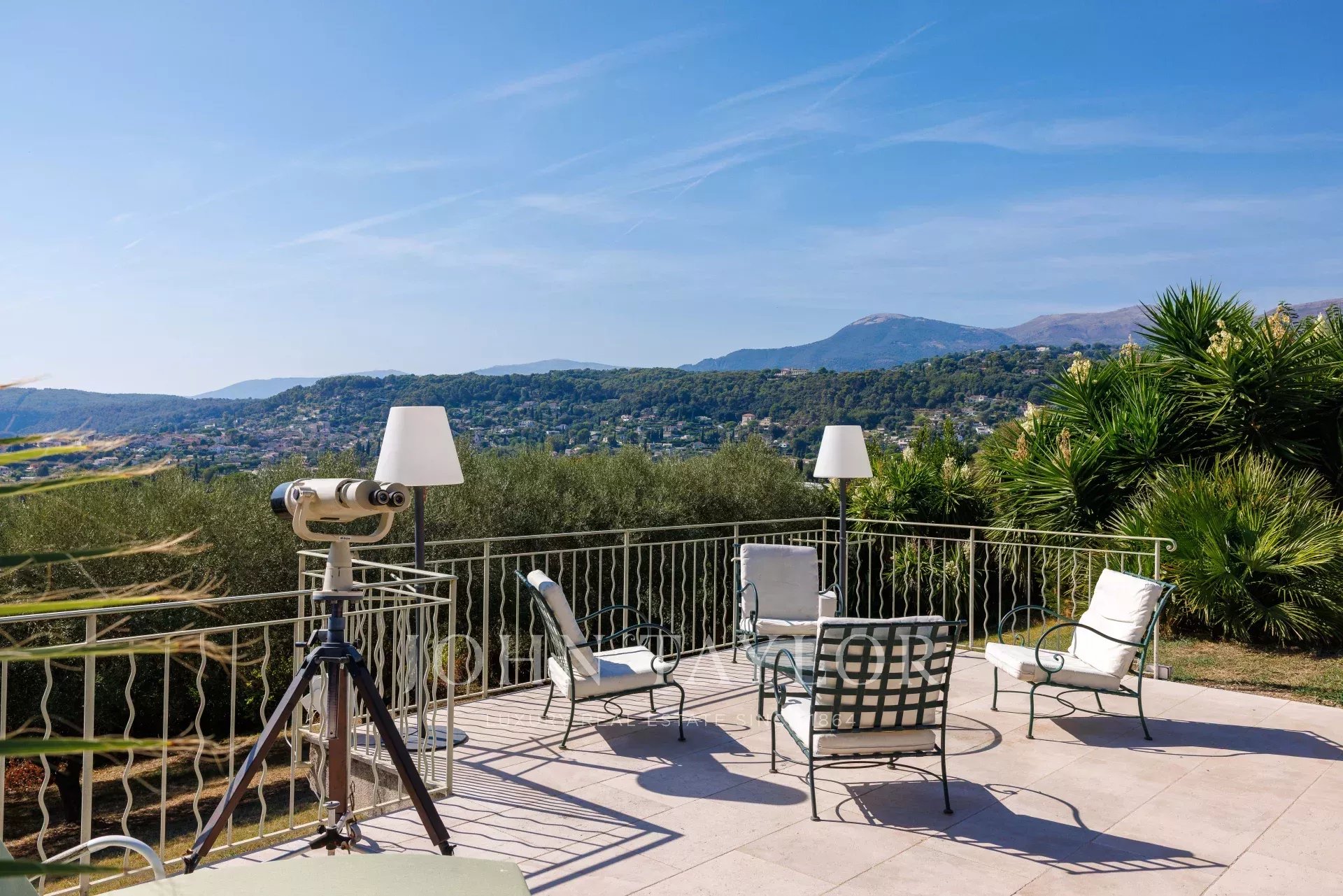 Ideal gelegen in der Nähe des malerischen Dorfes Saint-Paul de Vence, auf der Spitze eines Bergrückens, der von einer Südwest- und Ostausrichtung profitiert, erstreckt sich diese prächtige Villa mit Charme von ca. 244 m² auf einem großzügigen Grundstück von fast 5.000 m², das ihr eine unvergleichliche Privatsphäre verleiht. Sie bietet einen atemberaubenden Panoramablick, der einzigartig ist, um die Sonnenuntergänge von Saint-Paul zu bewundern.