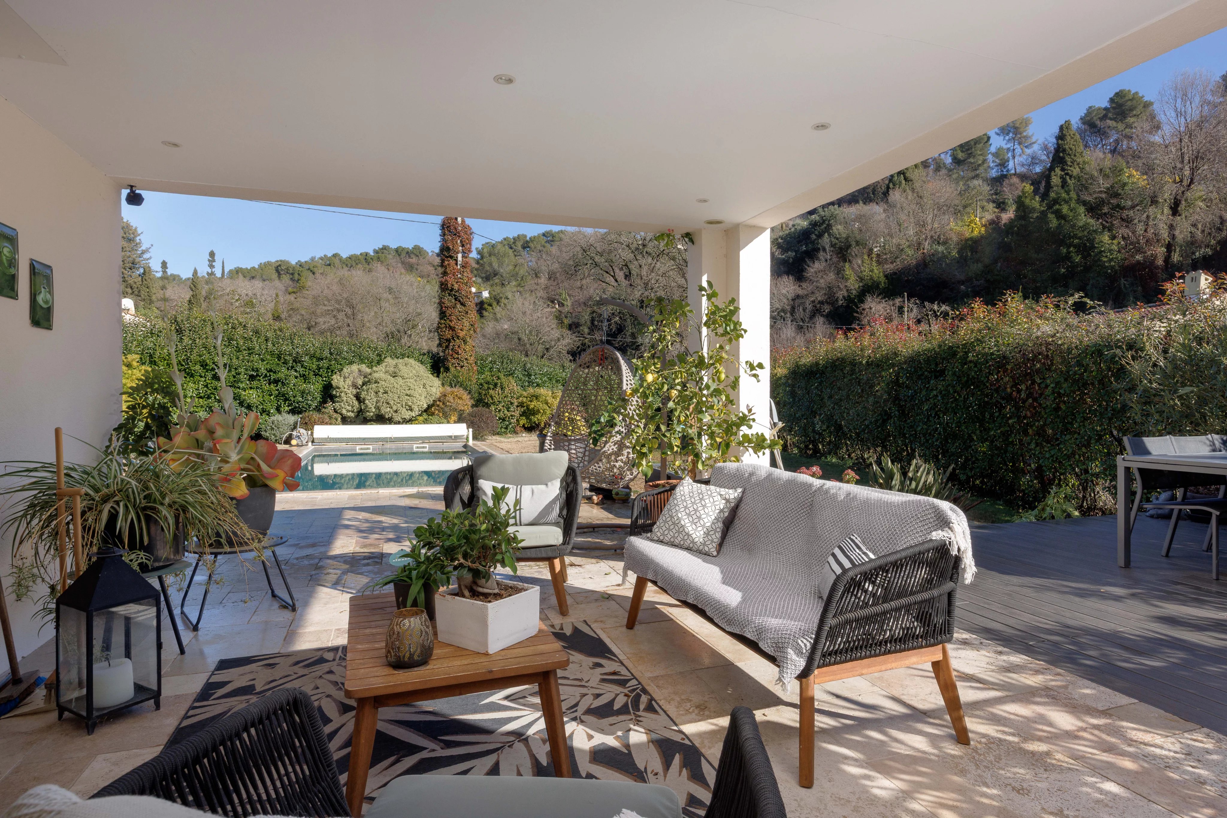 In der renommierten Gemeinde Saint-Paul-de-Vence, nur wenige Gehminuten vom Dorf entfernt, liegt diese zeitgenössische Villa von 263 m², die mit Sorgfalt und Raffinesse vollständig renoviert wurde. Sie befindet sich auf einem ebenen Grundstück von 1.886 m² in einer ruhigen Wohngegend.
