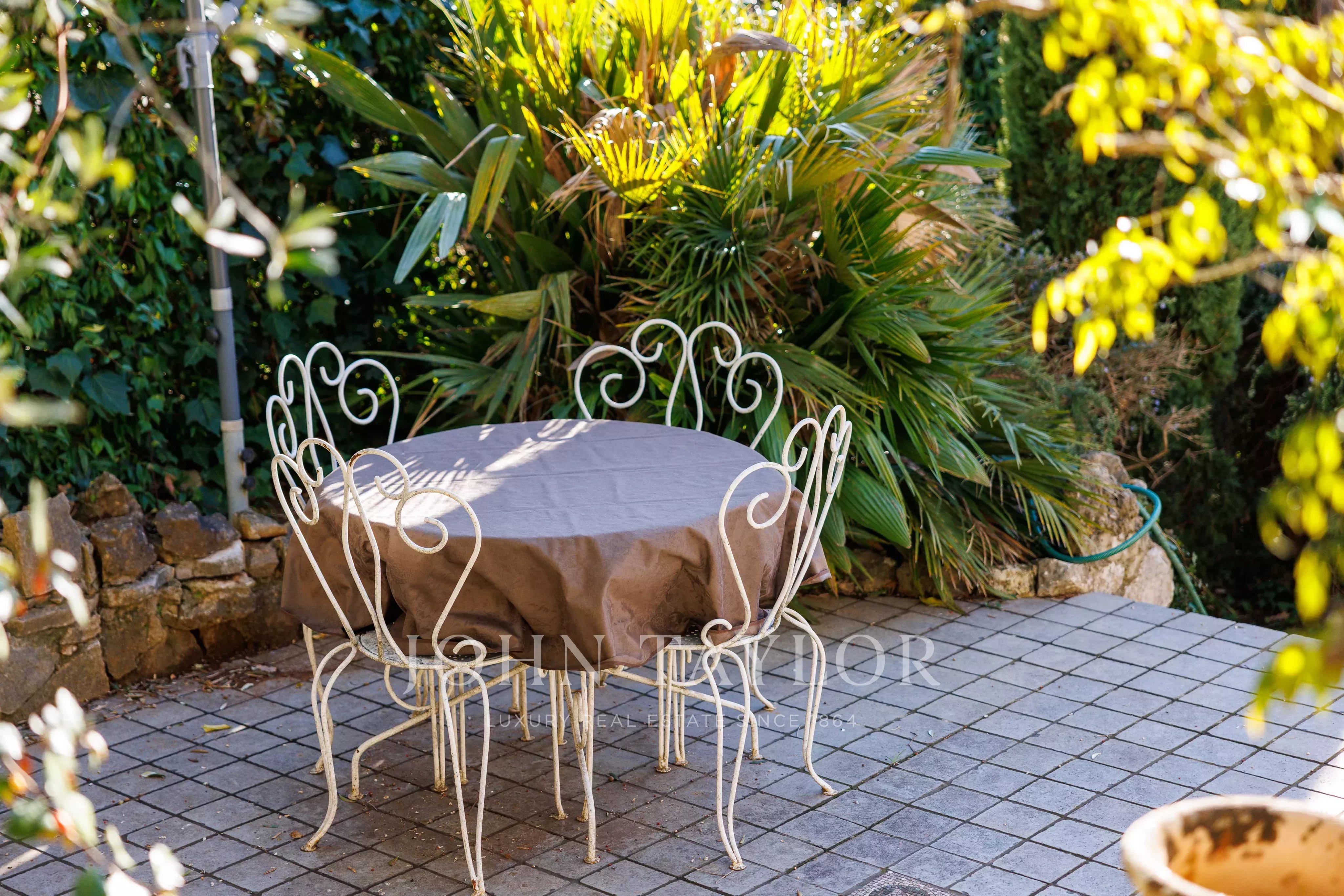 Der Garten ist in mehrere Terrassen angelegt, die mit zahlreichen Zitrusfrüchten bepflanzt sind. Der Infinity-Pool mit Sprudelbecken und Poolhaus, der sich in unmittelbarer Nähe der Wohnräume befindet, kommt besonders gut zur Geltung. Das mit edlen Materialien wie Stein und alten Dachziegeln errichtete Ensemble bietet einen eleganten und privilegierten Rahmen, der ideal für Entspannung und Empfänge ist!