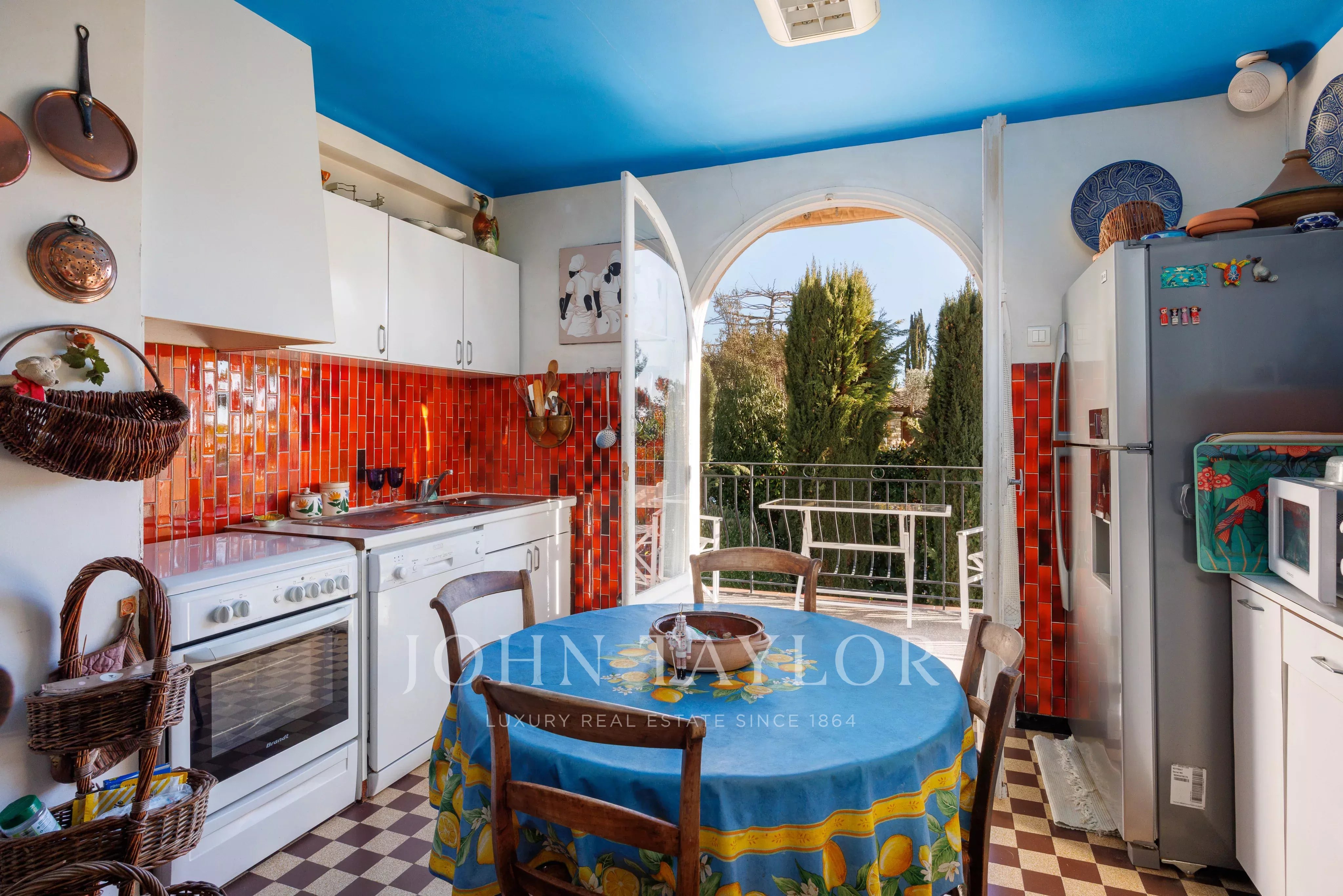 Ideal gelegen in den ruhigen Wohnhöhen von Saint-Paul-de-Vence, in einem beliebten Viertel, bietet dieses charmante, teilweise aus Stein gebaute Haus von ca. 141 m² einen freien Blick bis zum Meer und zum Cap d'Antibes, mit einer optimalen Ausrichtung nach Südosten und Südwesten. Es verfügt über einen Infinity-Pool, ein Sprudelbecken und ein Poolhaus.