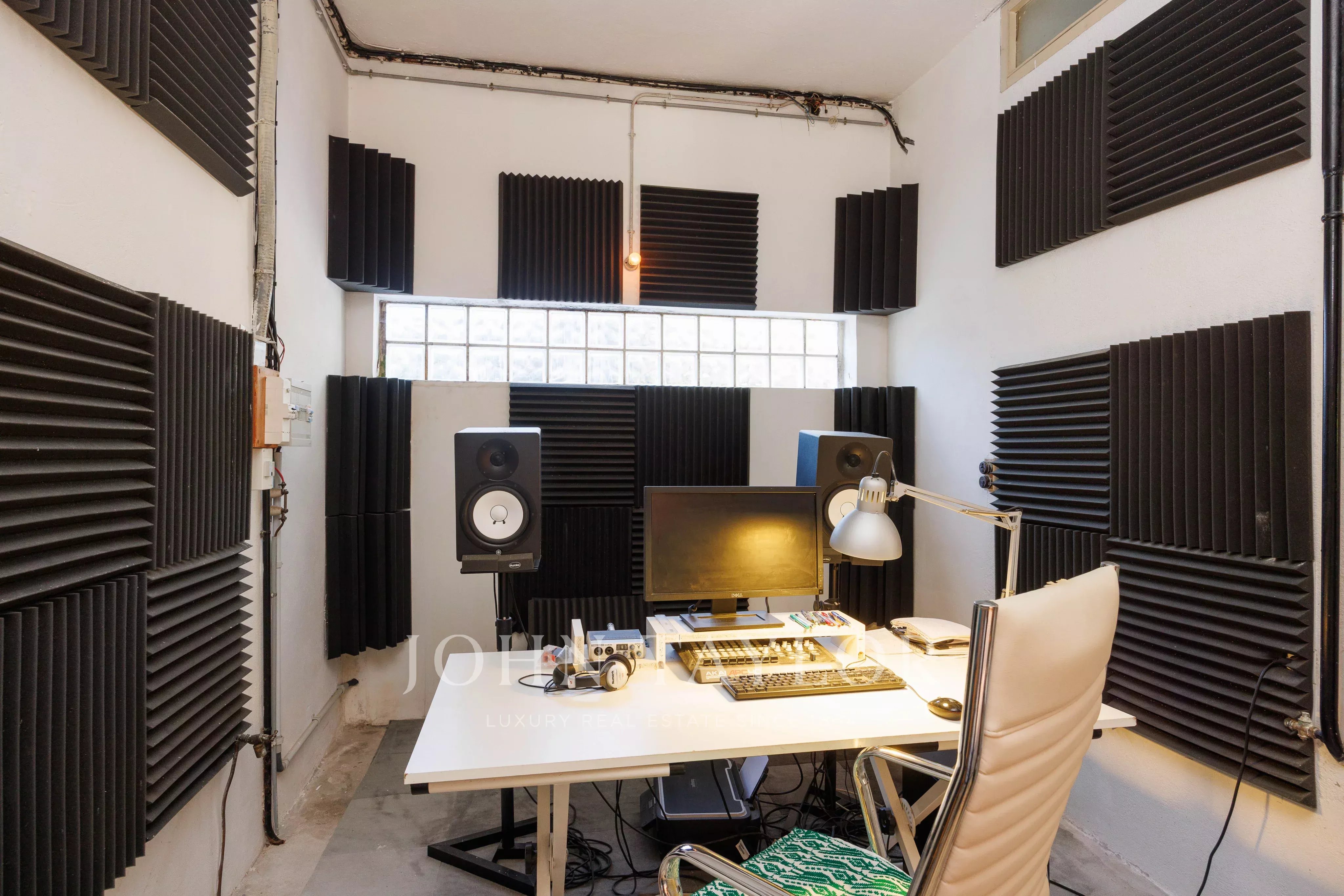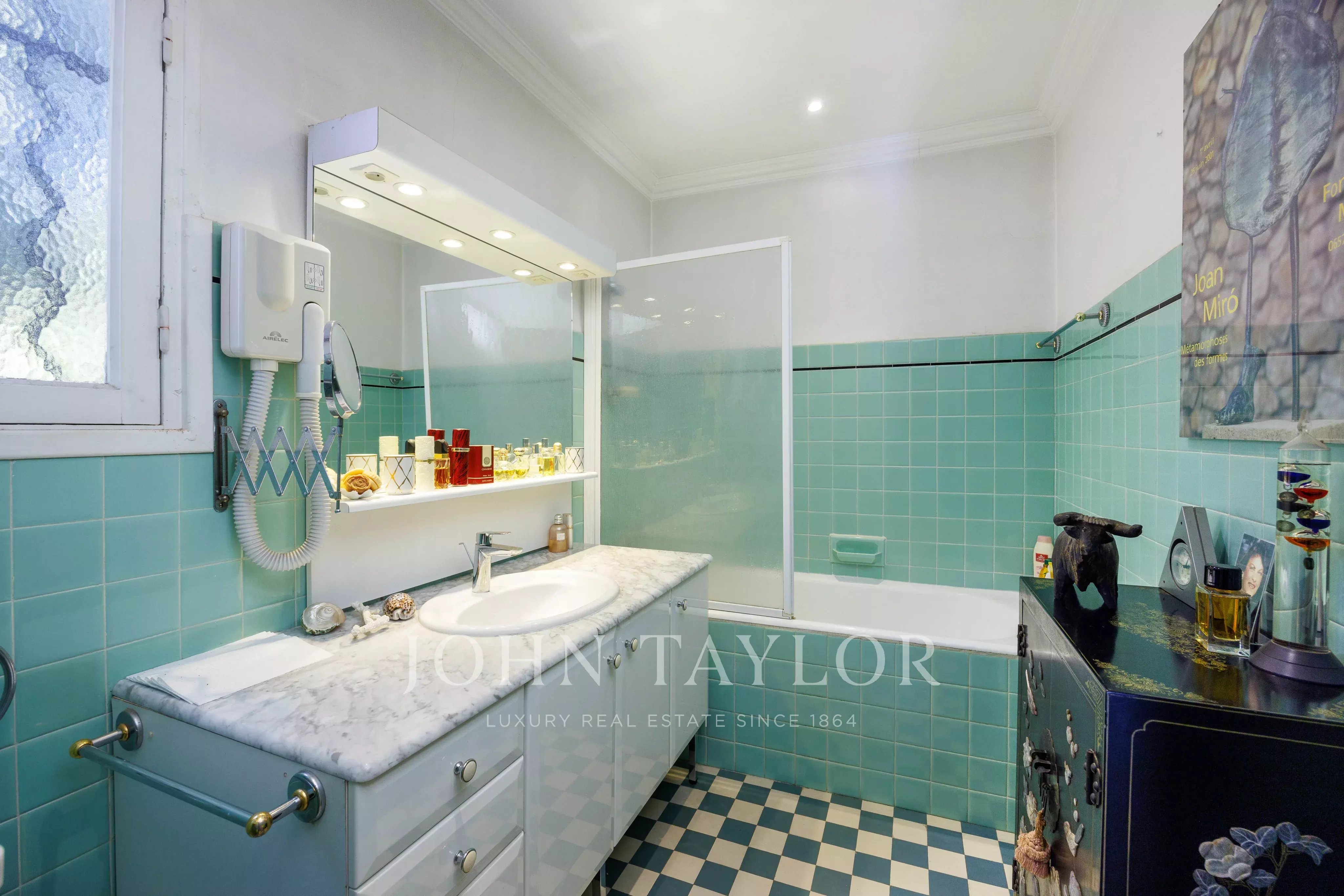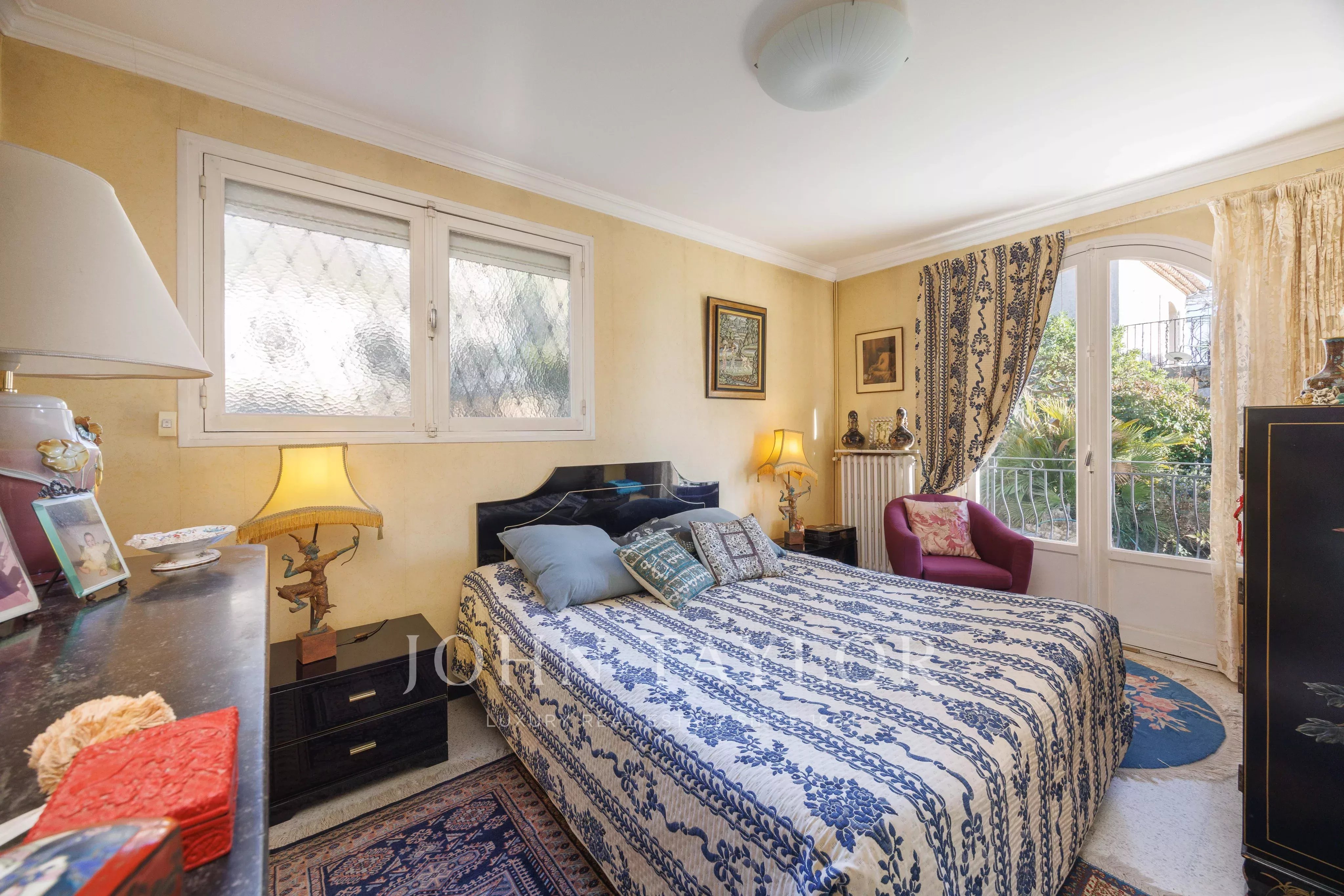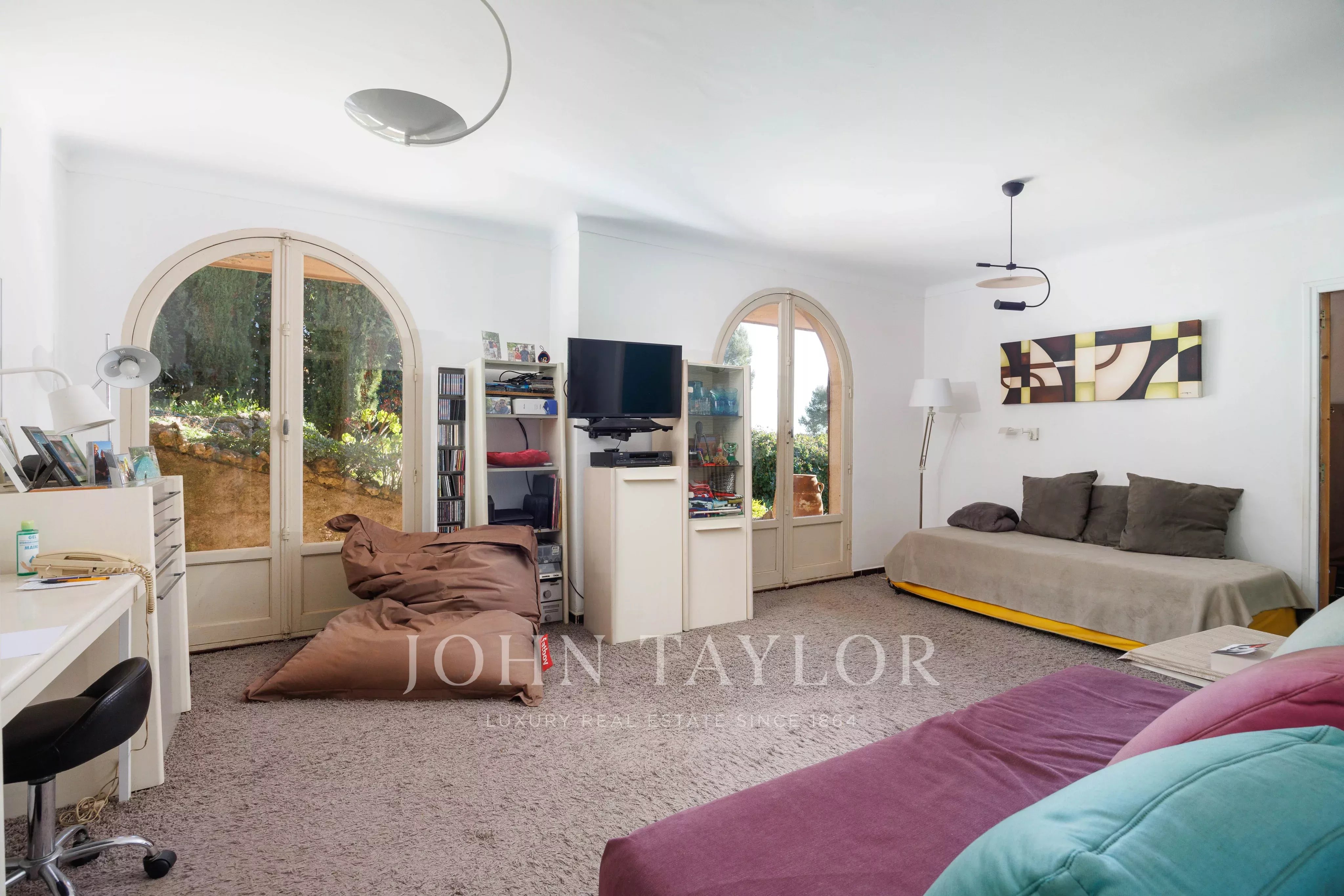 Das obere Gartengeschoss beherbergt die Wohnbereiche: ein helles Wohnzimmer mit Kamin, das sich zur Terrasse und zum Garten hin öffnet, eine Küche, die leicht zum Wohnzimmer hin geöffnet werden kann, sowie ein Elternschlafzimmer, Ankleidezimmer und Duschraum. Im Erdgeschoss befinden sich ein Schlafzimmer und ein großer, modulierbarer Raum, der die Schaffung von zwei zusätzlichen Schlafzimmern ermöglicht, heute mit Küchenzeile, das Ganze öffnet sich zu überdachten Terrassen, ergänzt durch ein Musikzimmer, einen Keller, eine Waschküche und einen Heizraum.