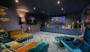 Die untere Ebene beherbergt ein drittes Schlafzimmer mit Dusche, einen atemberaubenden Kinosaal, eine Waschküche, einen Keller und eine geräumige Garage.