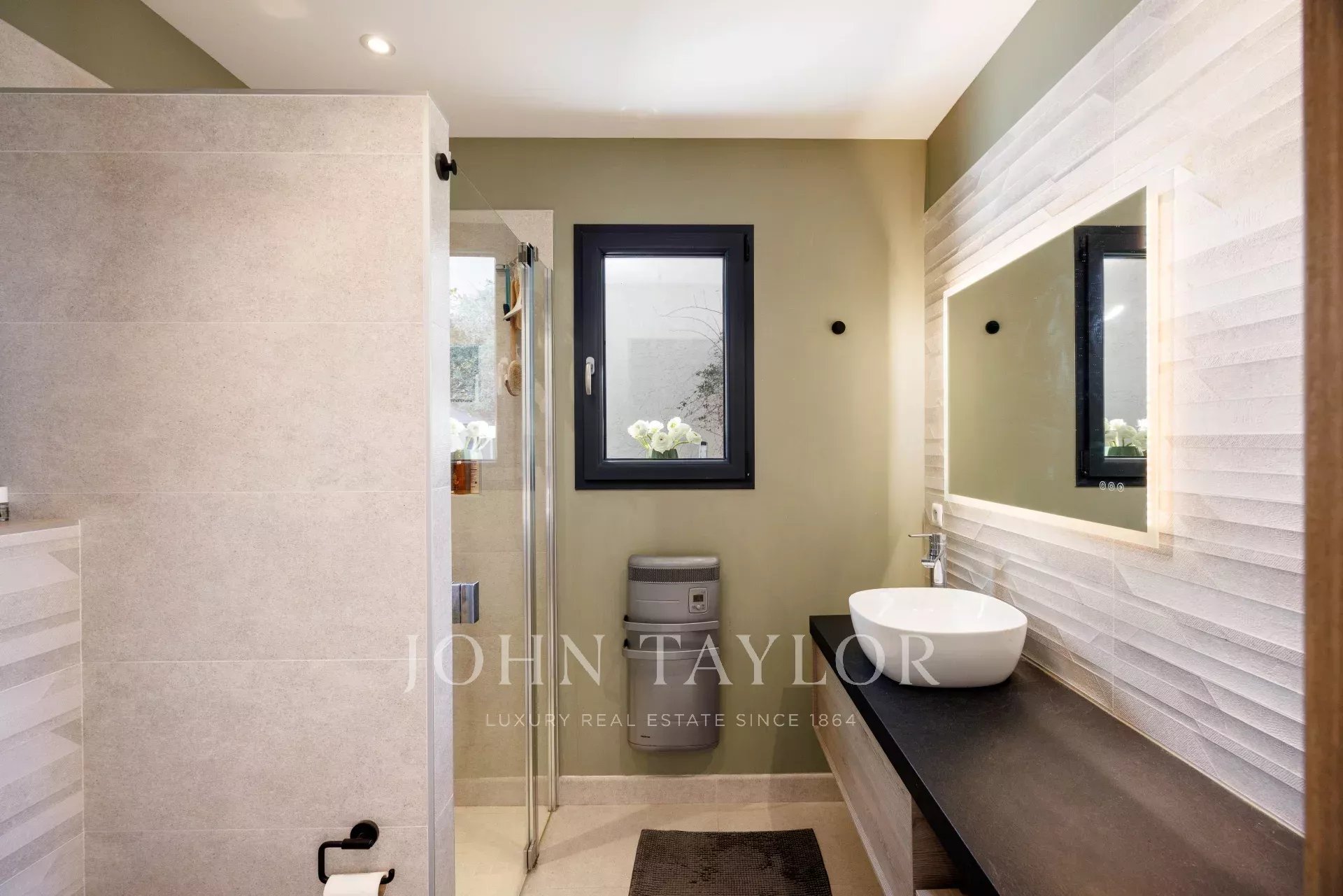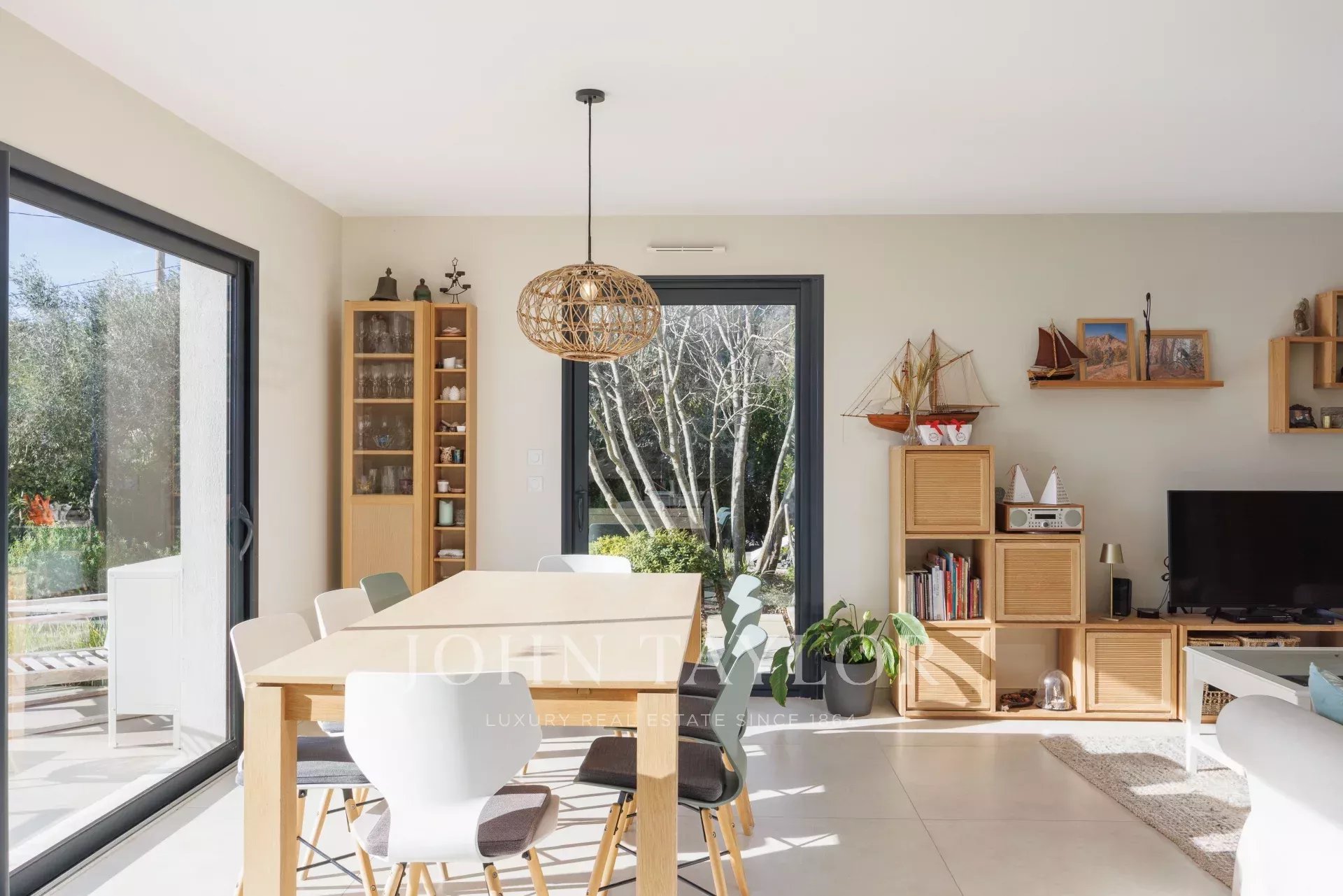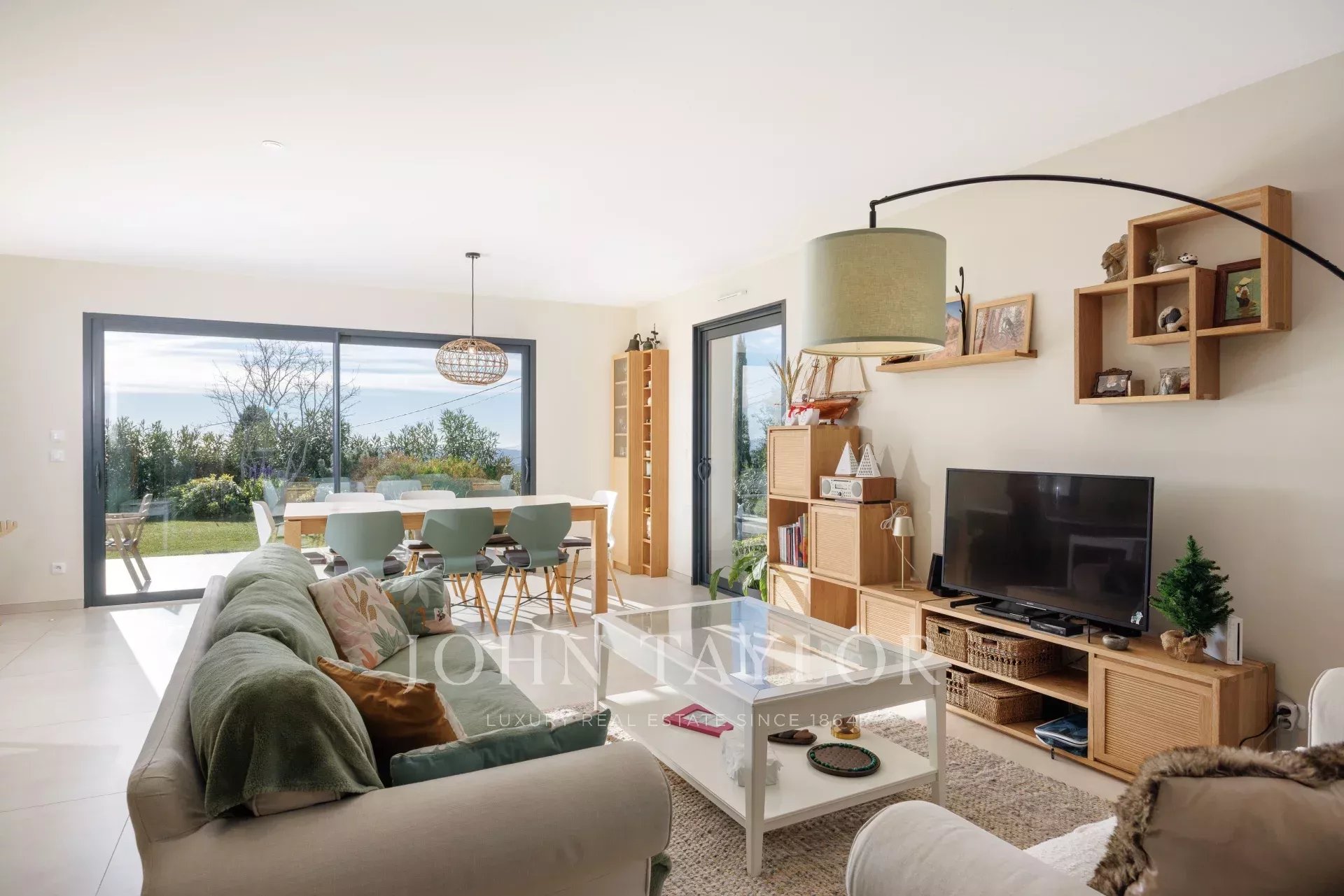 Diese sehr schöne, moderne, ebenerdige Villa mit ca. 140 m2 Wohnfläche liegt in der Nähe aller Annehmlichkeiten und ist absolut ruhig. Sie profitiert von einem flachen Landschaftsgarten mit Infinity-Pool und einem schönen Panoramablick bis hin zum Meer und dem Esterel-Gebirge.