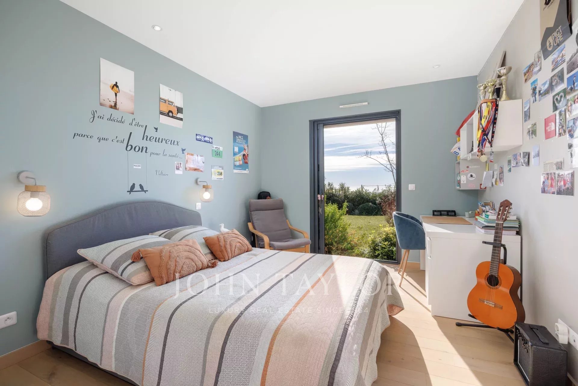 Der Garten wurde von einem echten Gartenkünstler wunderschön bepflanzt und ist komplett flach. Eine seltene Kombination mit dem Panoramablick auf das Meer!