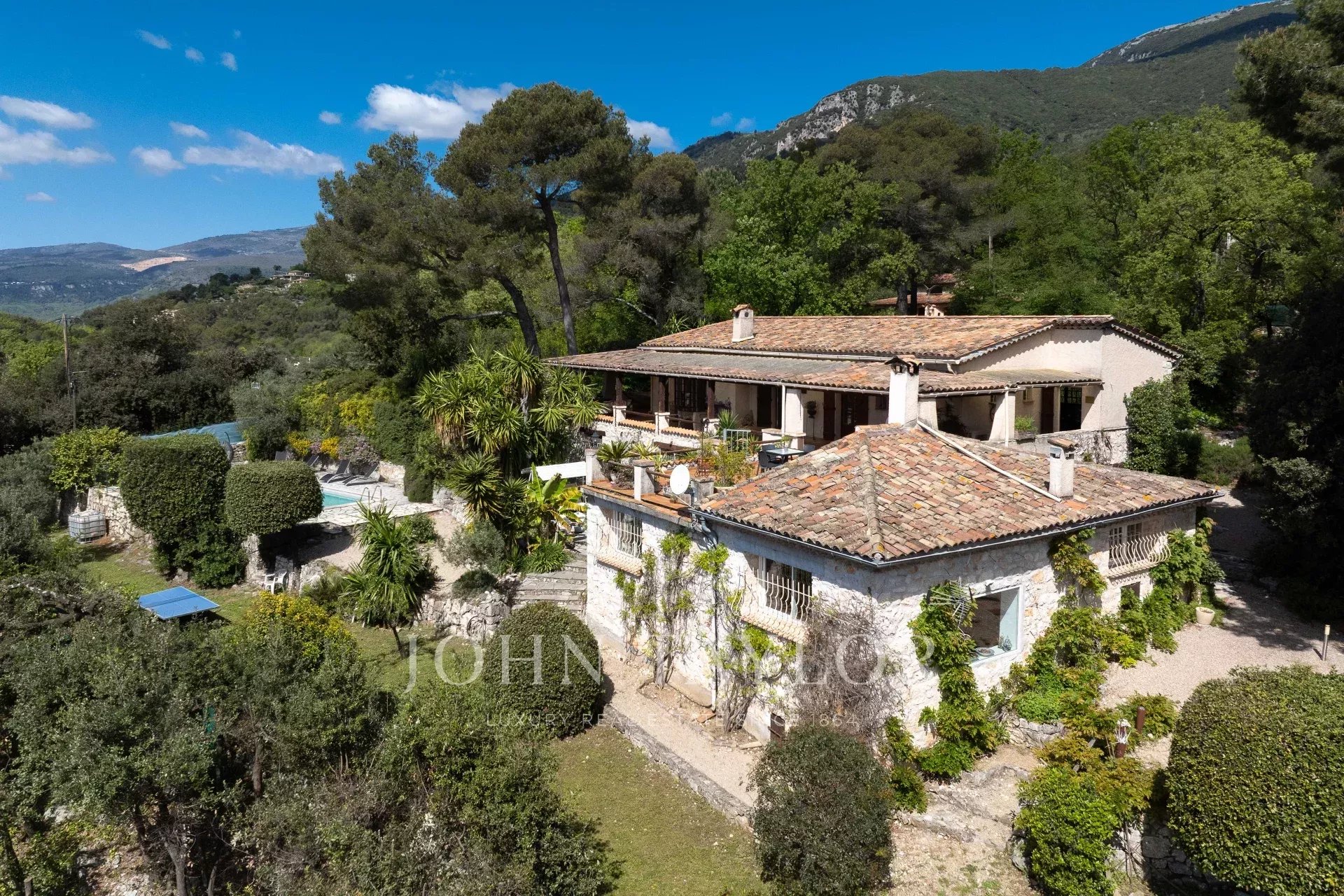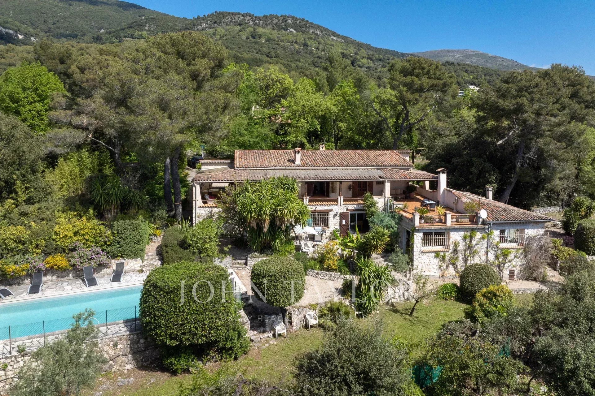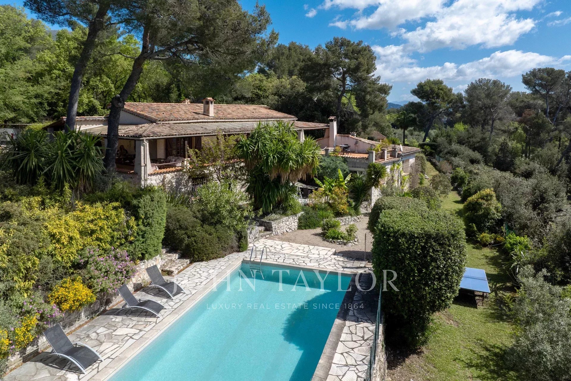 Nur wenige Minuten vom beliebten Dorf Tourrettes-sur-Loup entfernt liegt dieses charmante Haus, das zum größten Teil aus Stein gebaut wurde und eine Wohnfläche von ca. 262 m² bietet. Es befindet sich inmitten der Natur, in absoluter Ruhe, auf einem wunderschönen 4.774 m² großen Grundstück mit Pool und einem freien Blick, der bis zum Meer und Cap d'Antibes reicht.