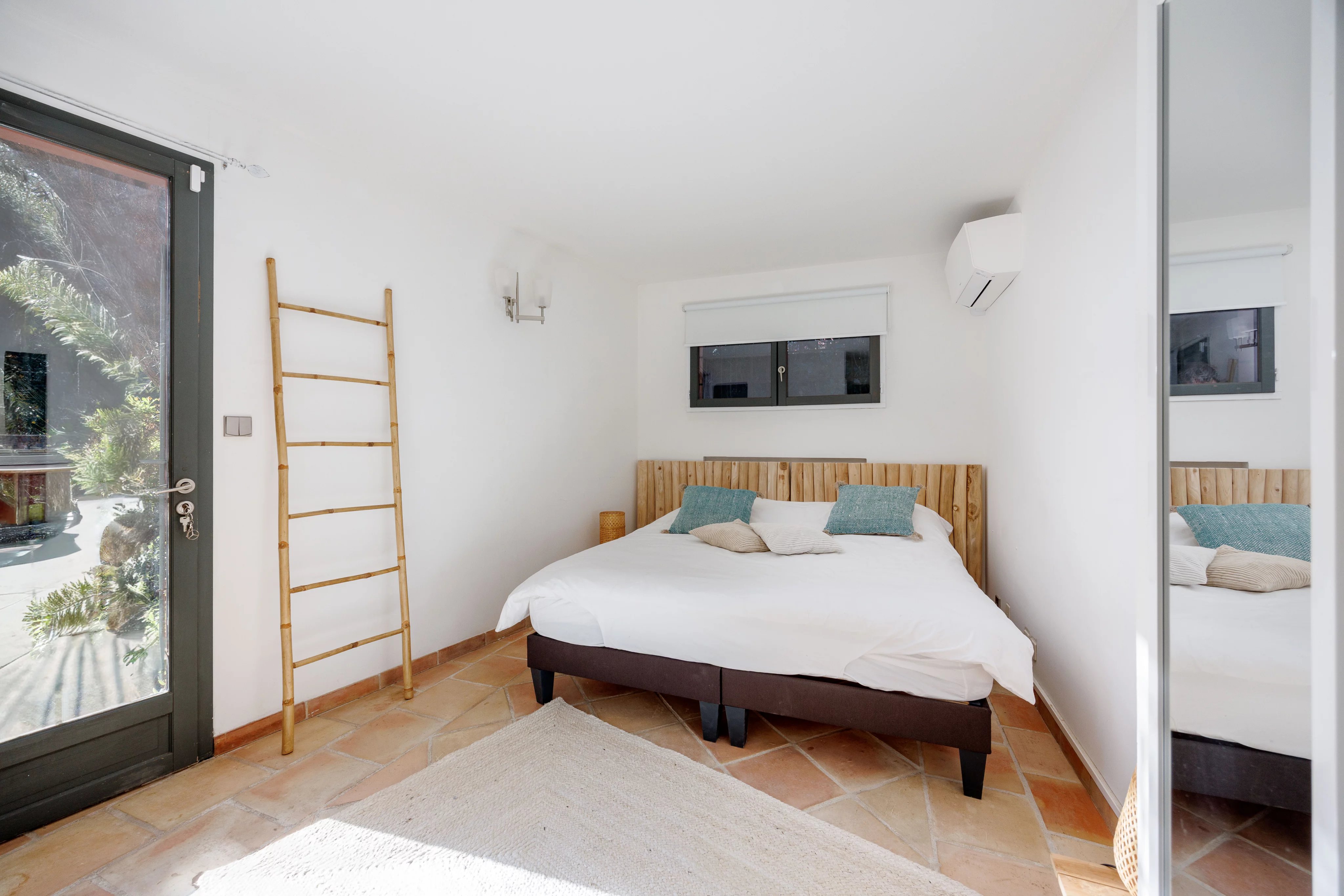 Die Schlafbereiche bieten Komfort und Privatsphäre mit zwei Schlafzimmern auf halber Ebene, die jeweils über ein eigenes Bad und einen Zugang nach außen verfügen, wobei eines davon von einer privaten Terrasse profitiert.