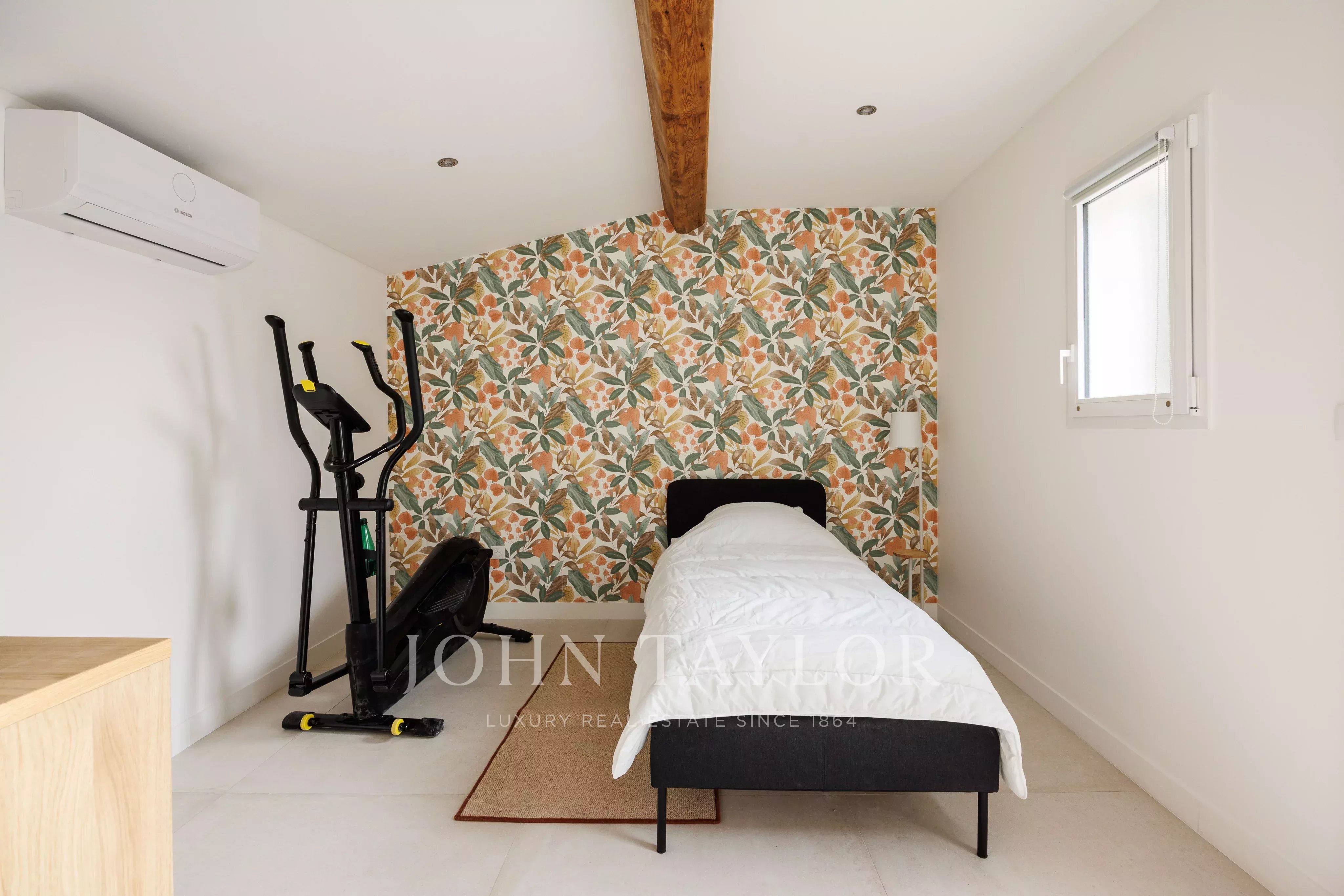 Dieses komplett renovierte, einstöckige Haus in einer ruhigen Wohngegend mit freiem Panoramablick auf das Dorf Saint-Paul-de-Vence liegt auf einem Grundstück von ca. 2120 m² und hat eine Fläche von ca. 281 m². Es umfasst sechs Schlafzimmer, darunter eine unabhängige 3-Zimmer-Wohnung, einen Pool und einen Carport.