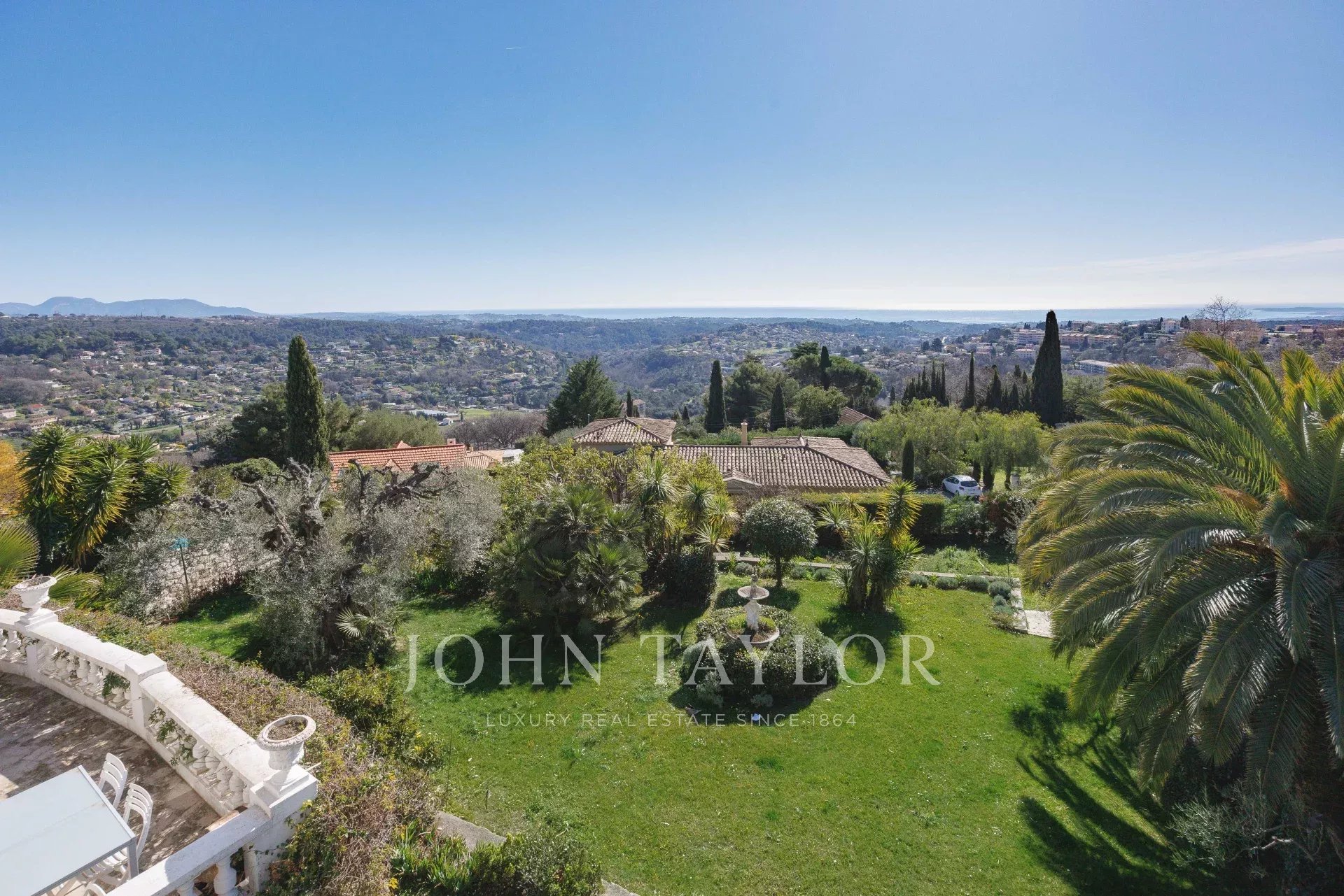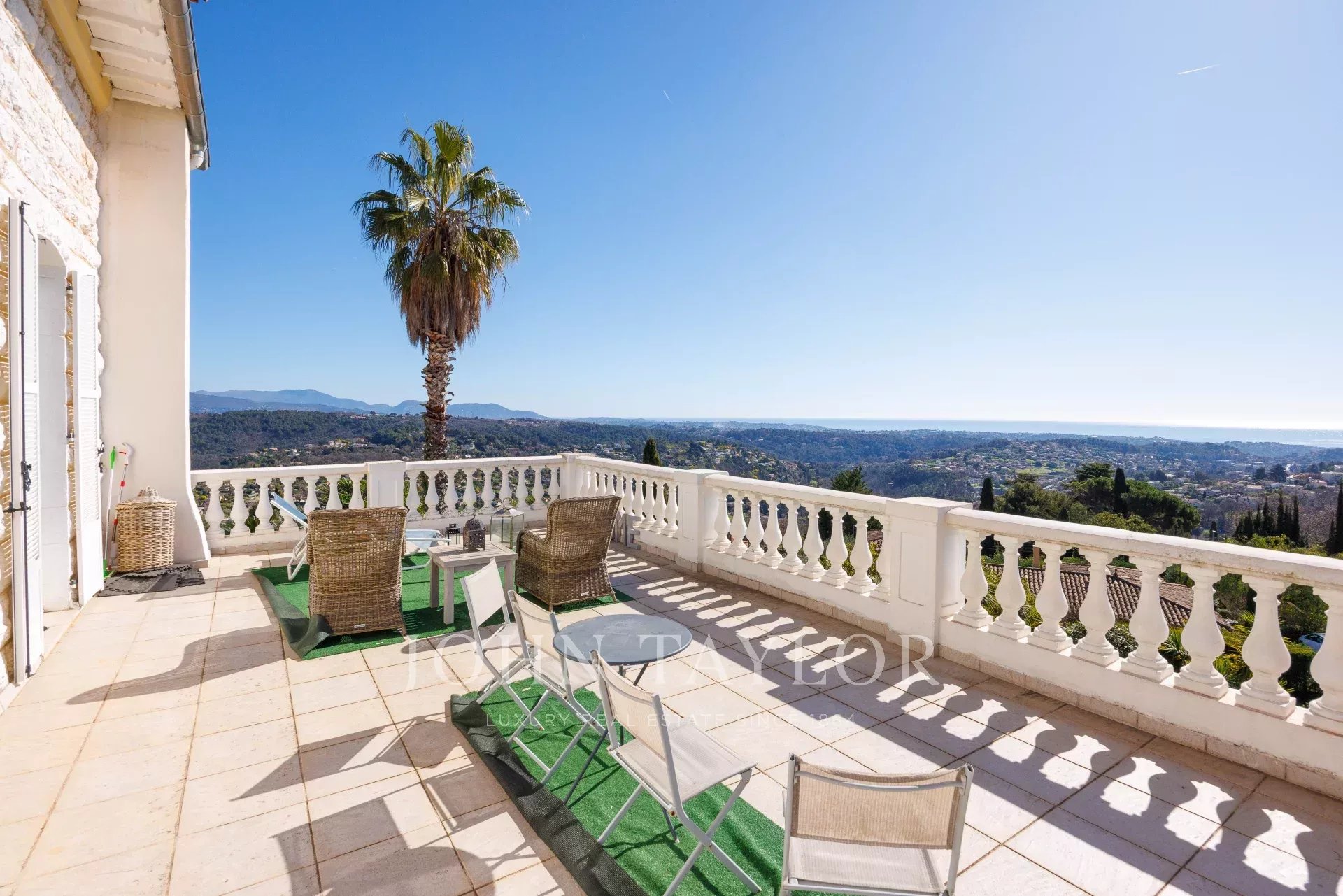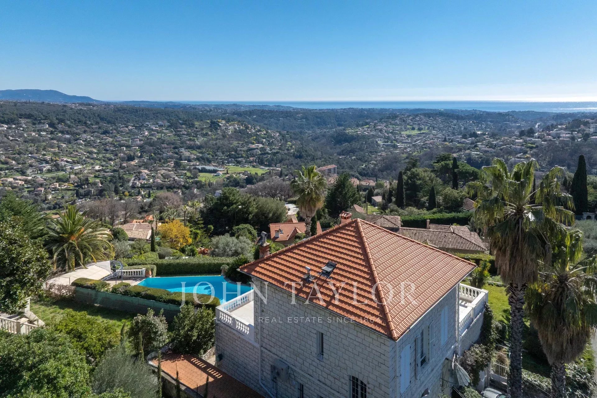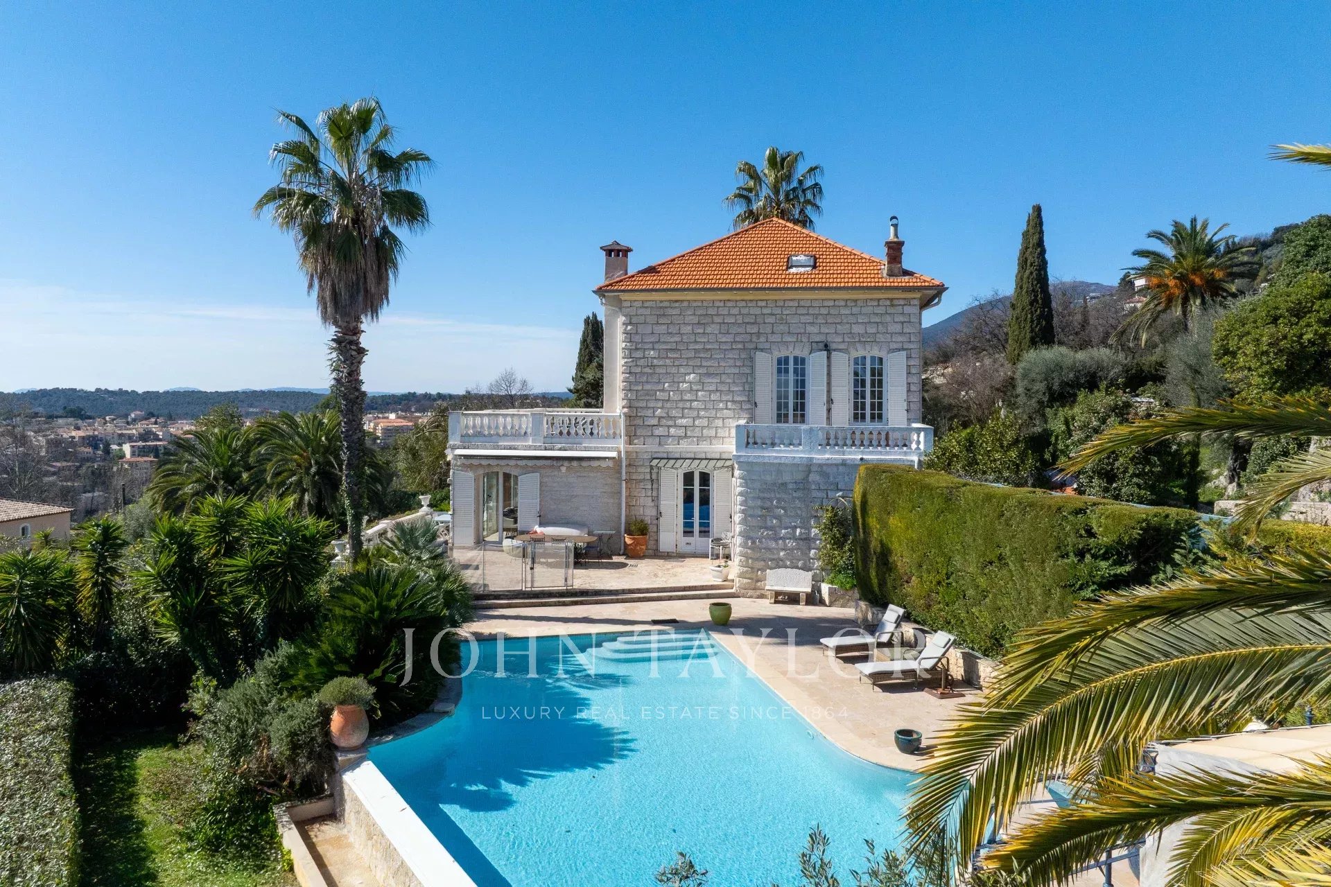 Eingebettet in die Wohnhöhen von Vence bietet dieses charmante Steinhaus aus den 1920er Jahren mit einer Fläche von ca. 240 m² einen idyllischen Rahmen mit einem Panoramablick auf das Meer und die Côte d'Azur. Sein 1.500 m² großes, landschaftlich gestaltetes Grundstück, das durch einen herrlichen, beheizten Swimmingpool veredelt wird, lädt zum Entspannen ein.