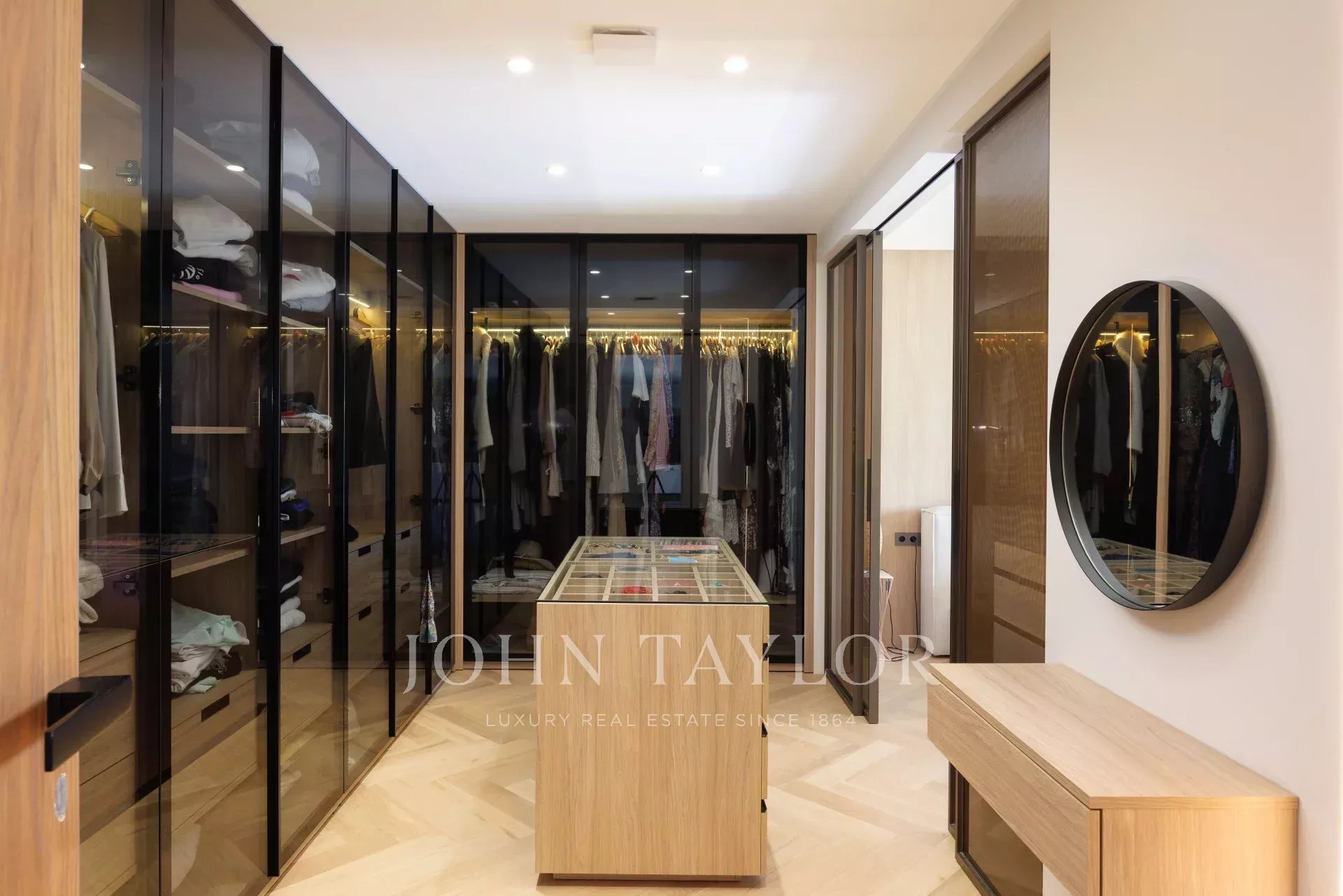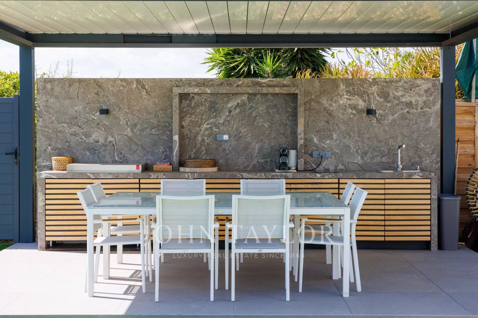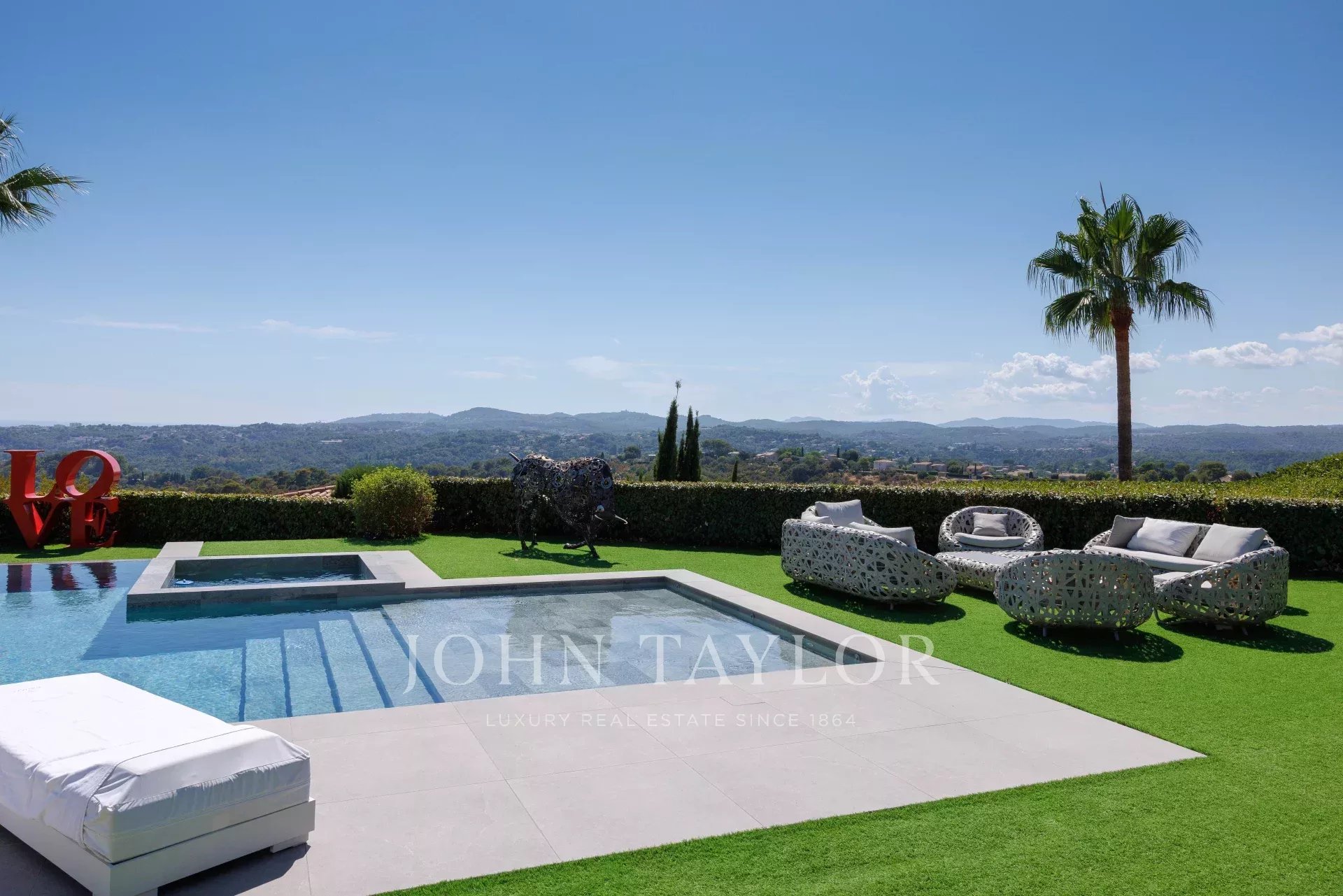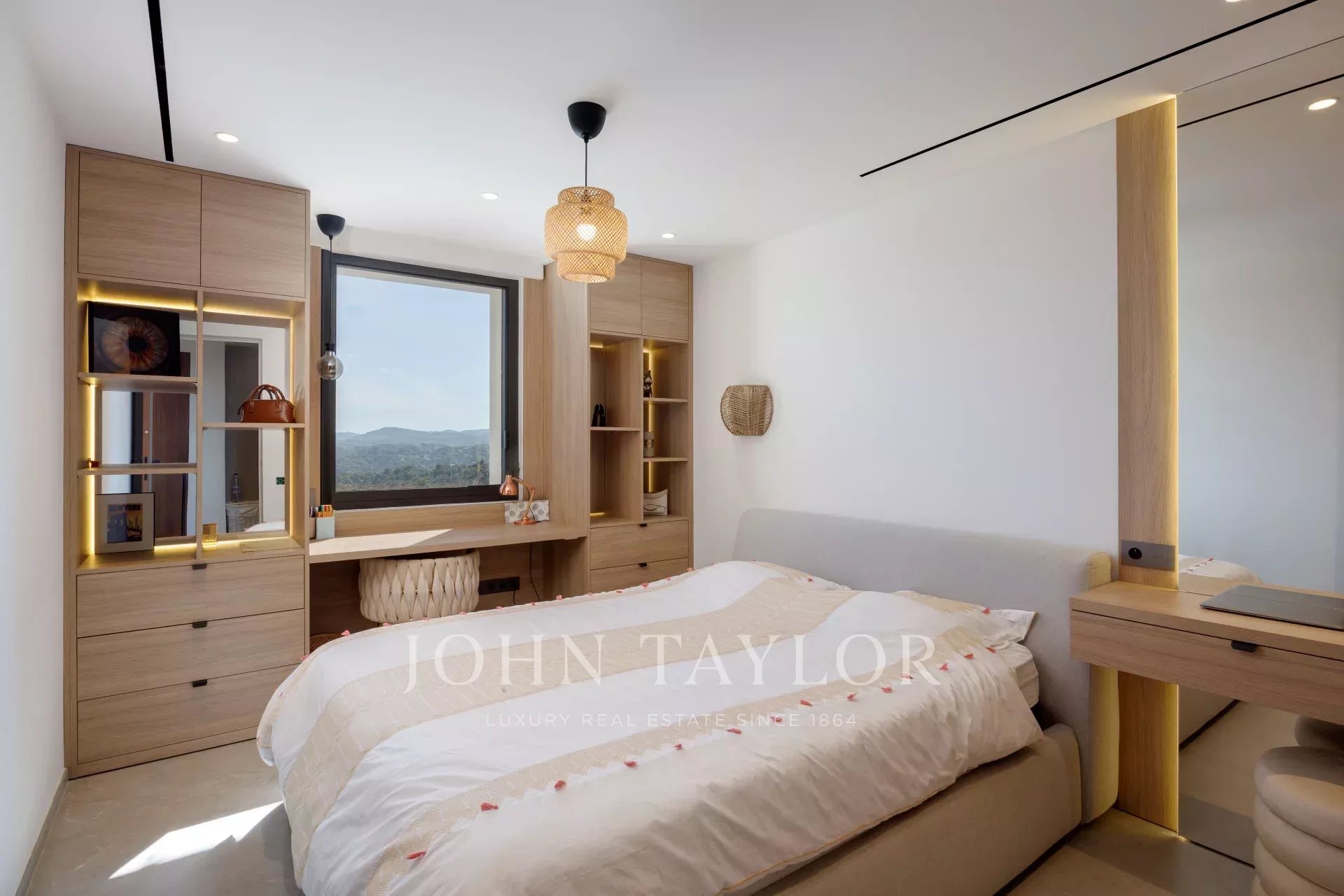 In einem der begehrtesten Gebiete der Côte d'Azur, in absoluter Ruhe und wie auf einem Hügel gelegen, bietet diese 2024 komplett neu gebaute Villa von fast 400 m² mit großem Pool und Jacuzzi in Südwestlage ein atemberaubendes Panorama auf Cap d'Antibes, das Meer und die umliegenden Hügel.