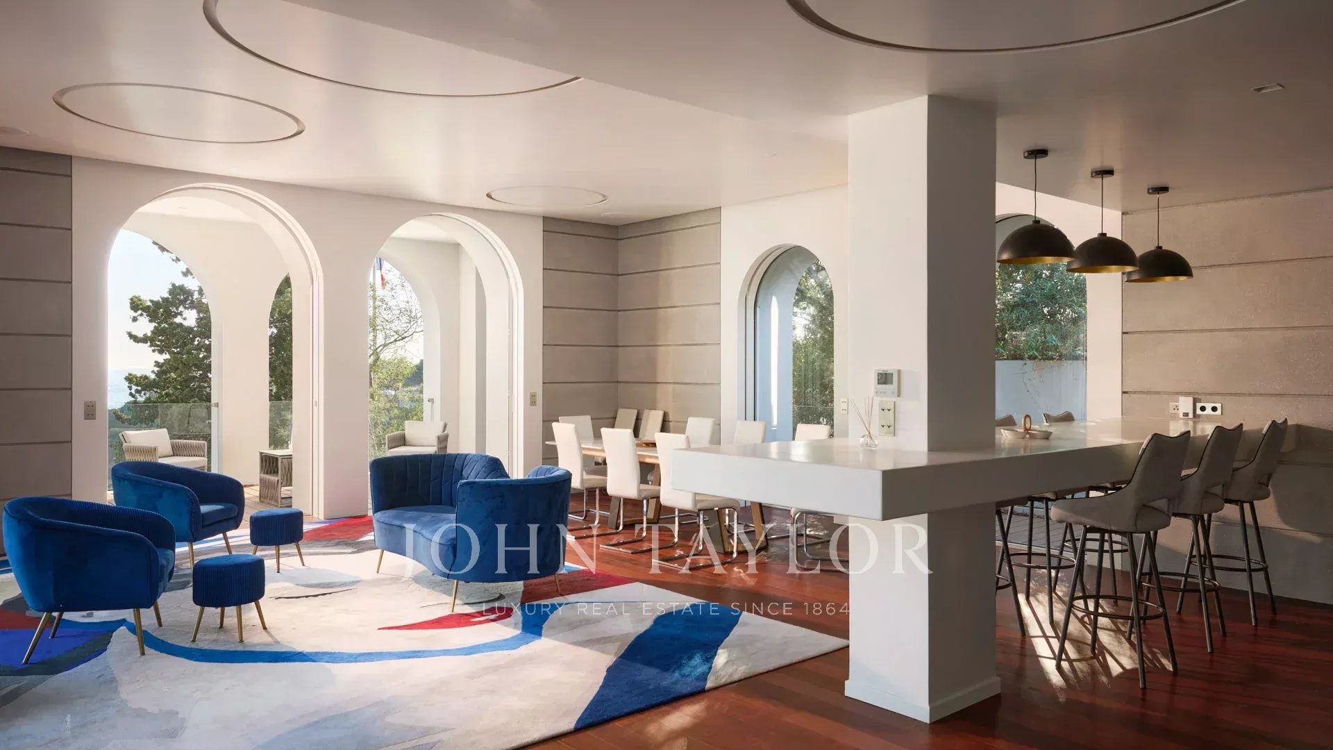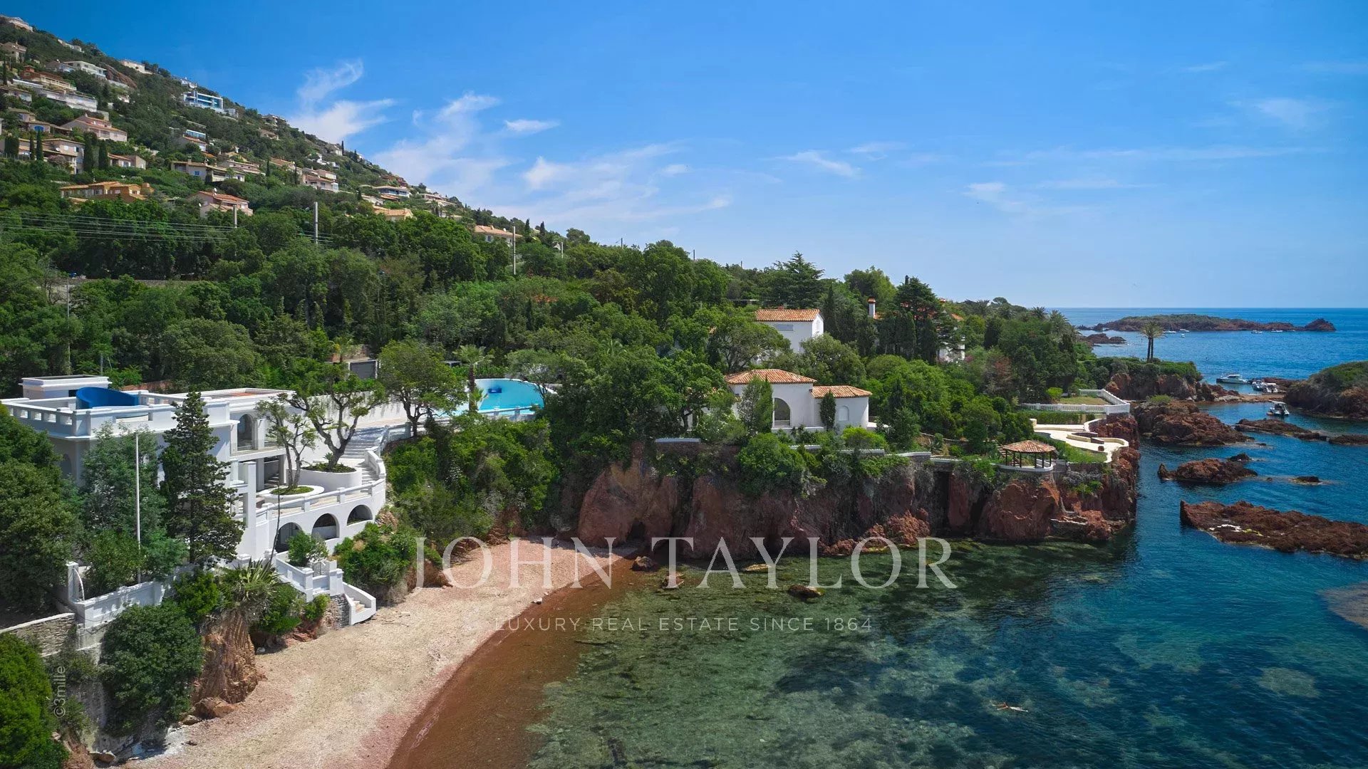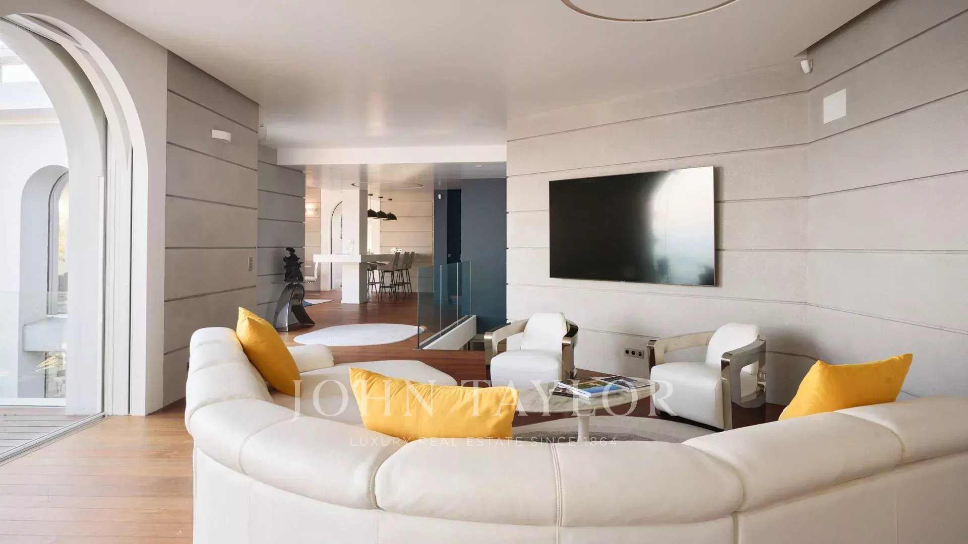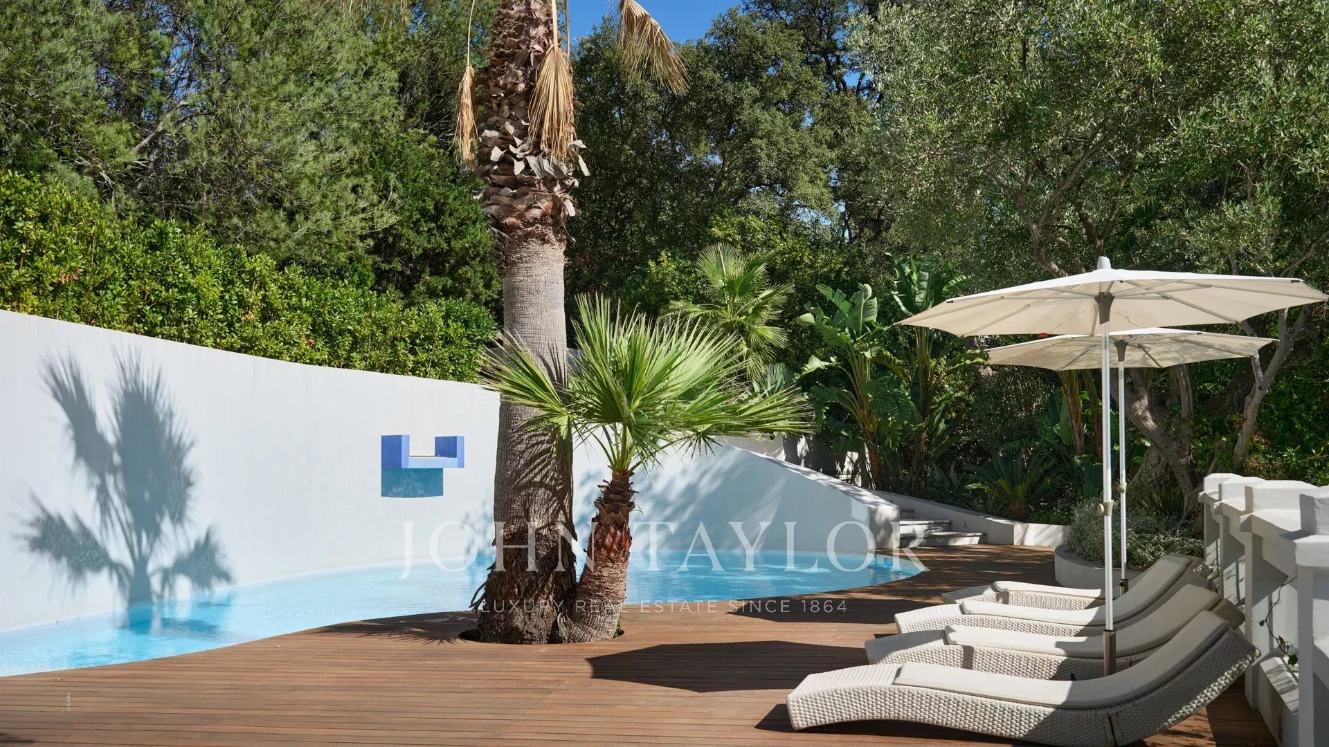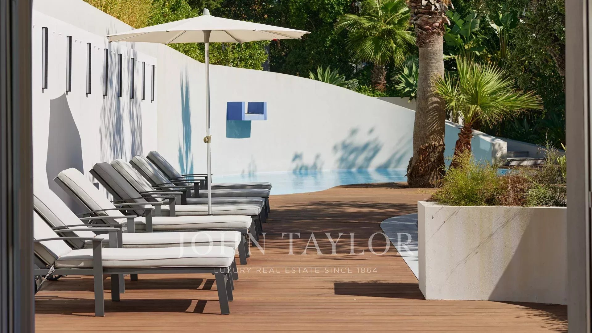Das Anwesen bietet eine sehr hochwertige Ausstattung, hochwertige Materialien, ein Spa, eine Sauna, eine ausgebaute Dachterrasse und einen 84 m2 großen Pool, der von weitläufigen Stränden umgeben ist und sich auf demselben Niveau wie die Wohnräume befindet.