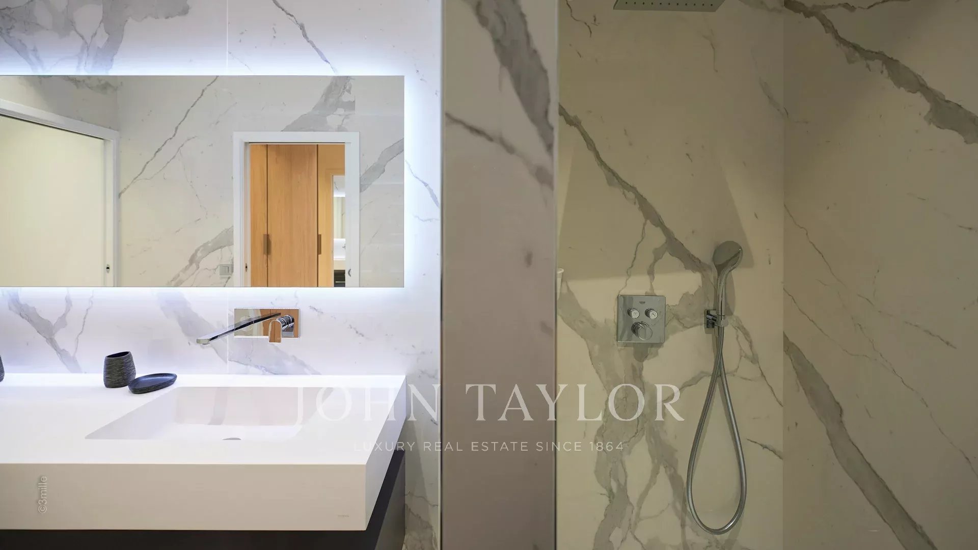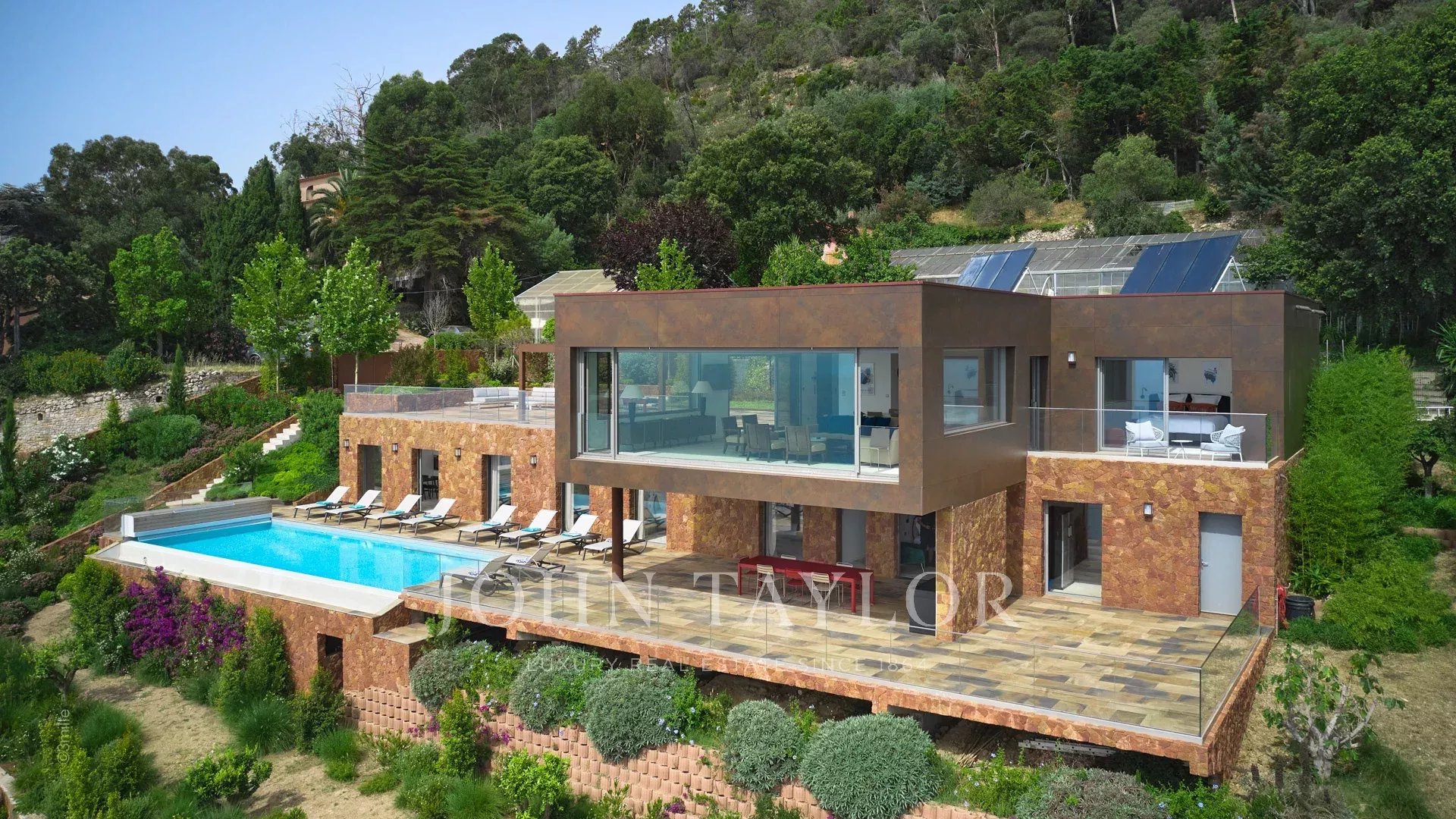 Auf einer Fläche von ca. 340 m² besteht das Anwesen im Erdgeschoss aus einem großen, zur Terrasse hin offenen Wohnzimmer, einer amerikanischen Küche, einem Esszimmer sowie einem Hauptschlafzimmer mit Ankleidezimmer. Auf der unteren Ebene befinden sich sechs Schlafzimmer en suite, darunter ein separates Apartment.