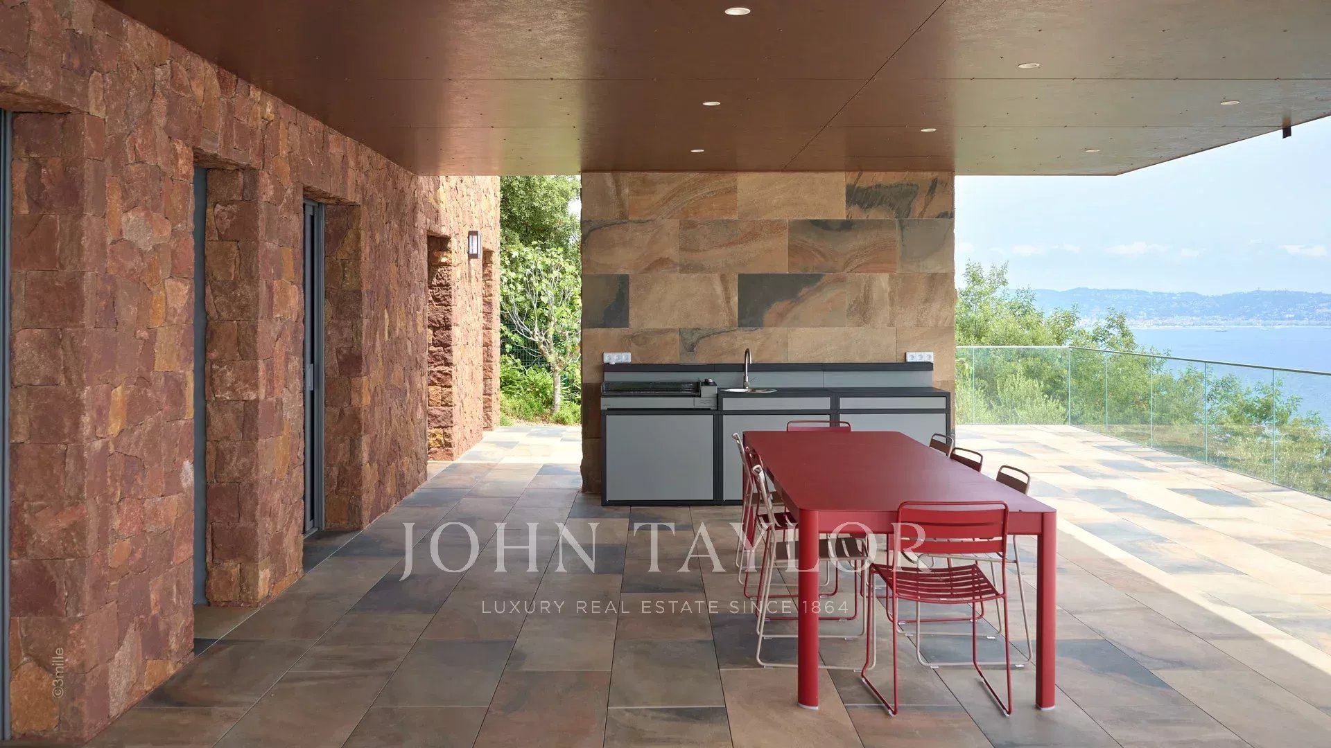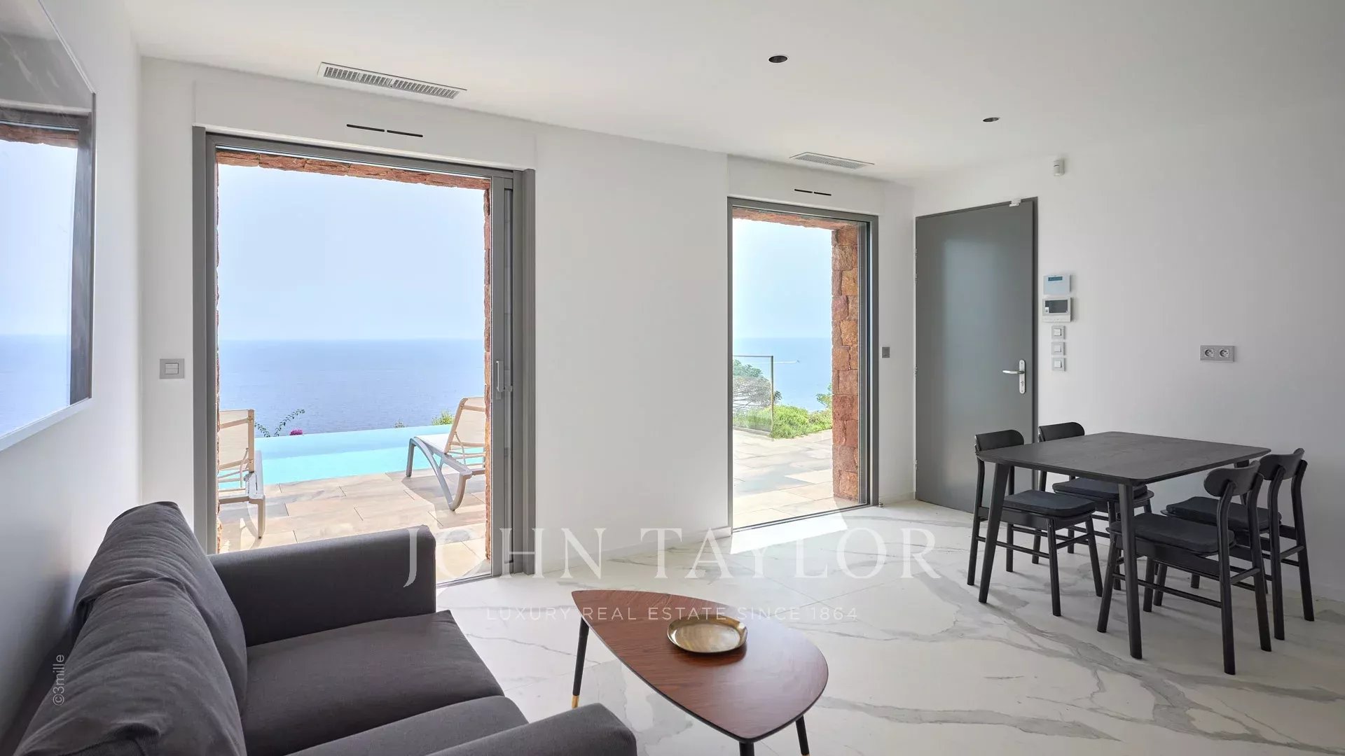 Diese neue Villa befindet sich auf einem Grundstück von 2004 m² und bietet einen spektakulären Meerblick. Sie liegt in einer beherrschenden Position in absoluter Ruhe in Théoule-sur-Mer, nur 5 Minuten vom Dorf entfernt.