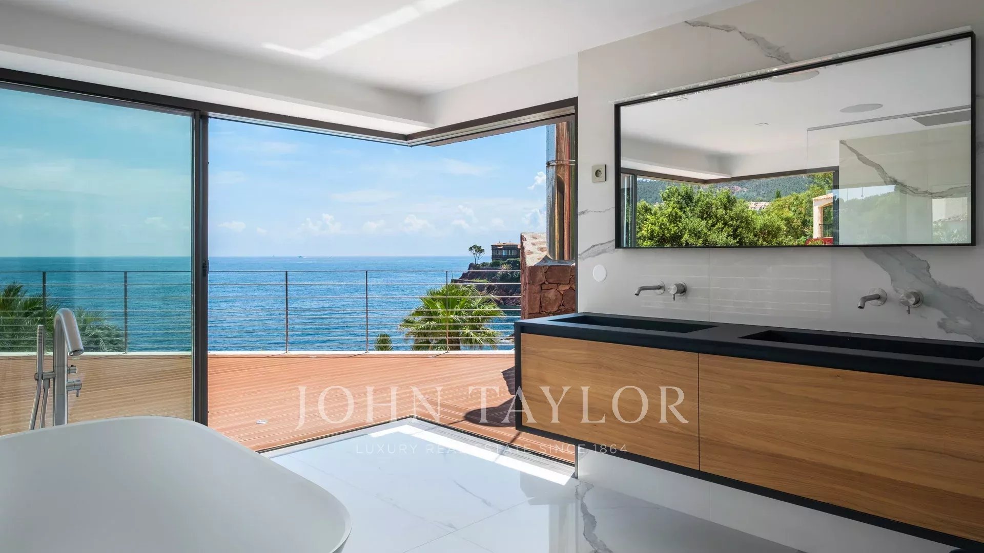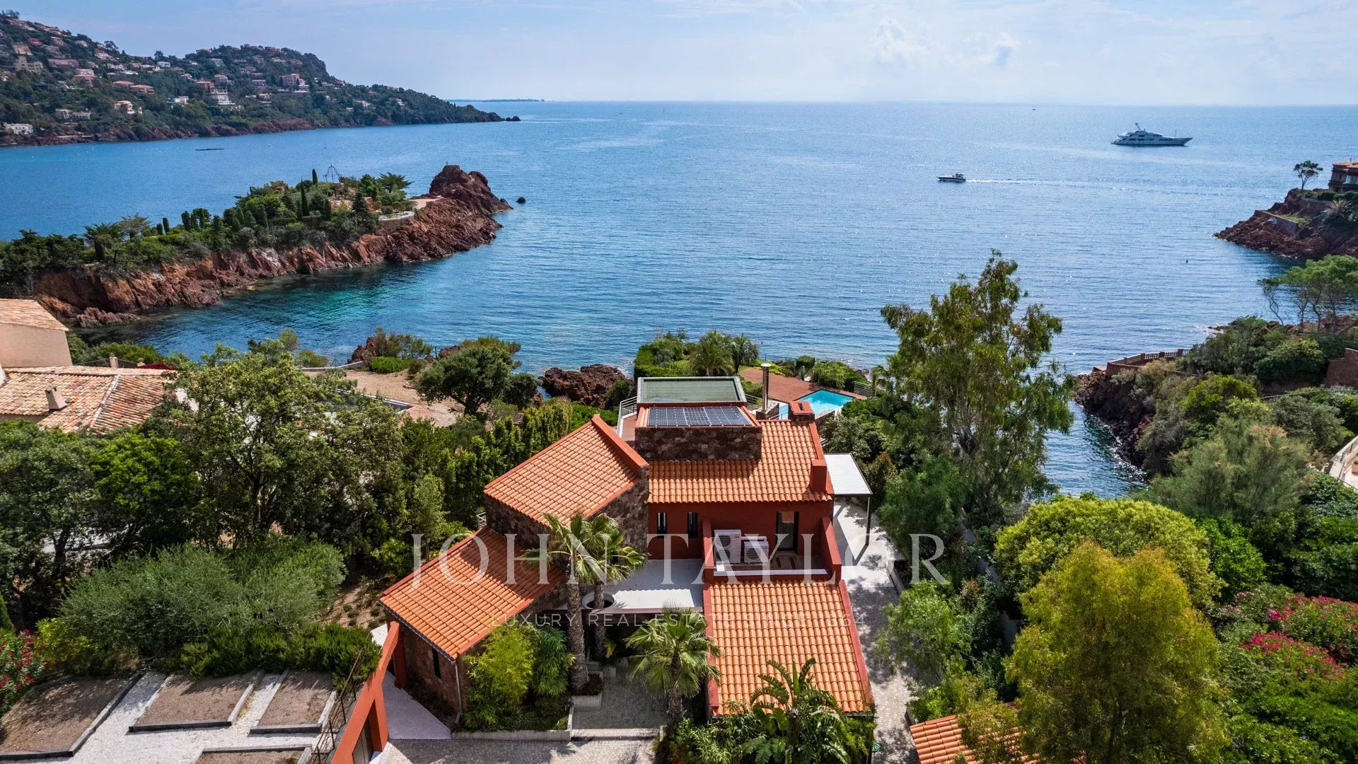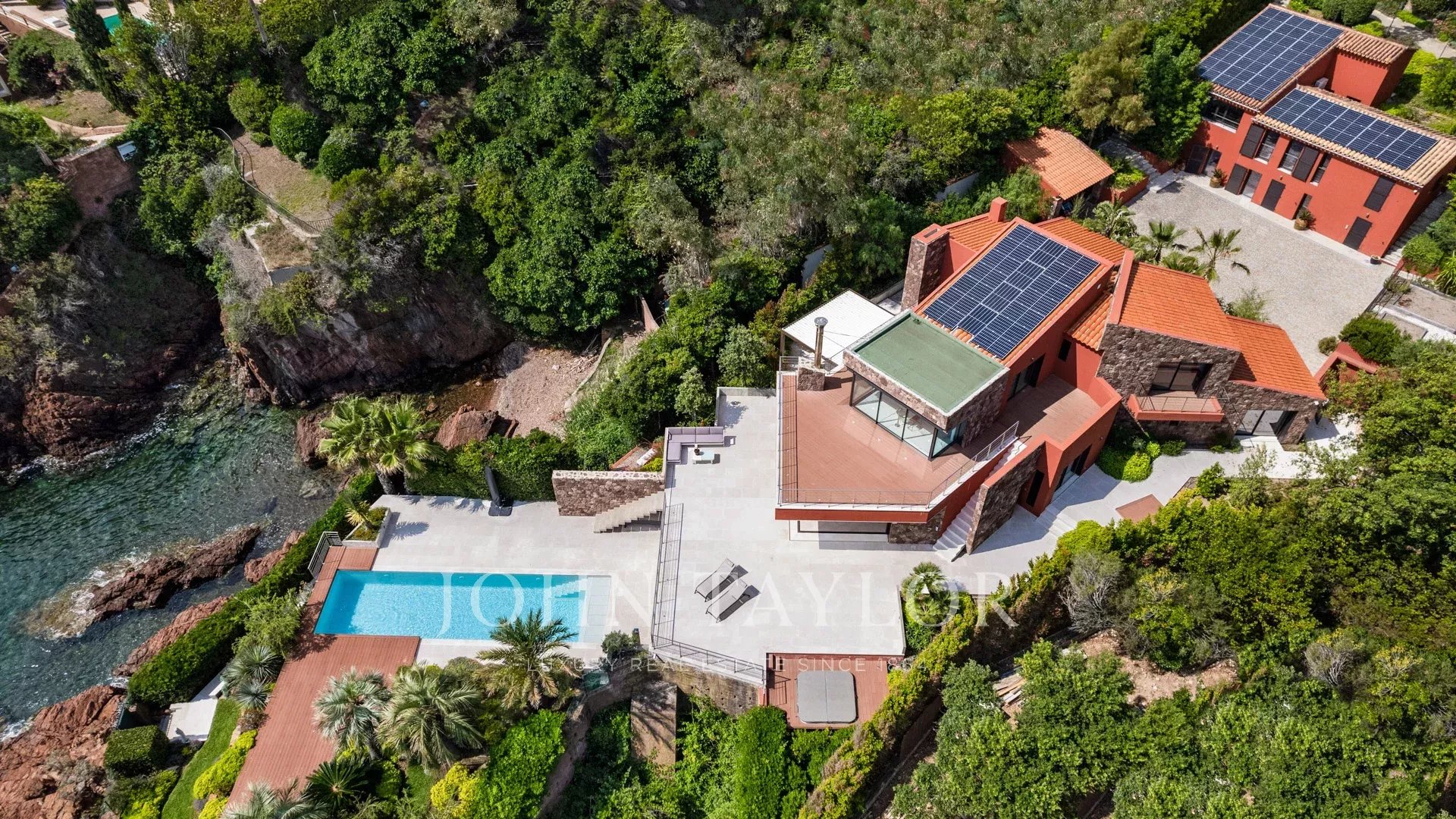 Auf einem Grundstück von ca. 2827 m² liegt dieses zeitgenössische Anwesen von ca. 420 m², bestehend aus einer Hauptvilla und einem Gästehaus, mit spektakulärem Blick und privatem Zugang zum Meer.