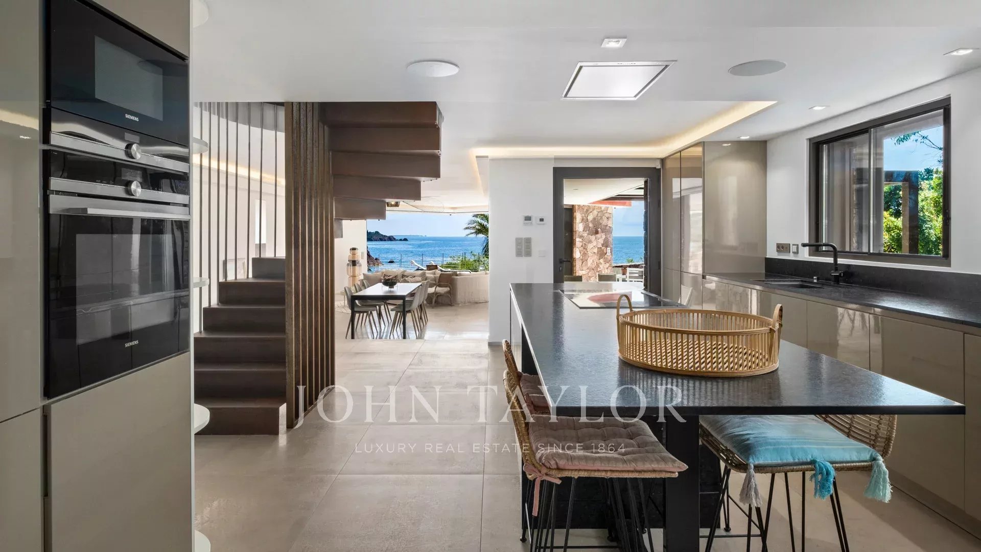 Die Hauptvilla verfügt über ein großes, helles Wohnzimmer mit offener Küche und einer Doppelterrasse mit Blick auf das Meer, die einen paradiesischen Lebensraum bietet, 4 Schlafzimmer en suite, darunter ein über 50 m² großes Hauptschlafzimmer mit Zugang zu einer großen Terrasse.