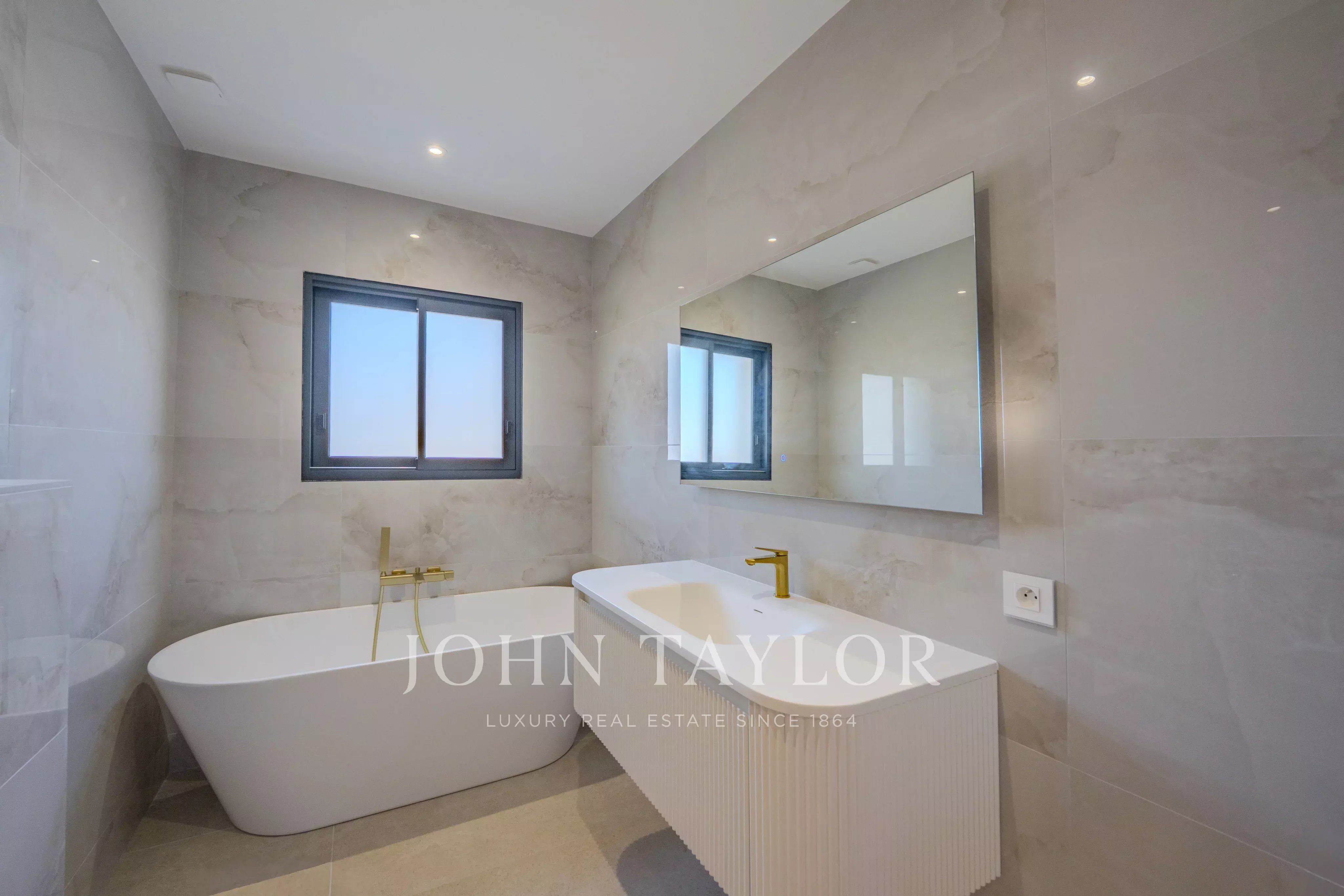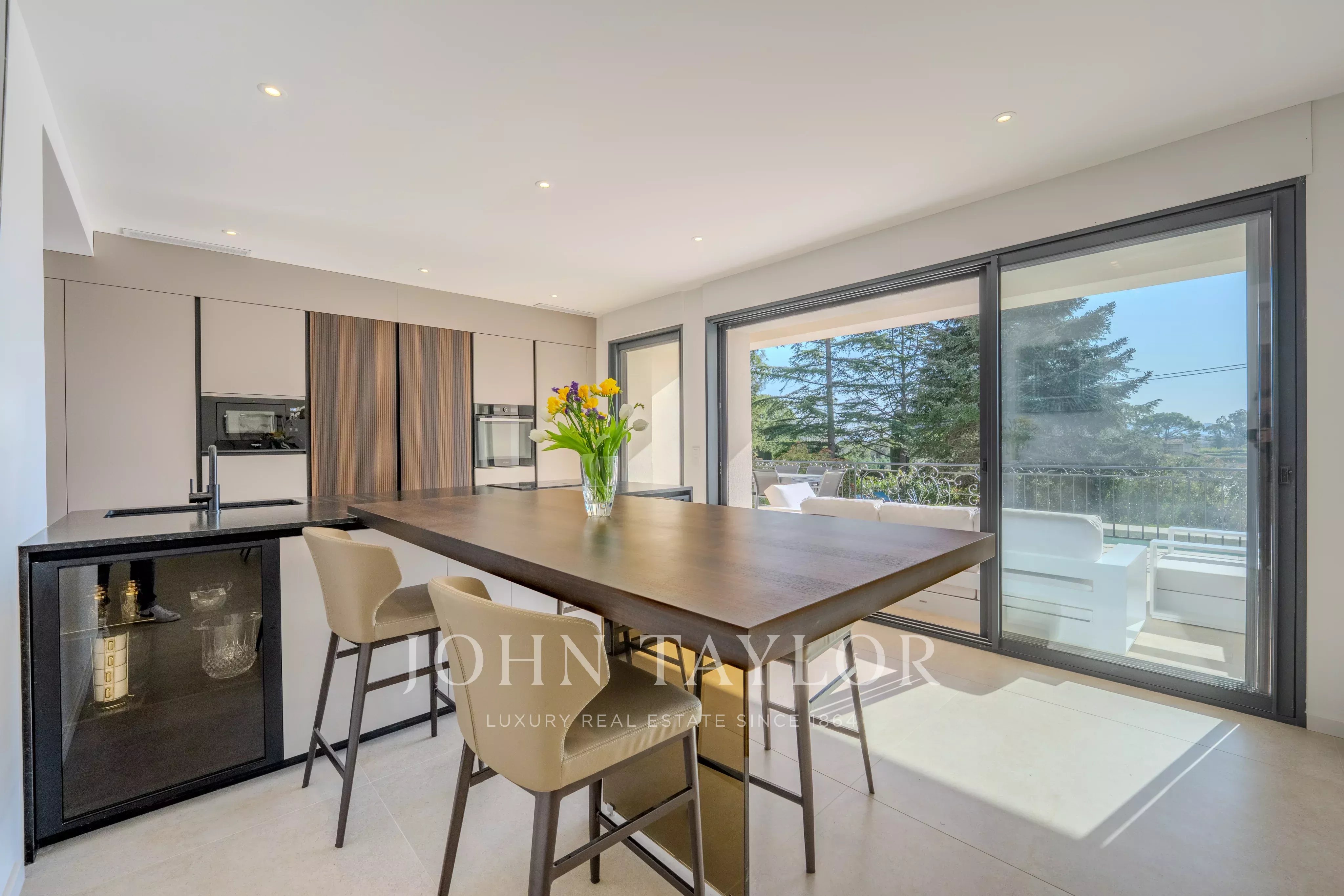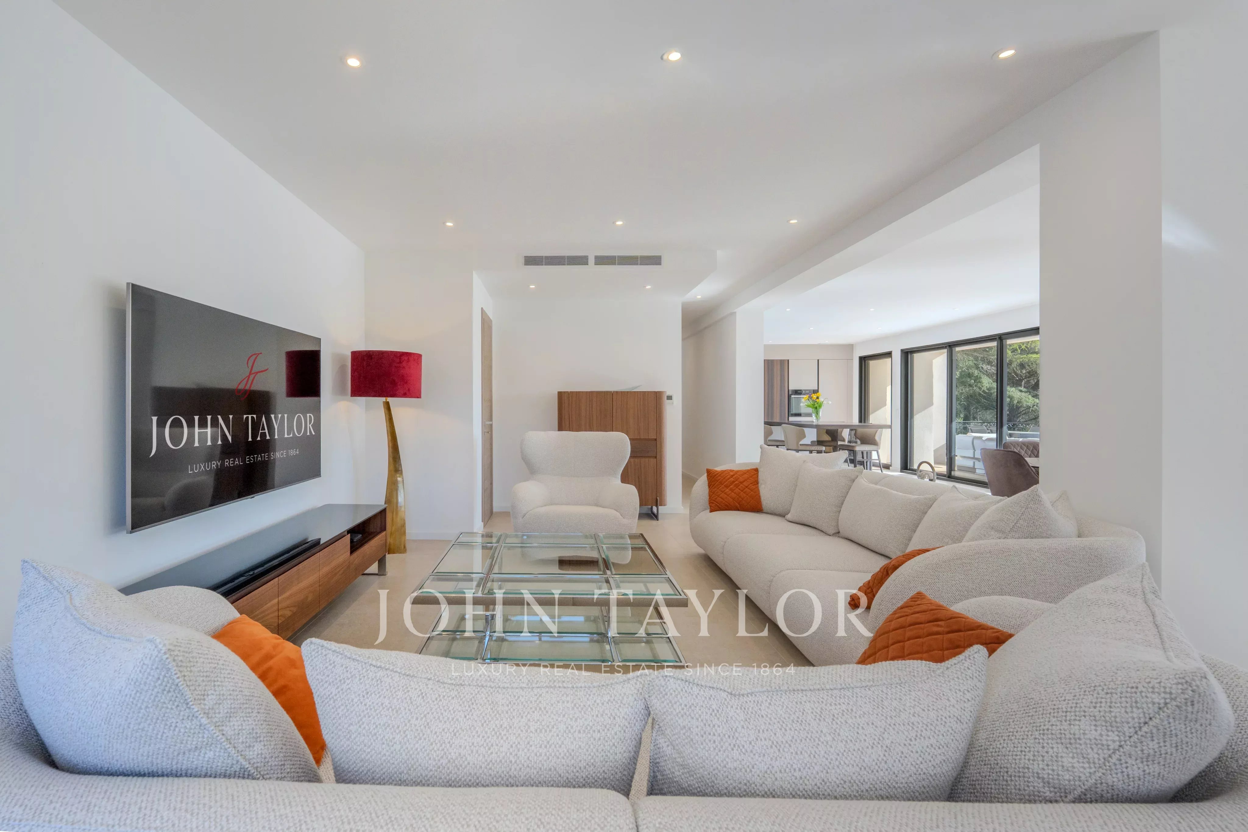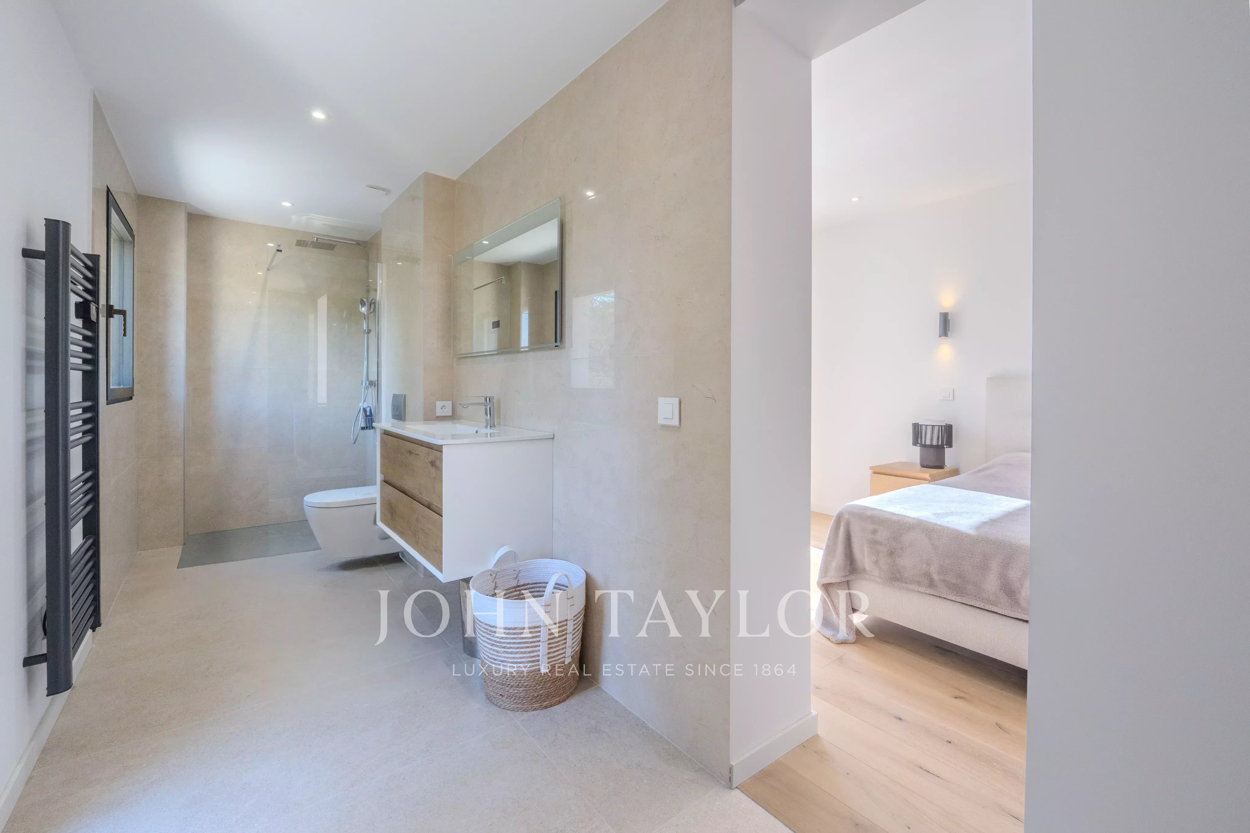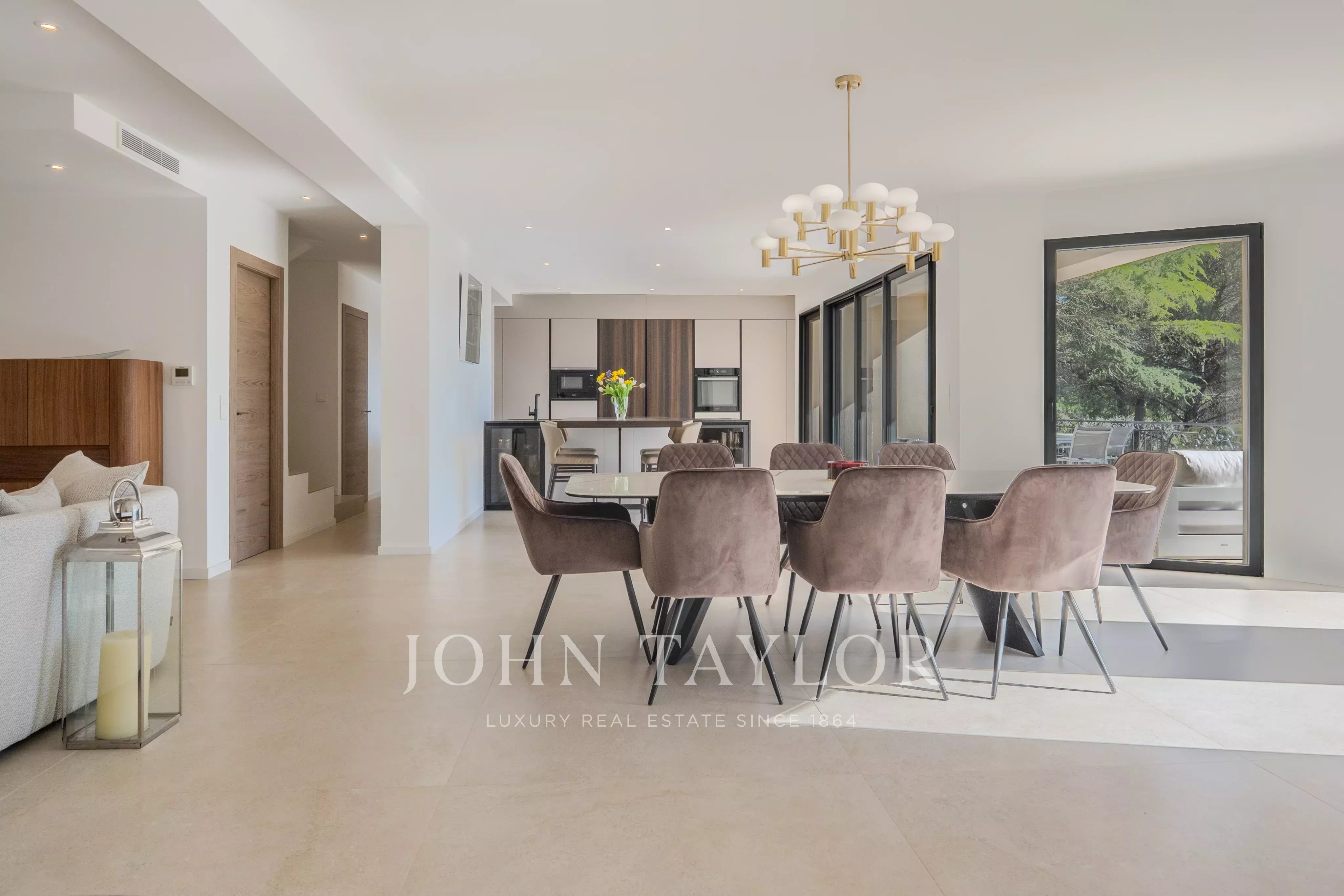 Mit etwa 260 m² Wohnfläche wurde die Villa vollständig renoviert und besticht durch besonders sorgfältige Oberflächen. Die lichtdurchfluteten Empfangsbereiche öffnen sich zu einem großen Wohnzimmer mit einer voll ausgestatteten modernen Küche, die nahtlos zu den Terrassen und dem gestalteten Garten führt.