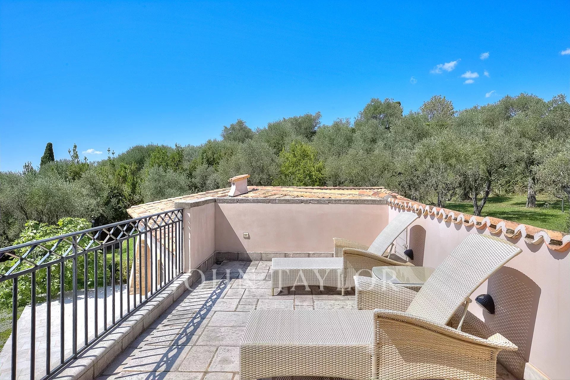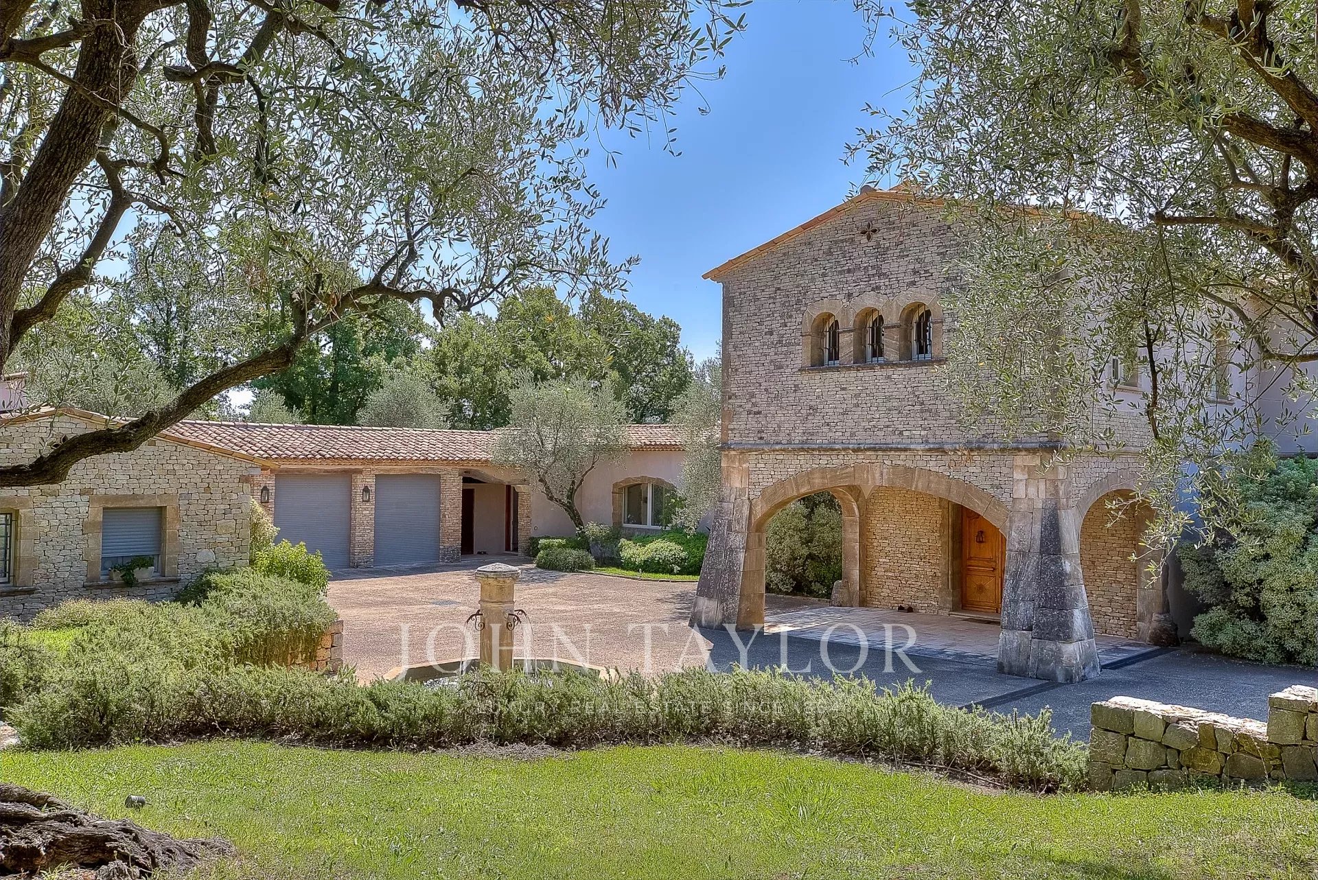 Das 10.000 m² große Landschaftsgrundstück, das von Jean Mus entworfen wurde, besteht aus sanften Restanques, Steinmauern und ist umgeben von über 160 Olivenbäumen.