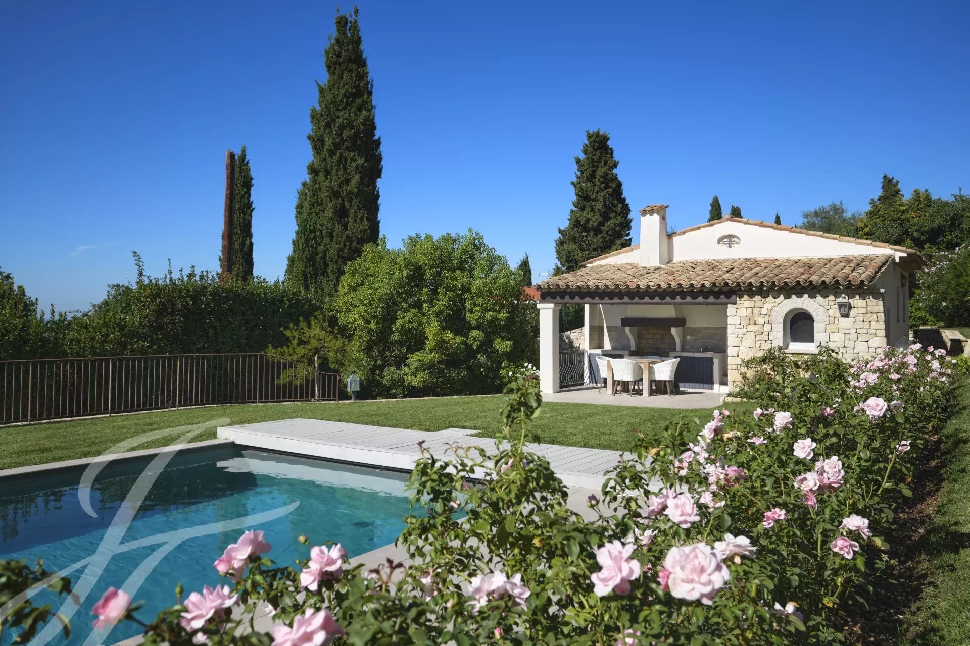 Dieses Anwesen, das außerdem über zwei Garagen und zahlreiche Parkplätze verfügt, liegt nur 20 Minuten vom Flughafen Nizza entfernt und in der Nähe aller Annehmlichkeiten sowie renommierter Golfplätze!