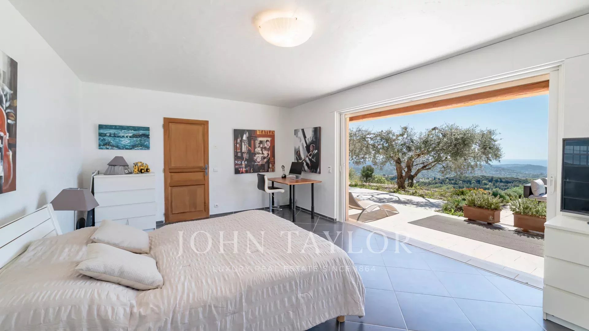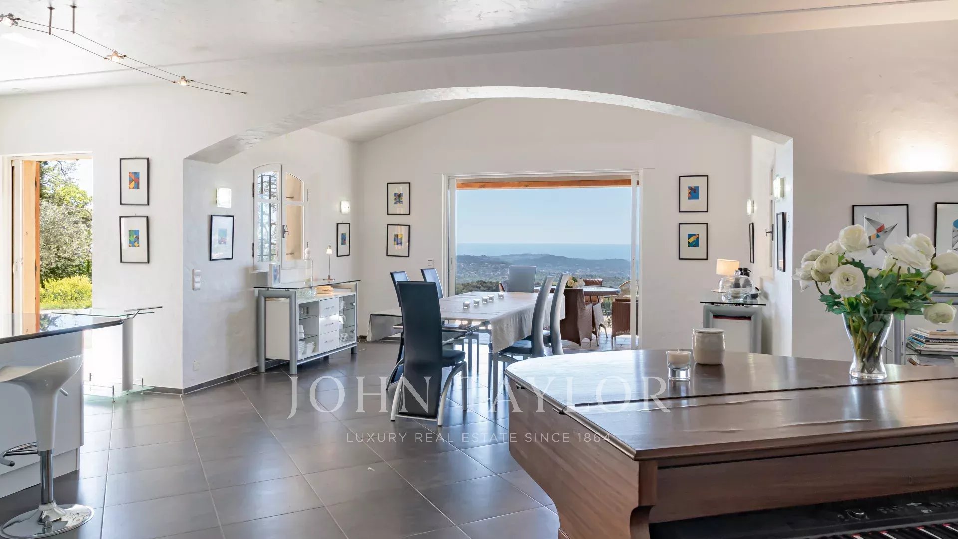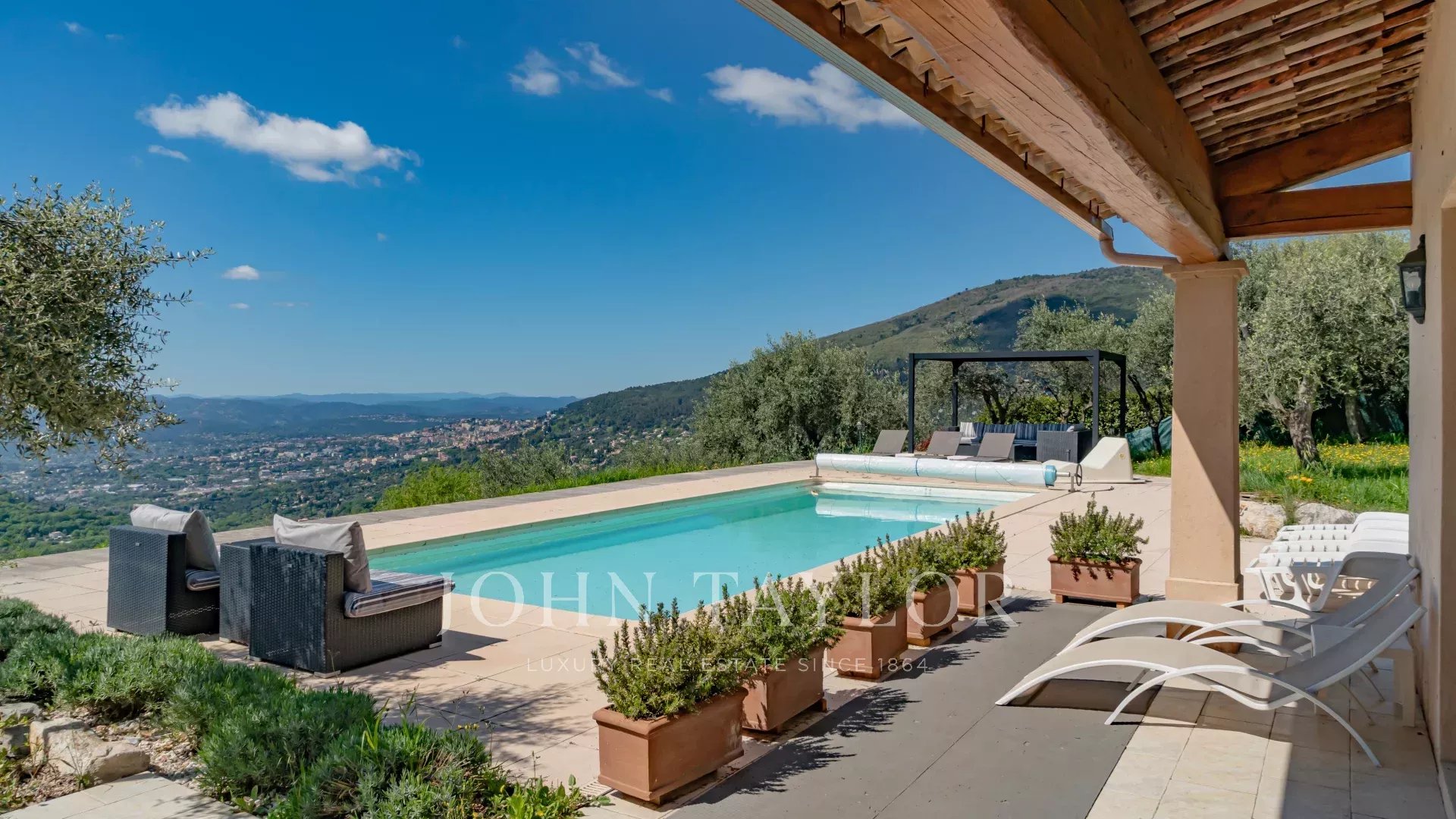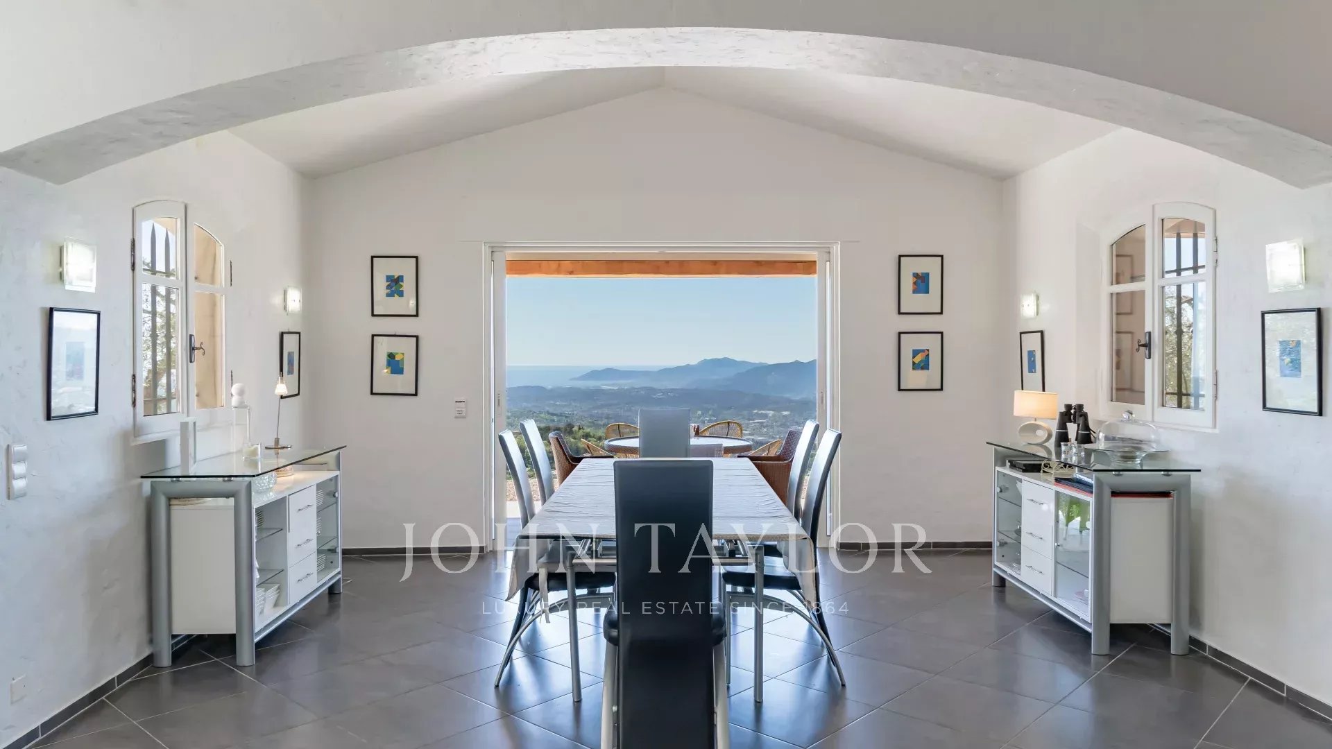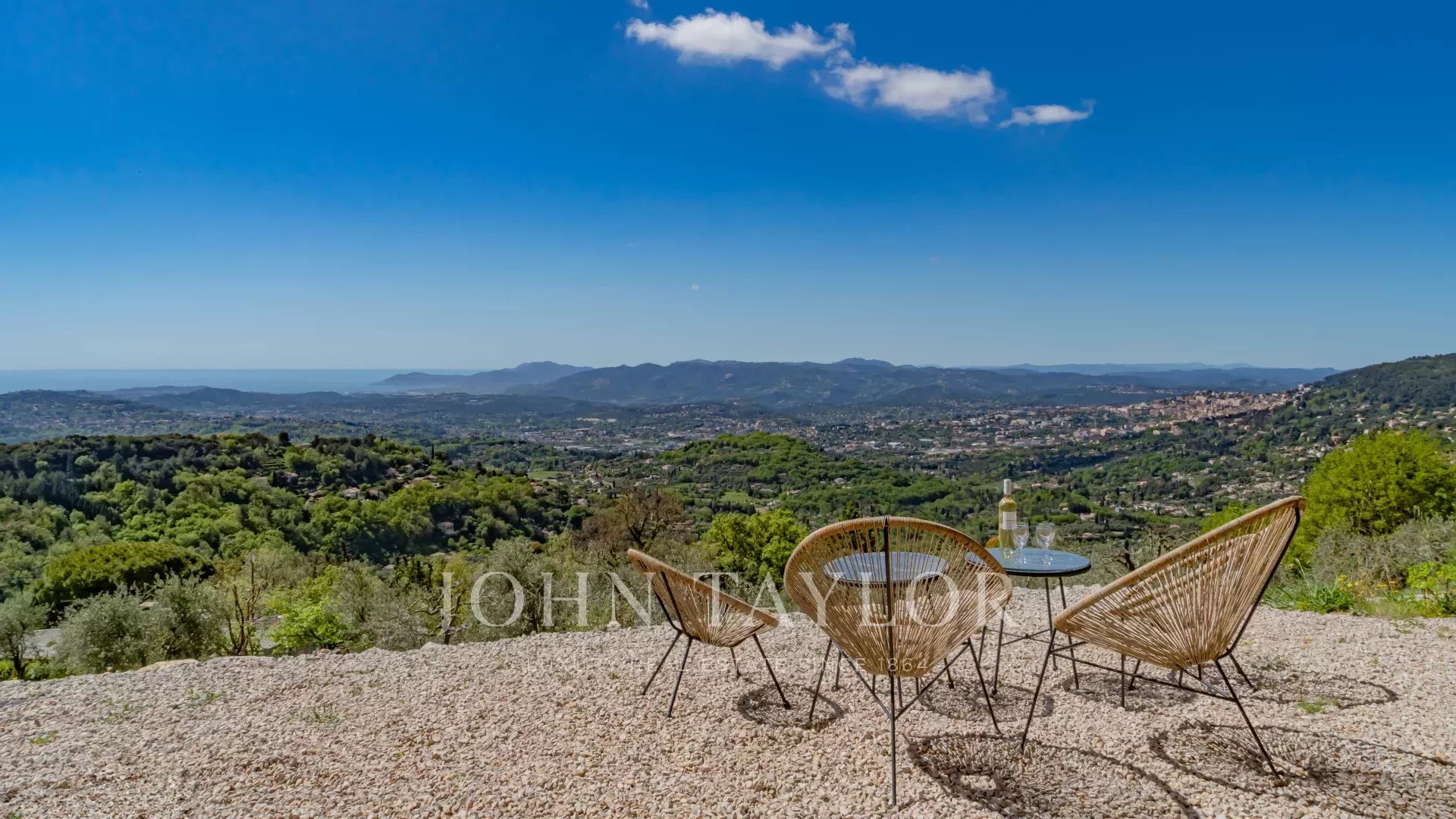 Diese charmante provenzalische Villa mit einer Wohnfläche von ca. 250 m² und modernem Interieur besticht durch ihren atemberaubenden Panoramablick – von den Hügeln des Hinterlandes von Cannes über die Bucht von Mandelieu bis hin zum Cap d’Antibes !