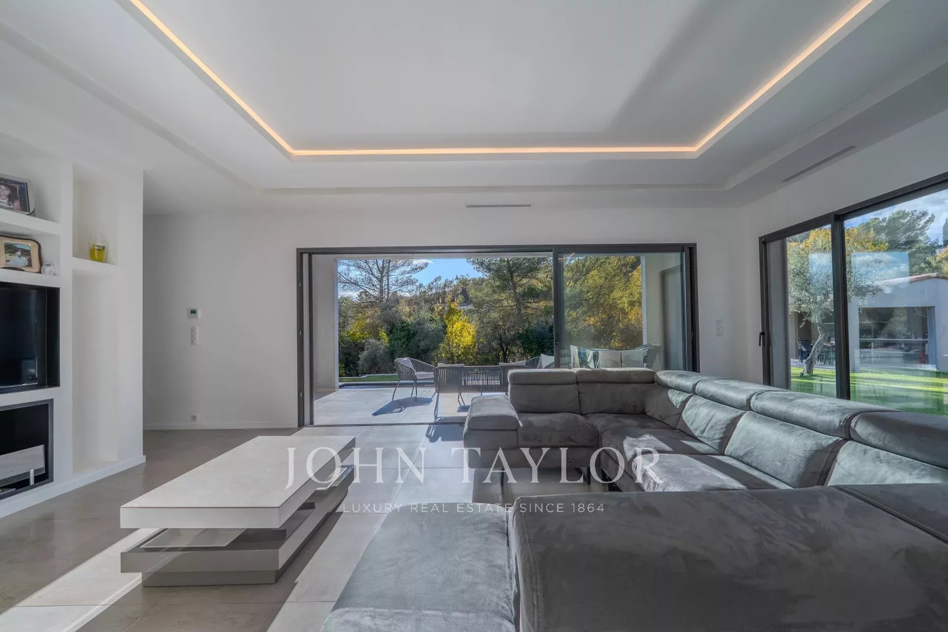 Inmitten einer grünen und friedlichen Umgebung, in einer der begehrtesten Wohngegenden von Le Rouret, verkörpert diese 2019 neu erbaute zeitgenössische Villa die perfekte Verbindung von Eleganz, Modernität und Lebenskunst.