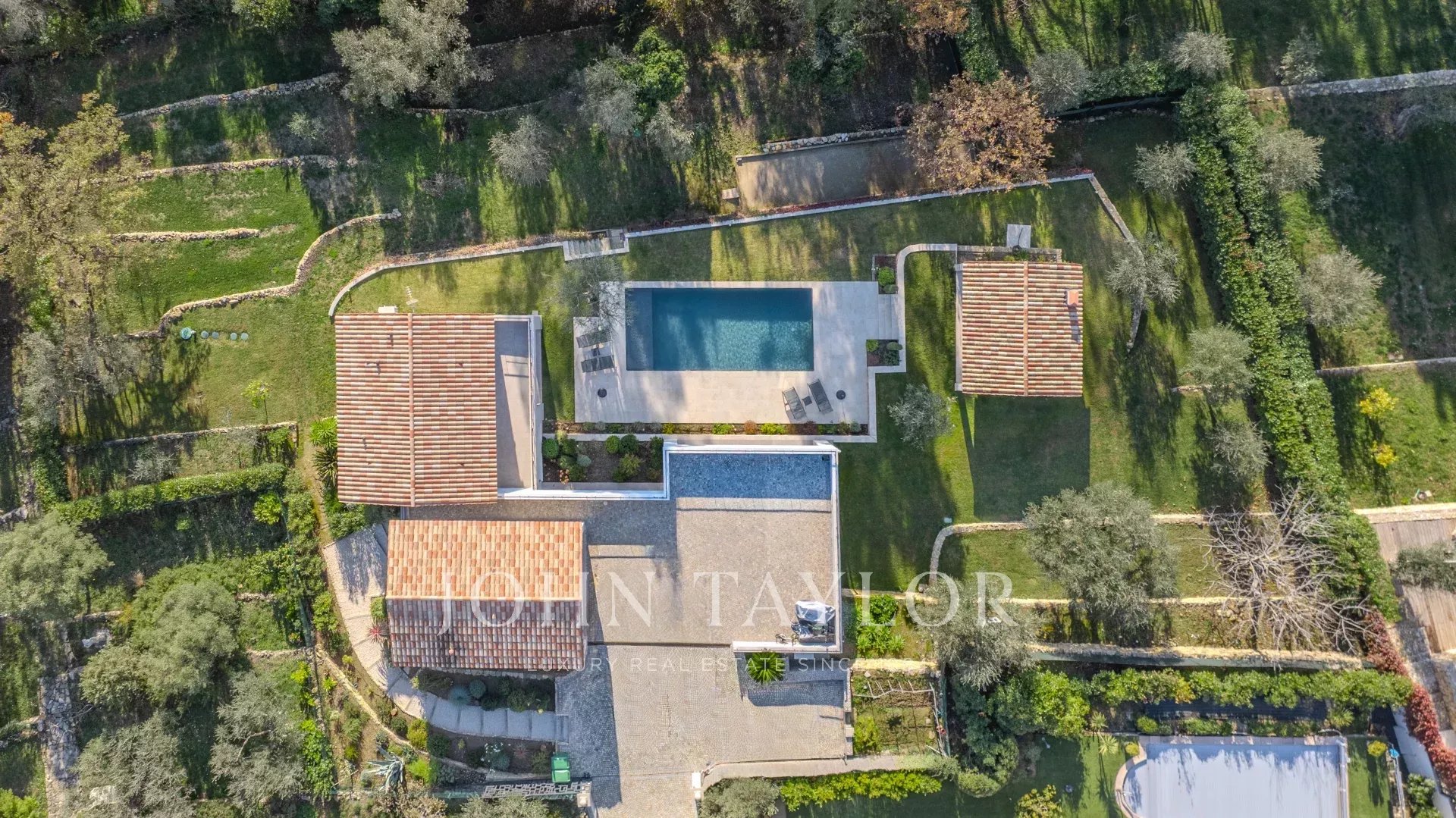 Das Anwesen wurde auf einem 1874 m2 großen, sorgfältig angelegten Restanques-Grundstück errichtet und geht in einen außergewöhnlichen Entspannungsbereich über: ein prächtiger 12x5 m großer Pool, ein geräumiges Poolhaus, eine Garage und zahlreiche Parkplätze vervollständigen diese Immobilie.