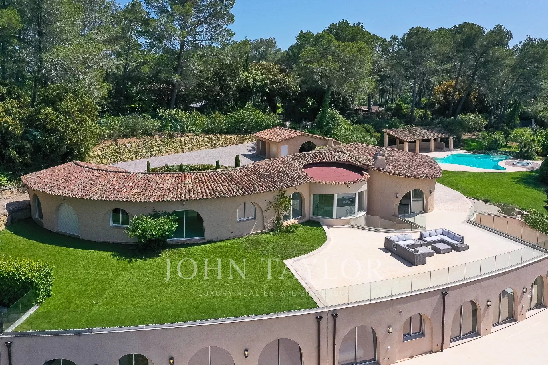 Auf halbem Weg zwischen Mougins und Valbonne, im Wohnviertel Redon, befindet sich ein wunderschönes Anwesen im Couëlle-Stil inmitten eines bewaldeten und landschaftlich gestalteten Parks von ca. 10.300 m² mit Pool, Jacuzzi und Poolhaus.