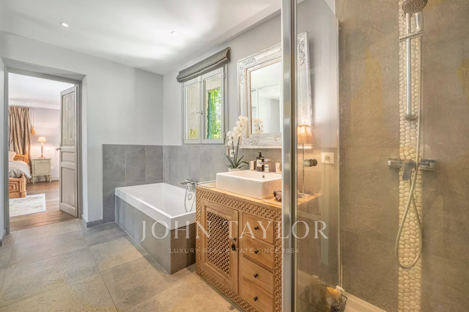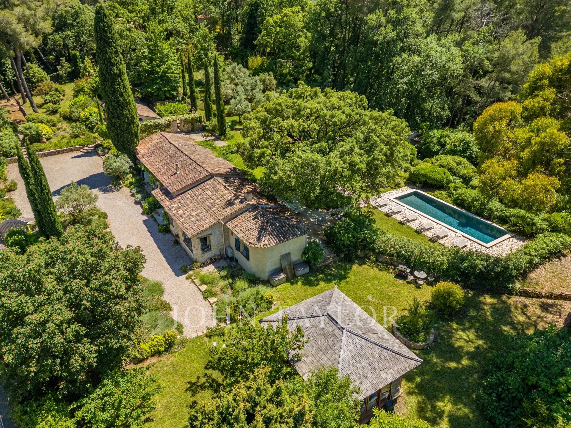 Für die unabhängige Aufnahme von Familie und Freunden ergänzt ein Gästehaus von 61 m² dieses außergewöhnliche Anwesen. Es verfügt über zwei Schlafzimmer und einen privaten beheizten Pool, der einen intimen und exklusiven Raum schafft.