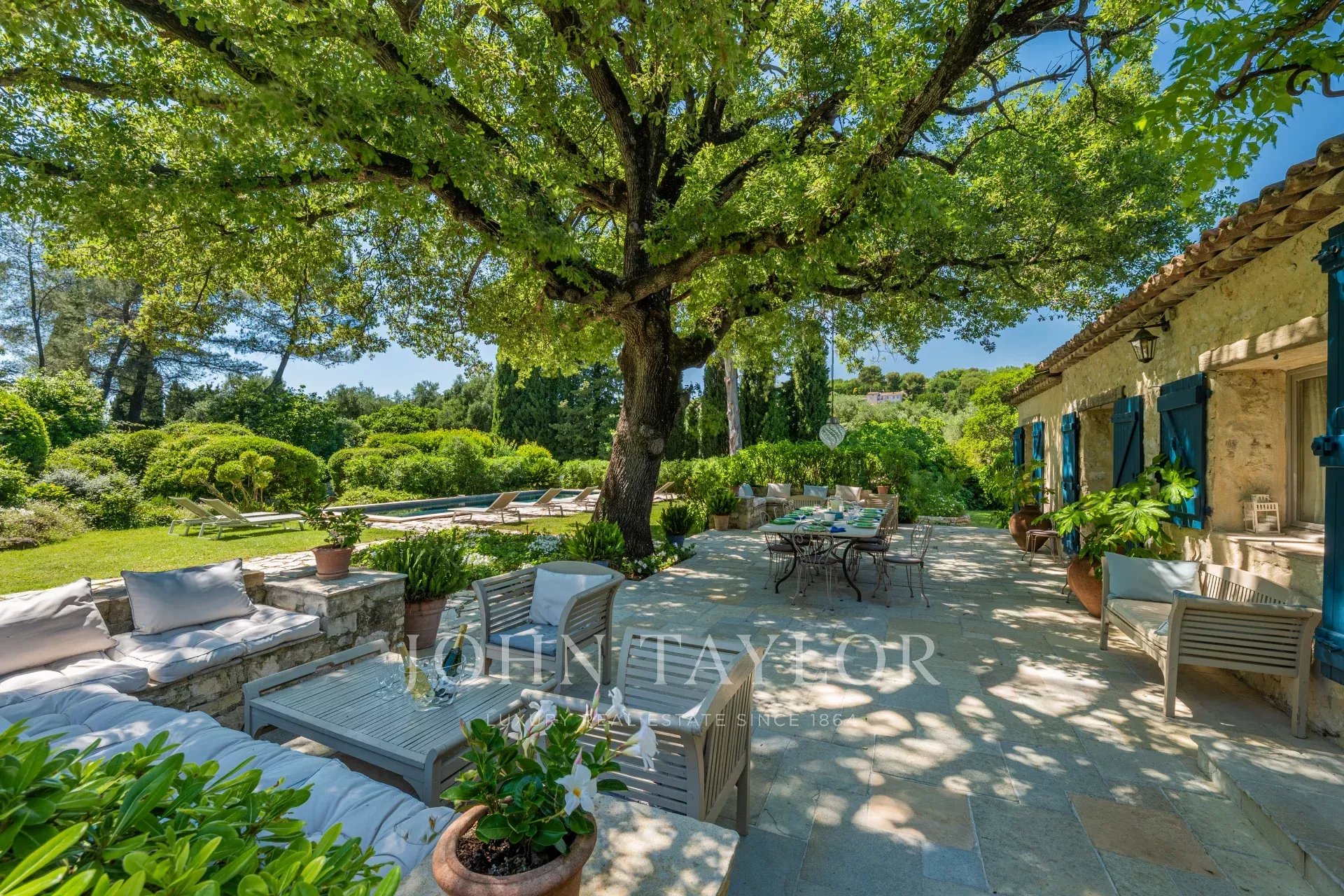 Die Außenanlagen entsprechen diesem idyllischen Rahmen: beheizter Pool für das Haupthaus, Wellnessraum und Bouleplatz, ein Symbol der französischen Lebensart.