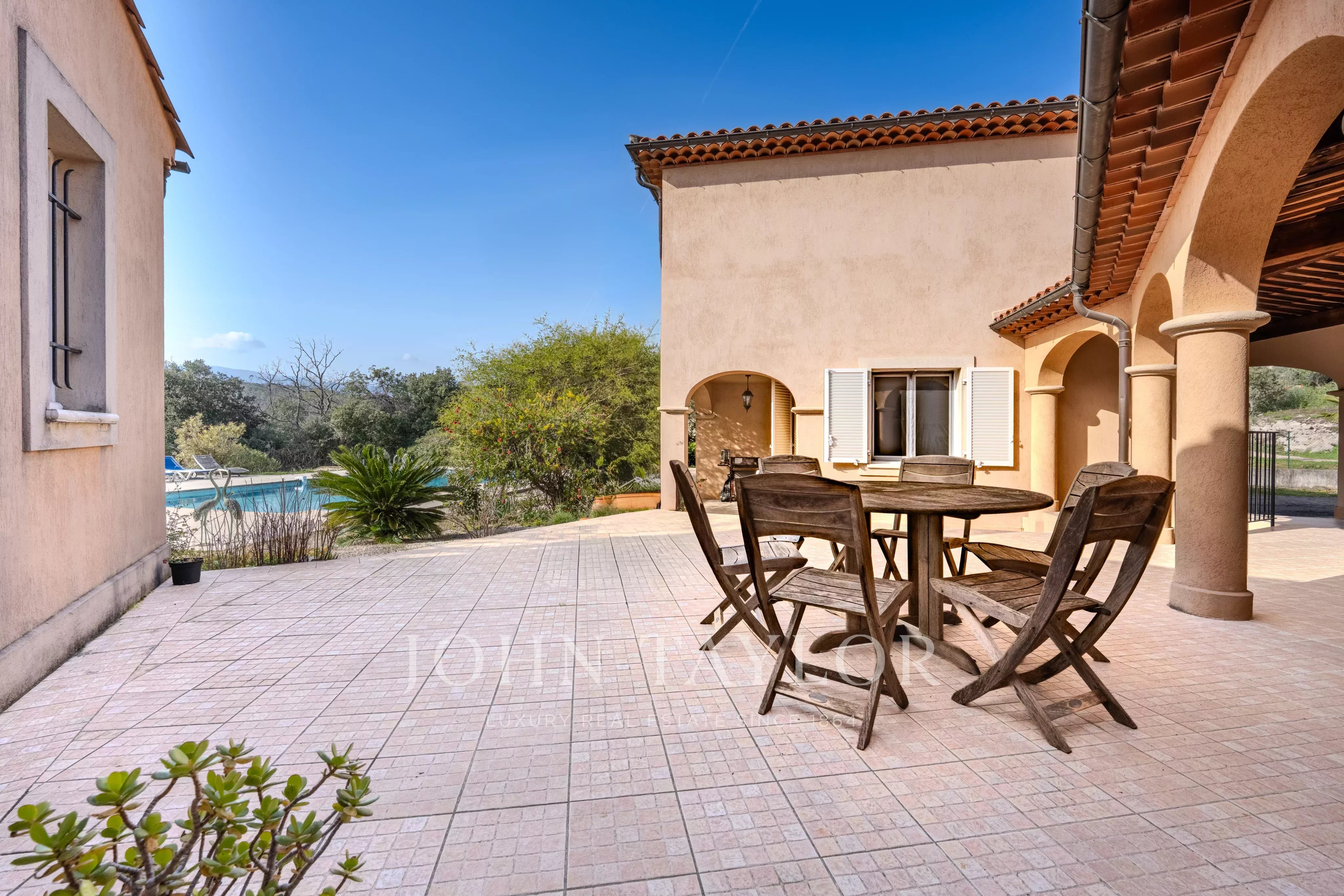 Der Pool fügt sich harmonisch in eine privilegierte natürliche Umgebung ein und garantiert Privatsphäre und Gelassenheit.