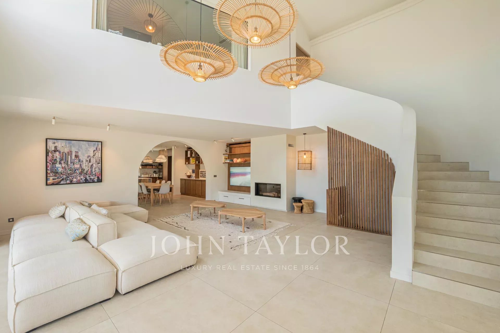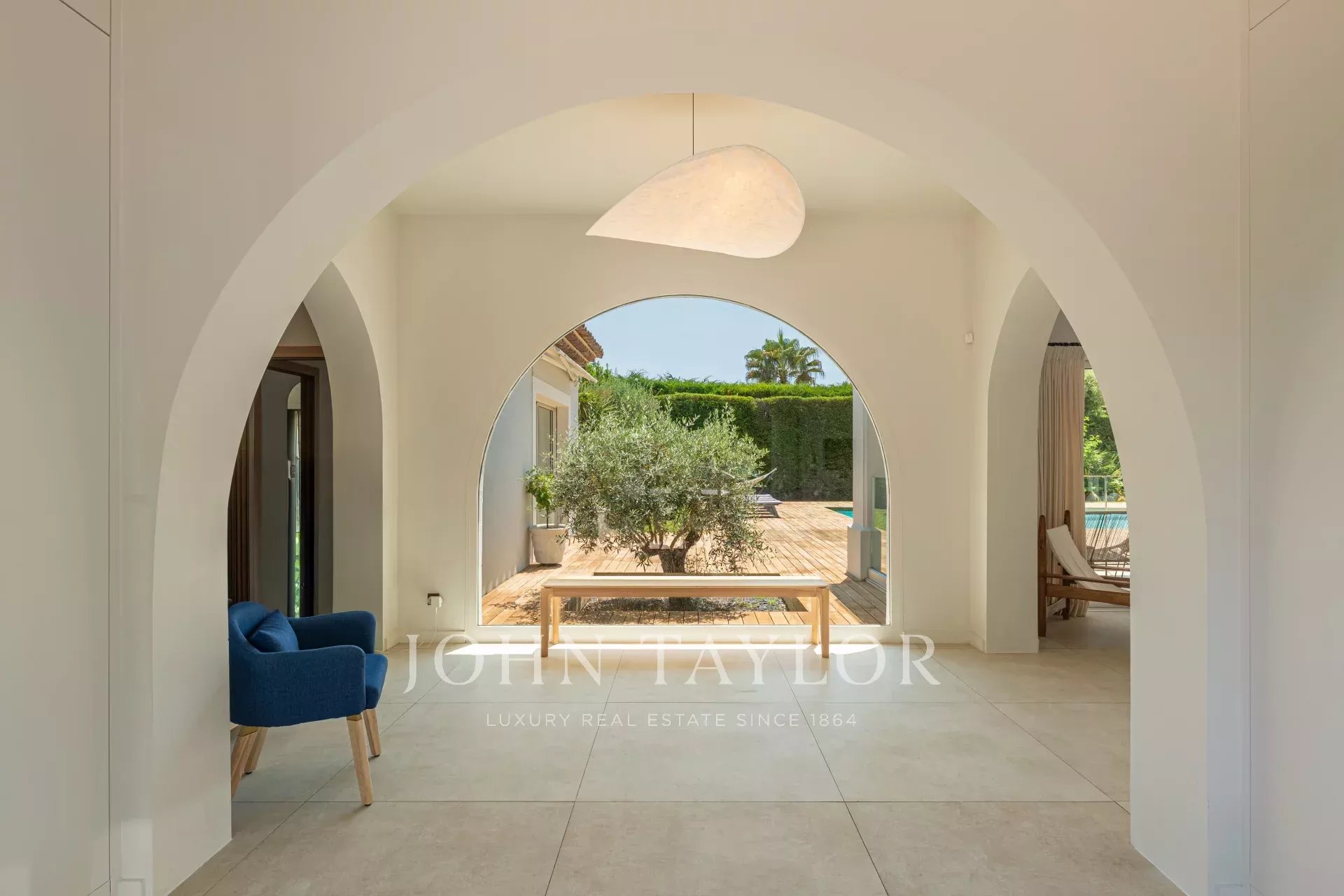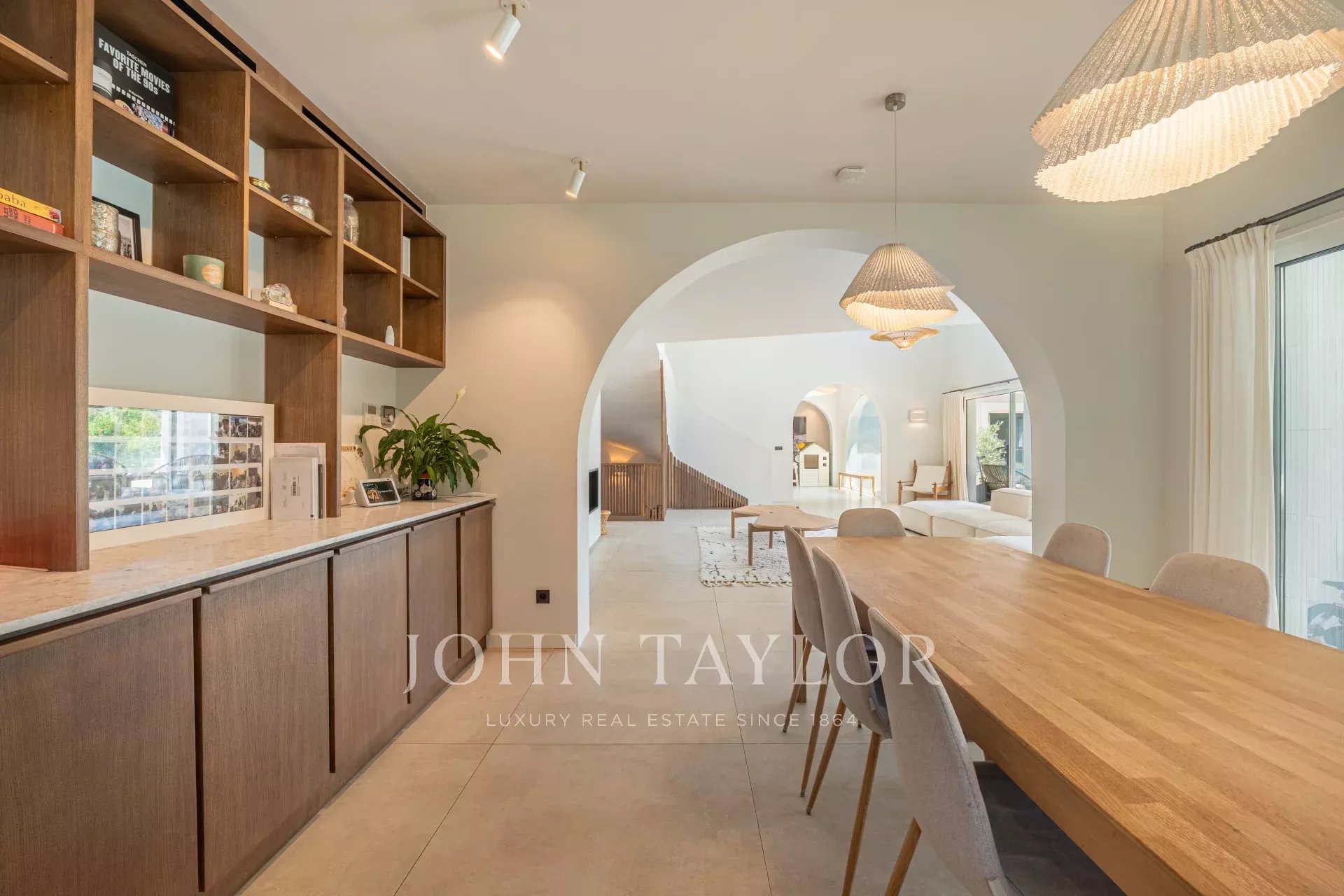 Die Villa liegt auf einem wunderschönen, flachen Grundstück von über 2850 m², das sorgfältig angelegt wurde, und wurde vollständig renoviert. Sie strahlt eine warme Atmosphäre aus, die gleichzeitig elegant und einladend ist.