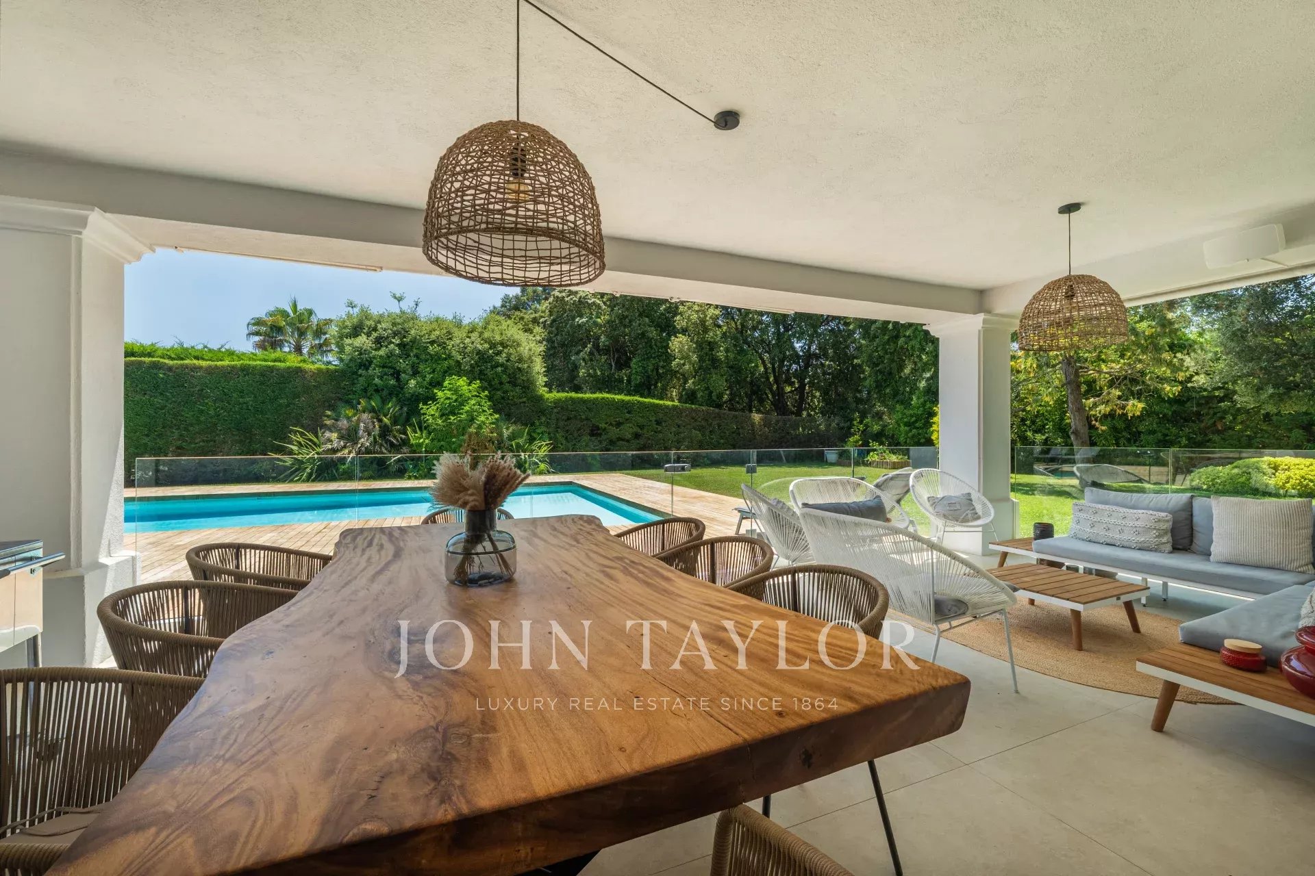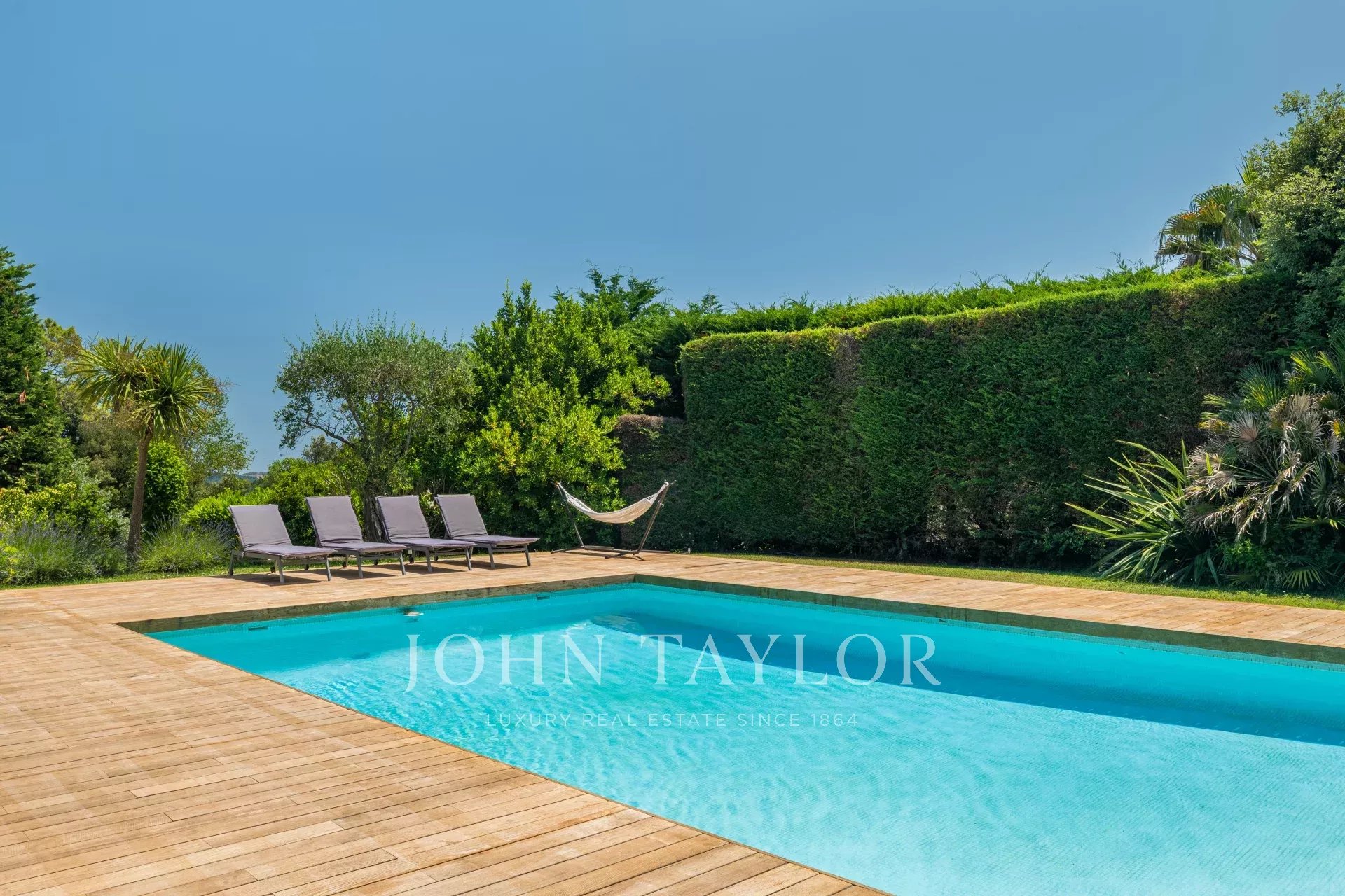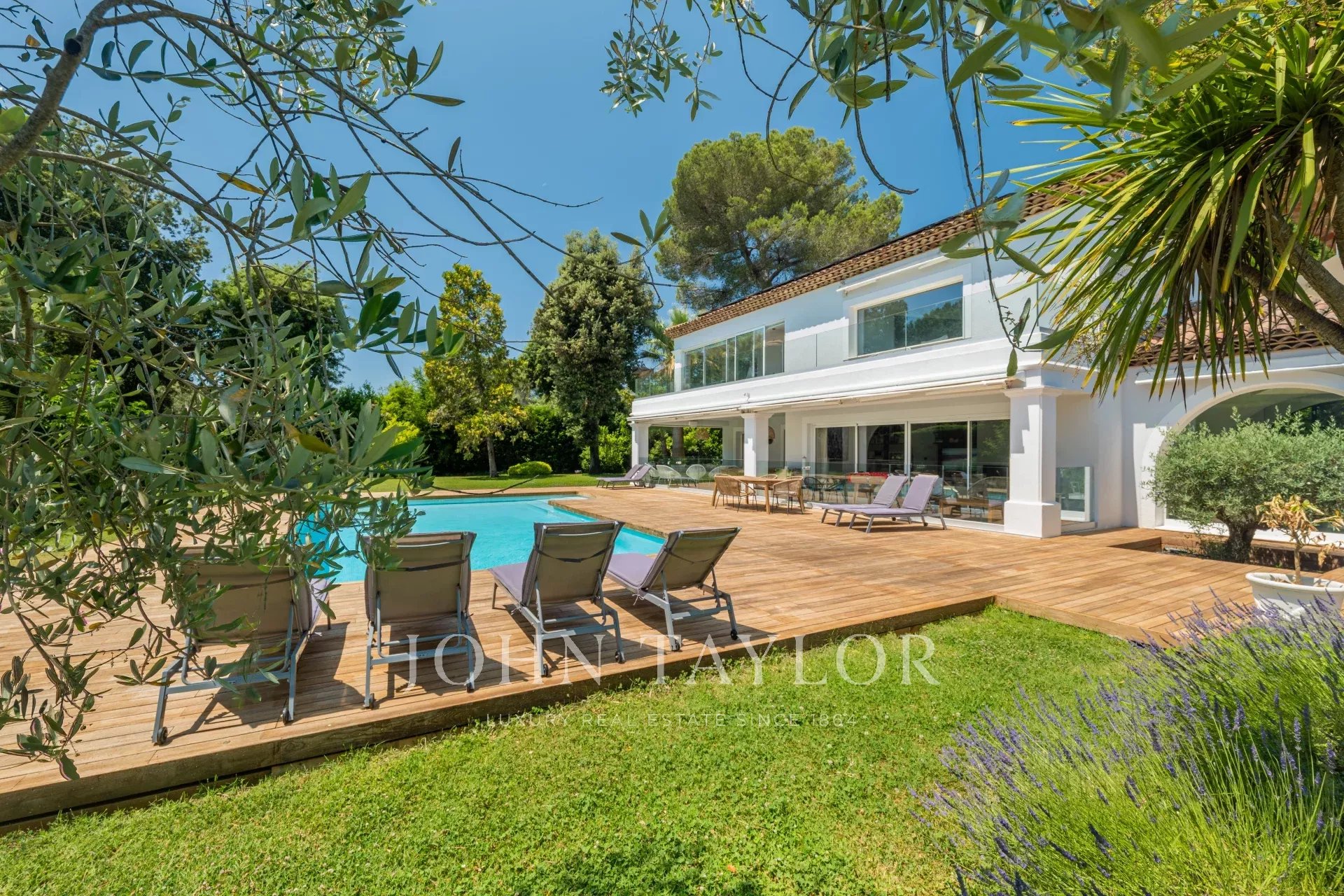 Die Villa liegt auf einem wunderschönen, flachen Grundstück von über 2850 m², das sorgfältig angelegt wurde, und wurde vollständig renoviert. Sie strahlt eine warme Atmosphäre aus, die gleichzeitig elegant und einladend ist.