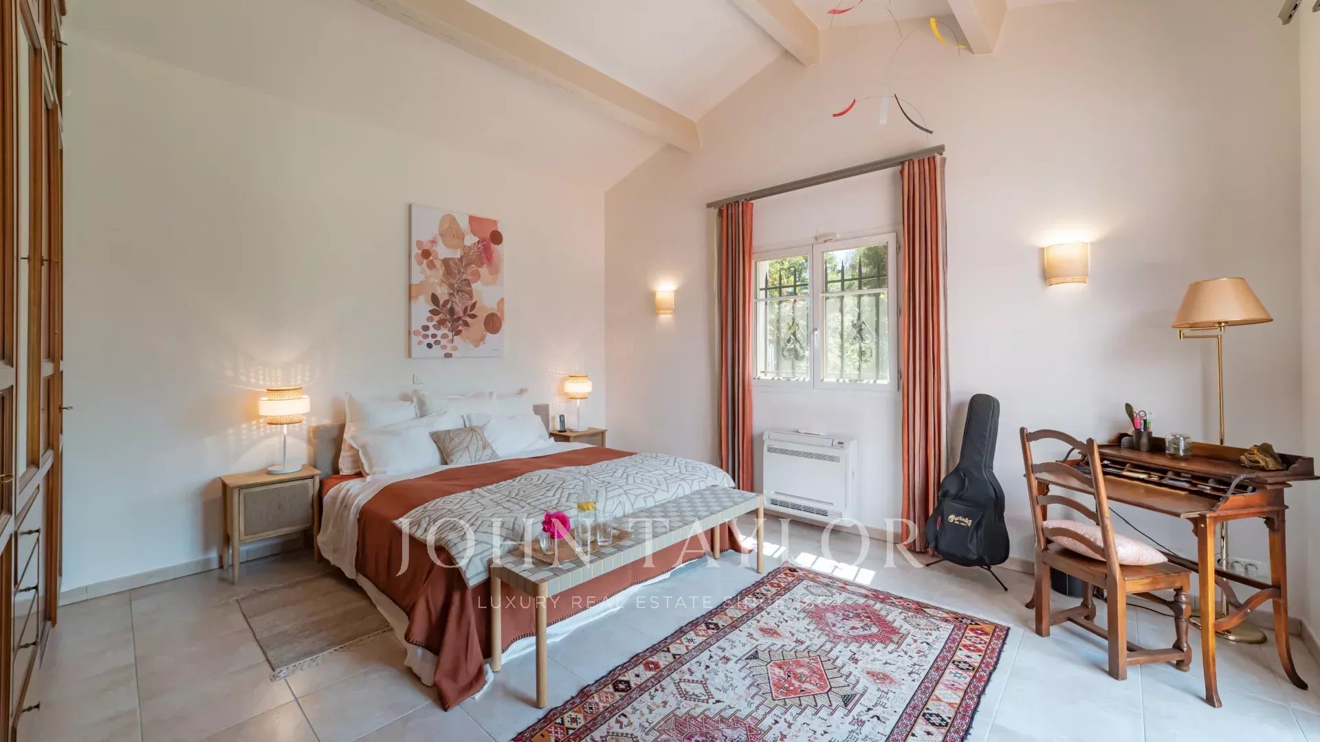 Das Anwesen wurde kürzlich renoviert und neu gestrichen. Im Erdgeschoss bietet die Villa: einen geräumigen und hellen Wohnbereich mit hohen Decken und Blick auf den gepflegten Garten und den Pool, eine voll ausgestattete Küche, Hauswirtschaftsraum, ein Hauptschlafzimmer mit en-suite Badezimmer, ein zweites Schlafzimmer mit Duschbad, ein Büro, Gästetoilette.