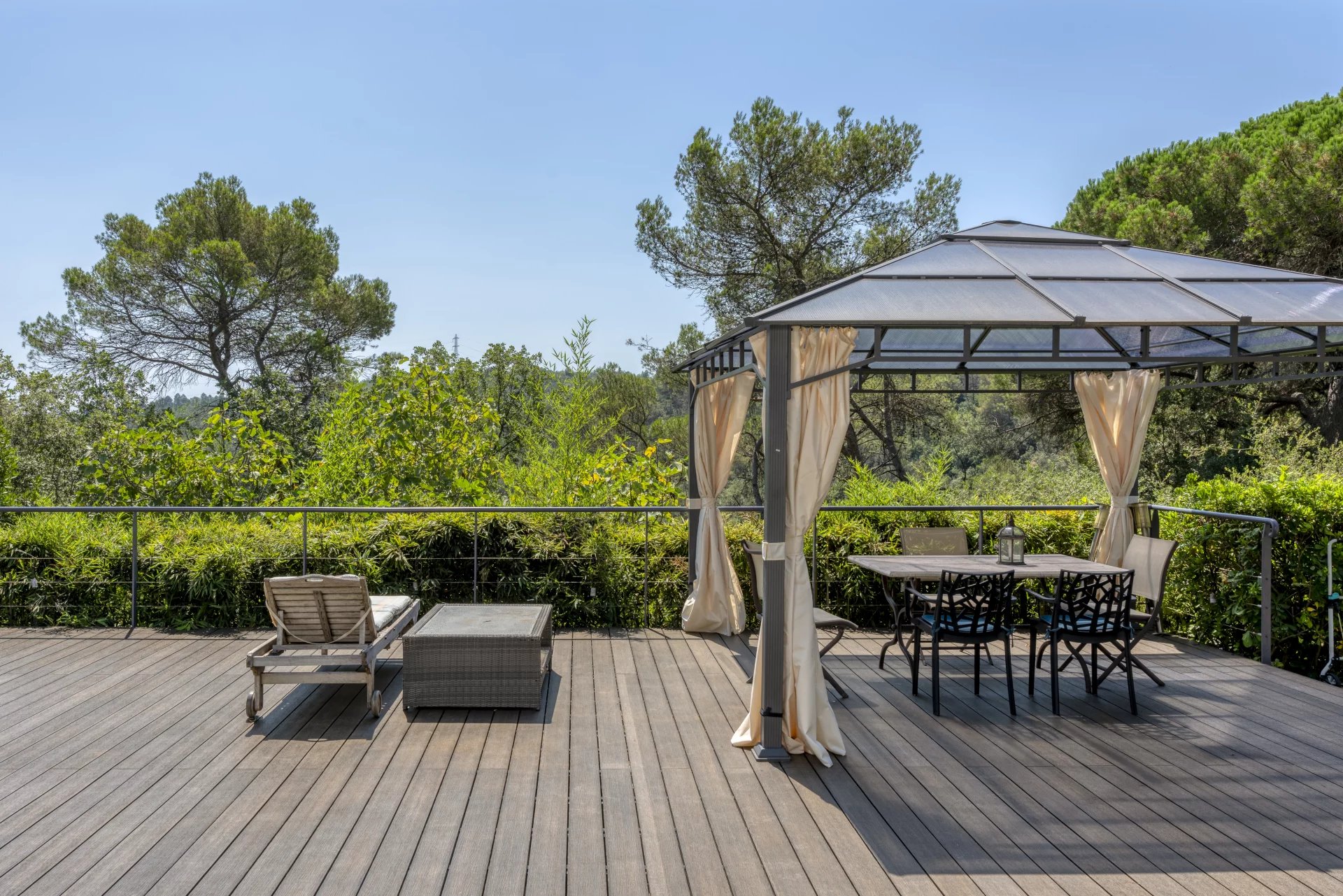 Dieses außergewöhnliche architektonische Meisterwerk von 518 m², das in natürliches Licht getaucht ist, liegt nur wenige Gehminuten von Valbonne entfernt und bietet einen atemberaubenden Blick auf den umliegenden Wald in völliger Ruhe. Das Anwesen verfügt über fünf geräumige Schlafzimmer im Haupthaus und ein zusätzliches, unabhängiges Apartment mit einem Schlafzimmer, das sich perfekt für Gäste oder die Großfamilie eignet.