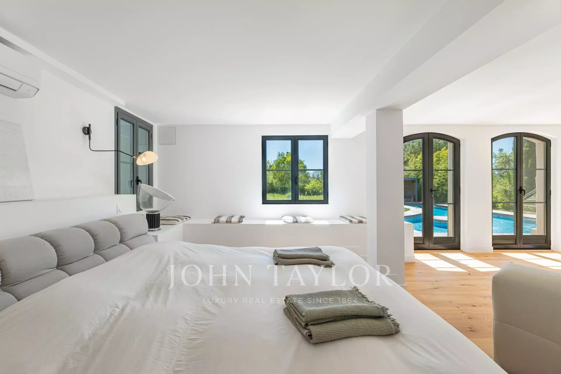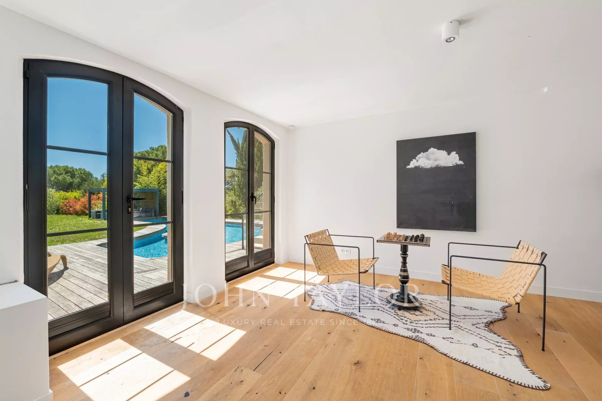 Die Immobilie ist zudem von prestigeträchtigen Golfplätzen umgeben und liegt etwa 30 Minuten von Cannes und dem Flughafen Nizza entfernt, was Ruhe, Komfort und hervorragende Erreichbarkeit vereint!