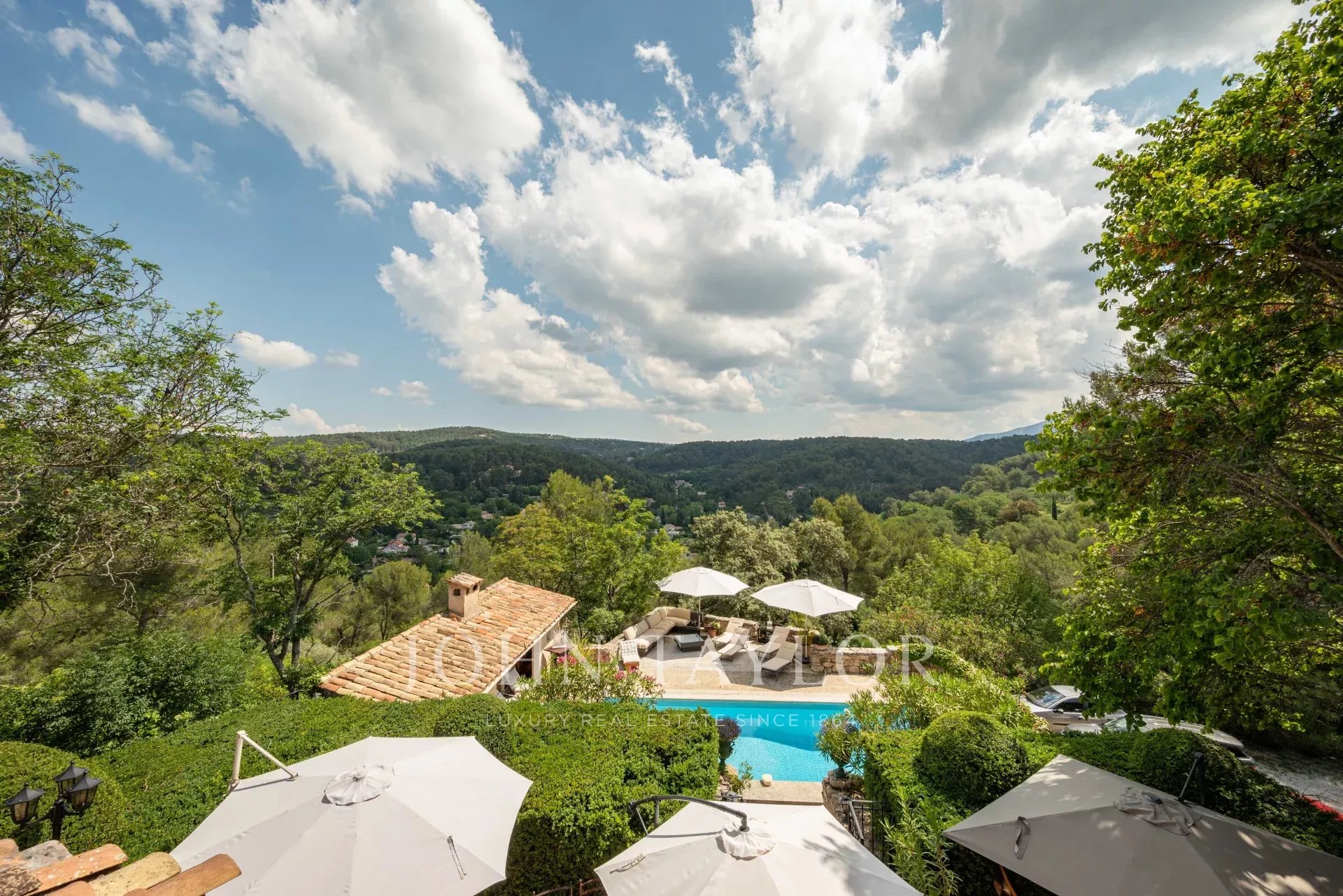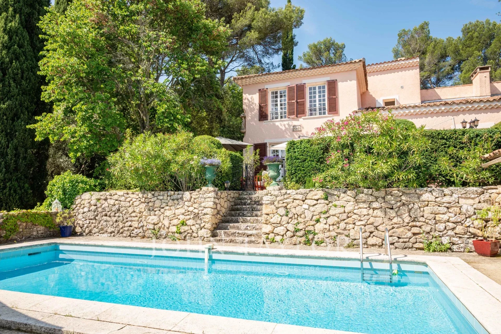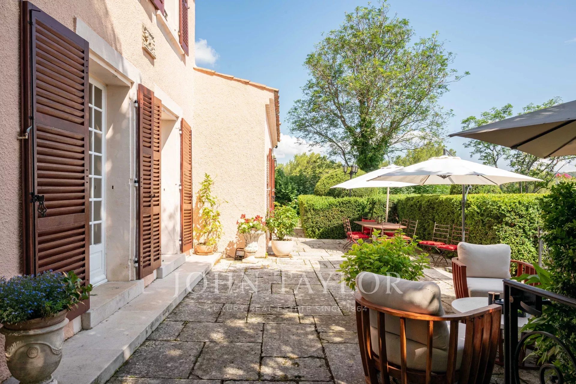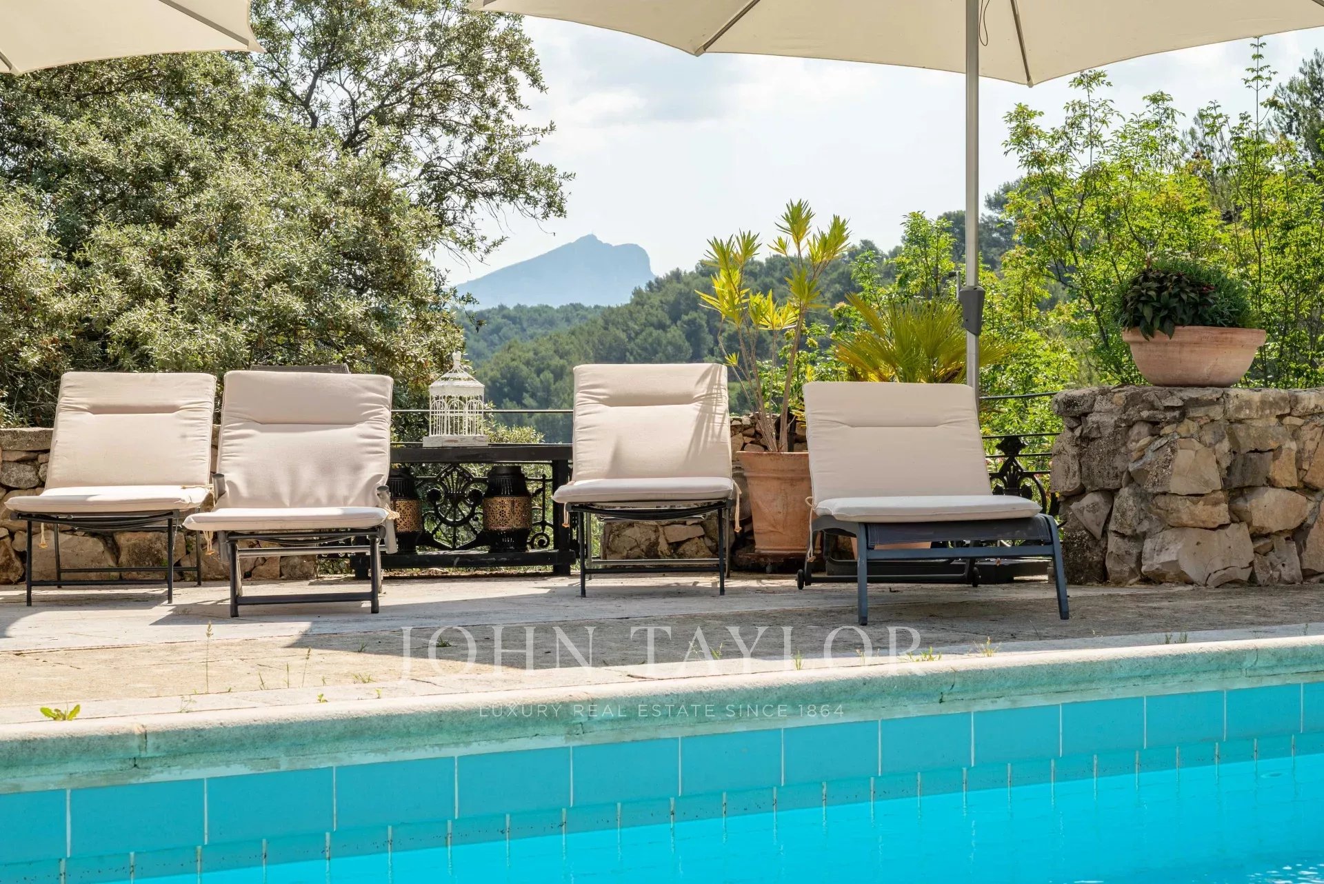 Nur 10 Minuten vom Zentrum von Aix-en-Provence entfernt liegt dieses wunderschöne Landhaus aus dem XIXᵉ Jahrhundert mit einer Fläche von ca. 302 m² und einem Gästehaus von 100 m² inmitten eines 1,3 Hektar großen, baumbestandenen Grundstücks mit Panoramablick auf den Berg Sainte-Victoire.