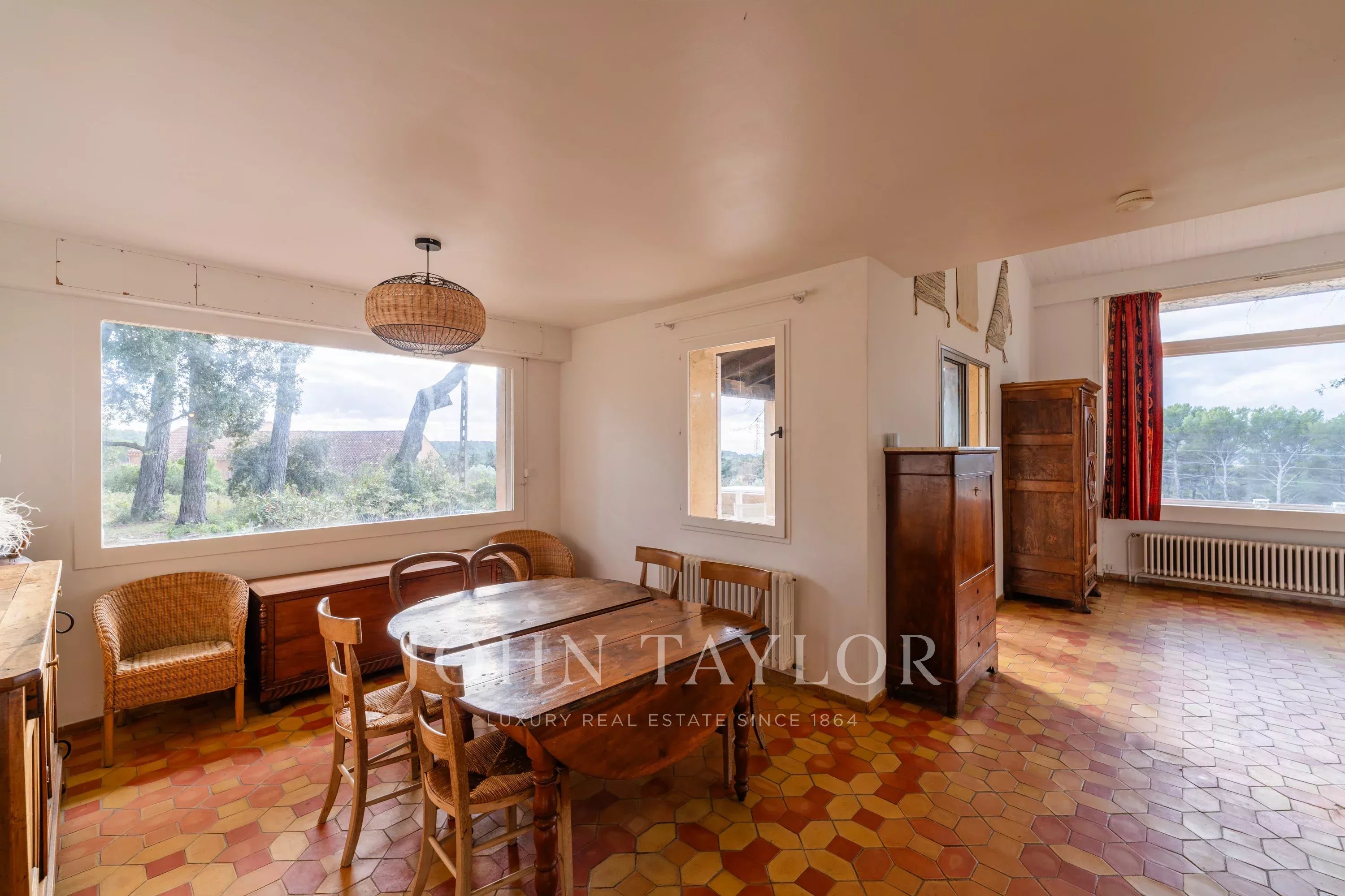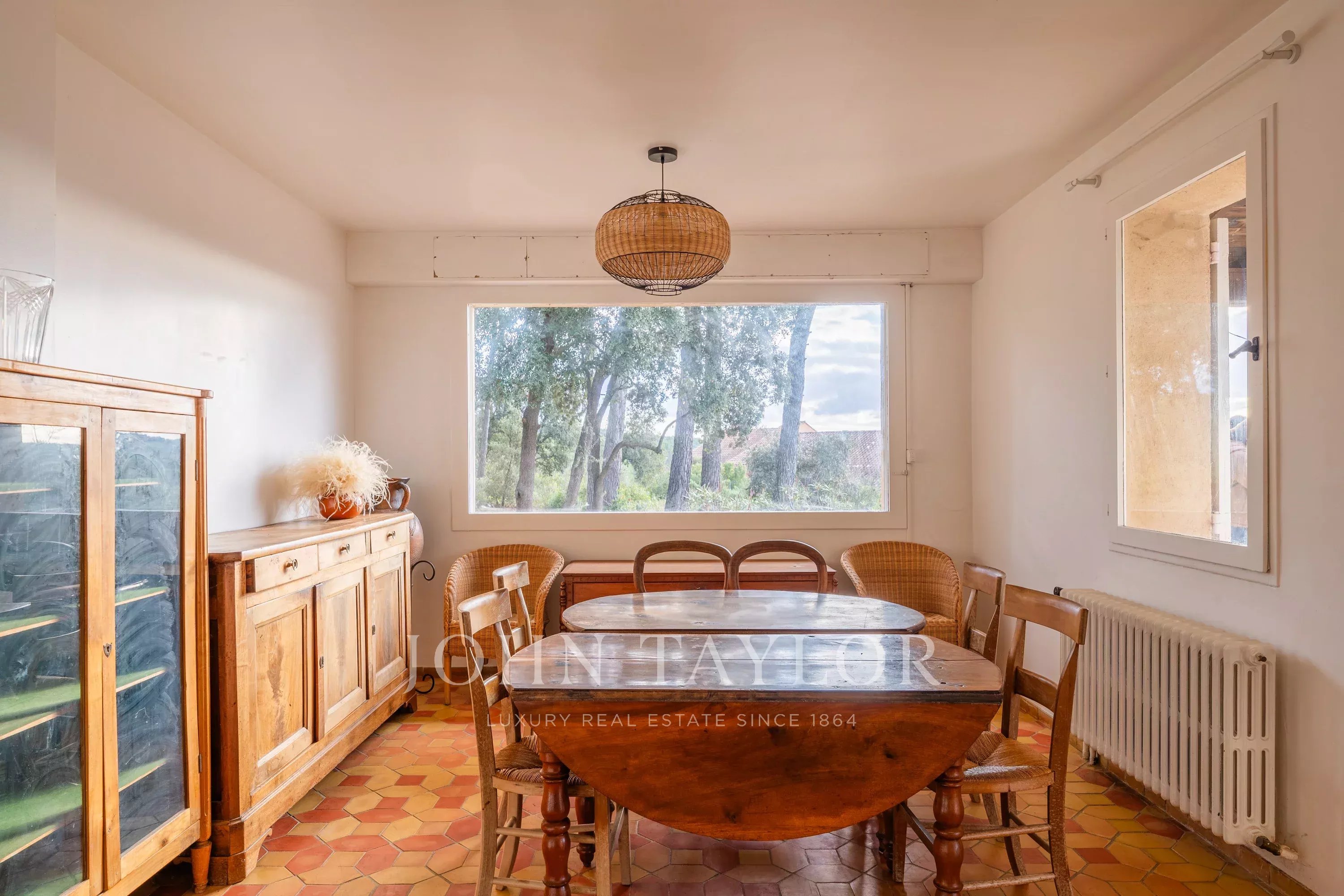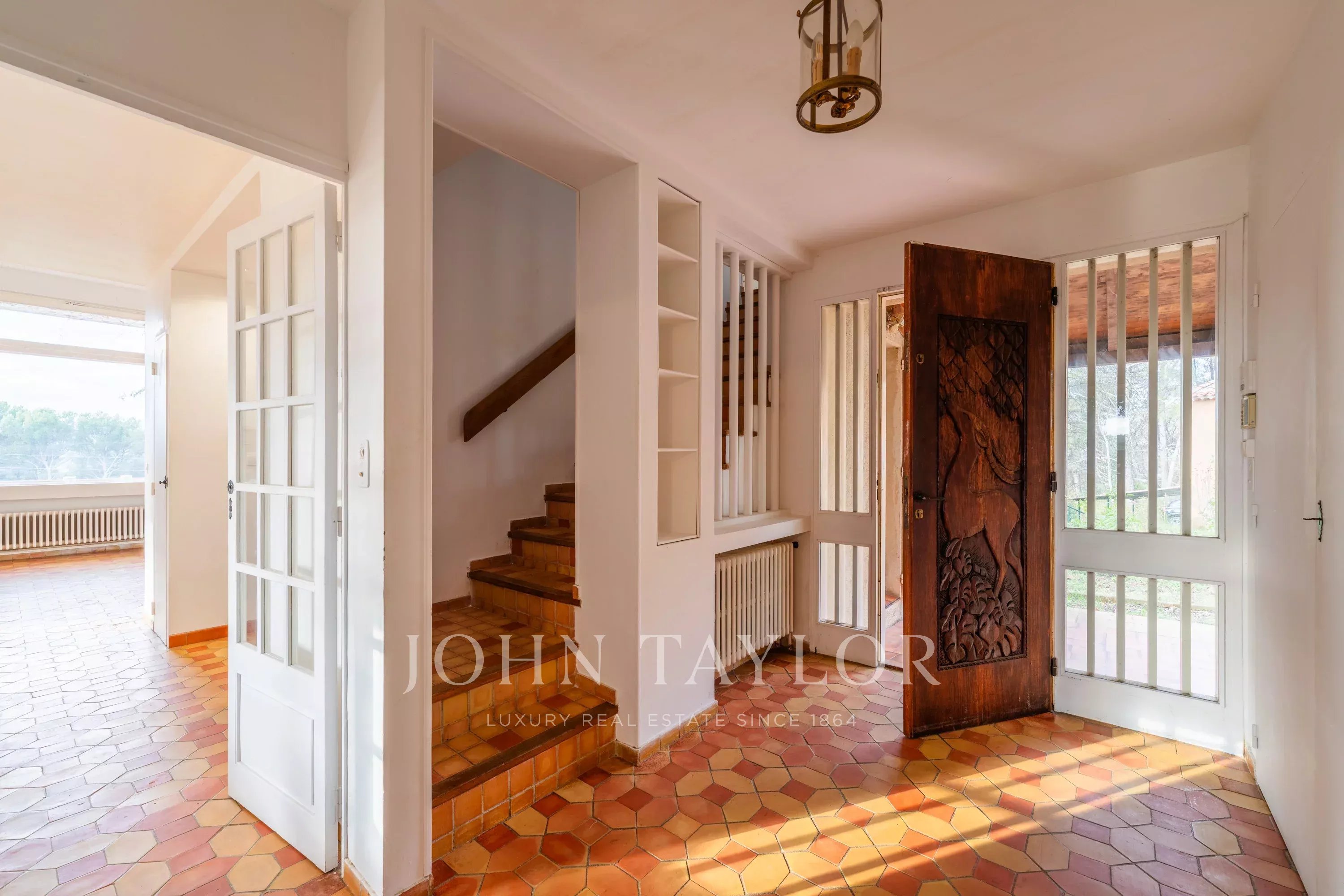 Ihre Prestige-Immobilienagentur John Taylor freut sich, Ihnen ein Anwesen zum Verkauf anbieten zu können, das in dem sehr gefragten Viertel Les Pinchinats in einer außergewöhnlichen natürlichen Umgebung liegt. Es befindet sich auf einem 6.400 m² großen, eingezäunten Grundstück mit Pinien und Eichen und bietet absolute Ruhe und Lebensqualität, nur wenige Minuten vom historischen Zentrum von Aix-en-Provence entfernt.