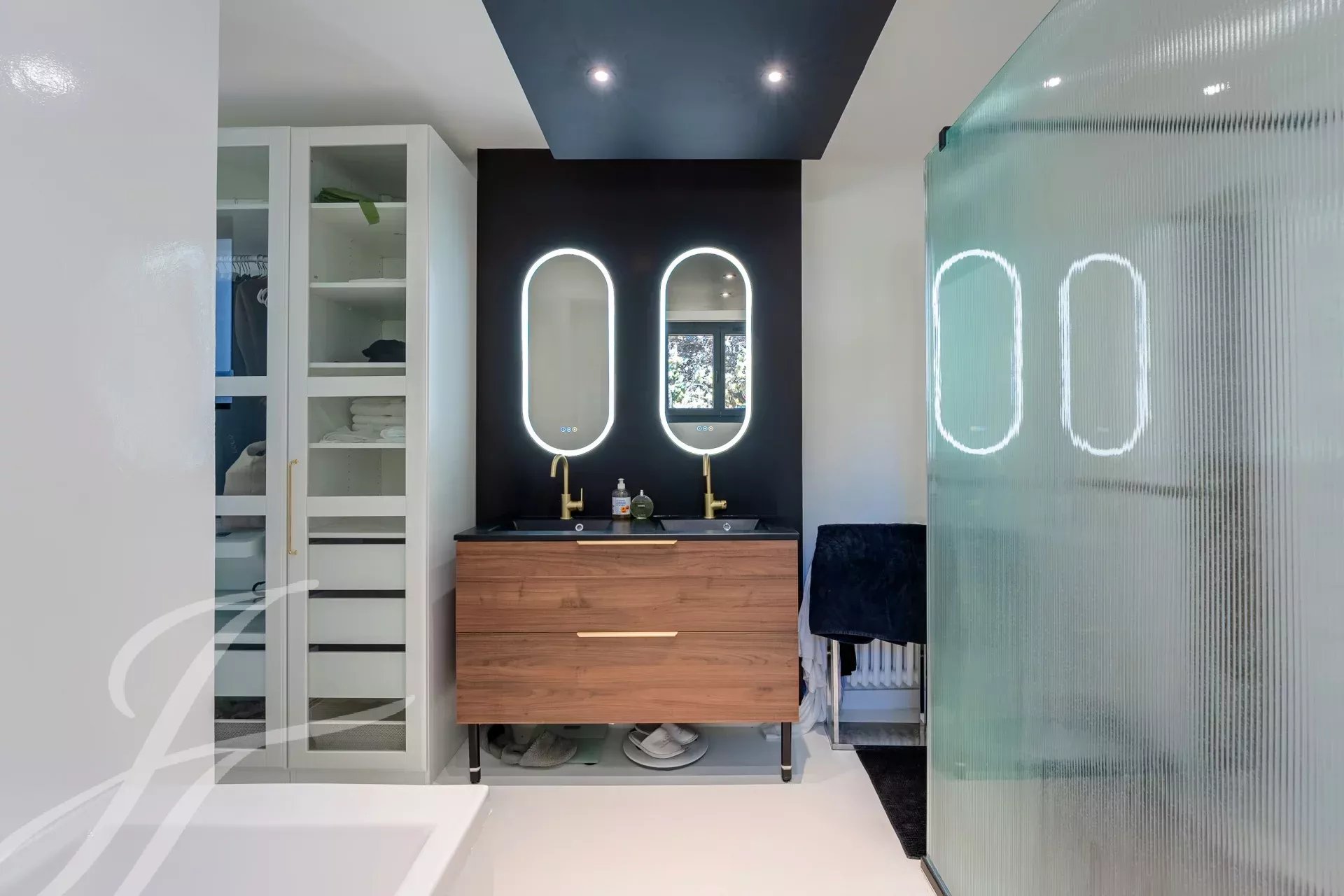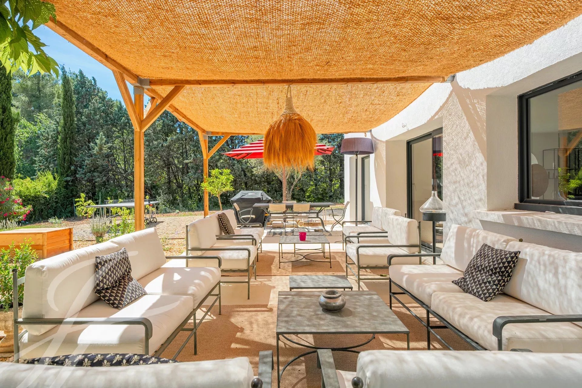 Nur 4 km vom Zentrum Aix-en-Provence entfernt, in einer sicheren und ruhigen Residenz, bietet dieses vollständig renovierte Haus mit ca. 270 m² ein komfortables und begehrtes Wohnumfeld.