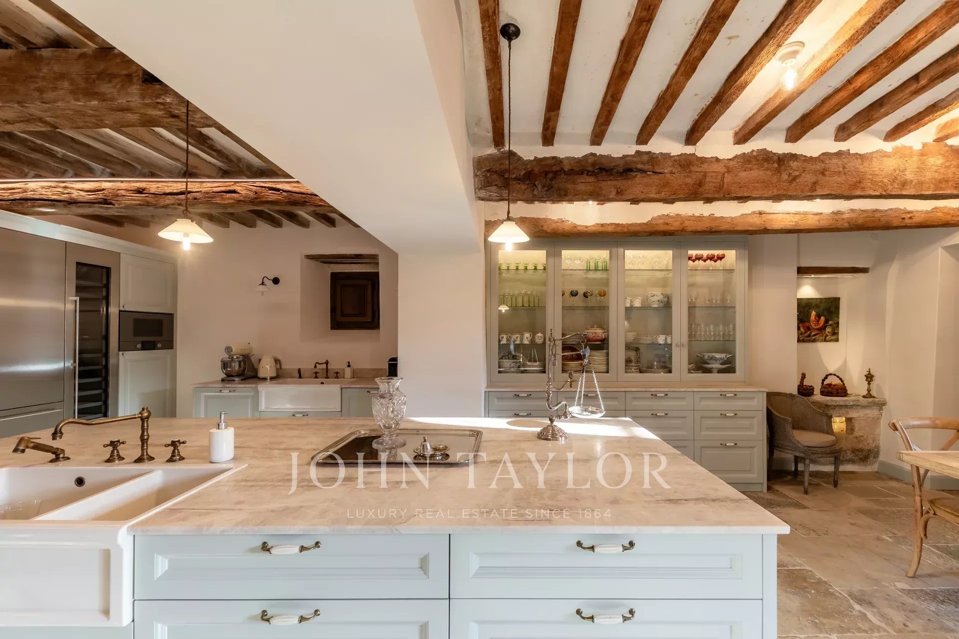 Gönnen Sie sich das Privileg, ein Bauernhaus aus dem 18. Jahrhundert zu erwerben, das durch eine sorgfältige Renovierung, die außergewöhnliche Materialien hervorhebt, sublimiert wurde. Eingebettet in das Herz eines ca. 7 Hektar großen Anwesens, vereint dieses seltene Anwesen den zeitlosen Charme der Provence mit dem luxuriösen Komfort von heute.