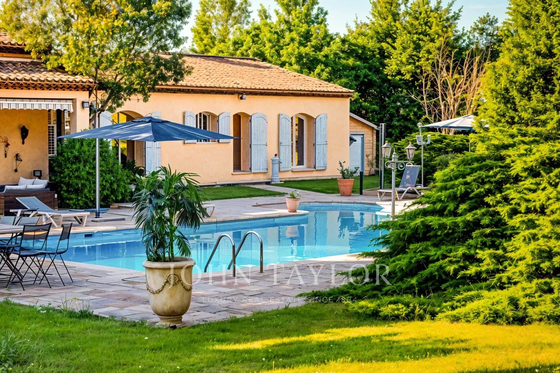 Ihre Prestige-Immobilienagentur John Taylor freut sich, Ihnen ein geräumiges Familienanwesen inmitten eines 4000 m2 großen Landschaftsgartens mit herrlichen Bäumen und einem beheizten Swimmingpool zum Verkauf anbieten zu können.